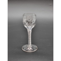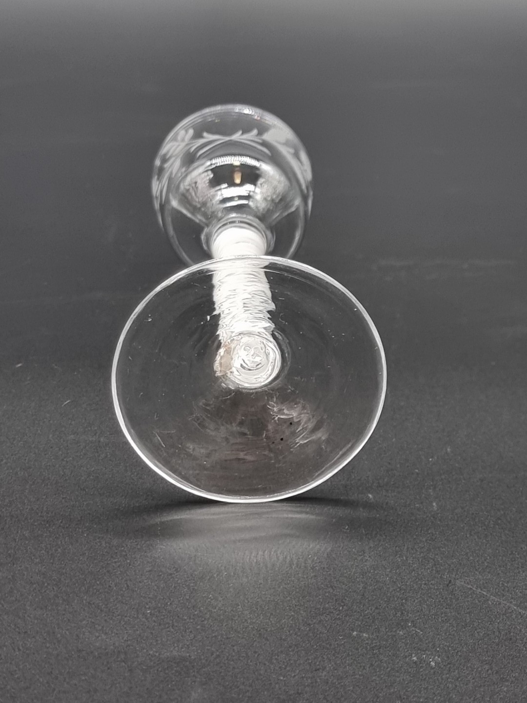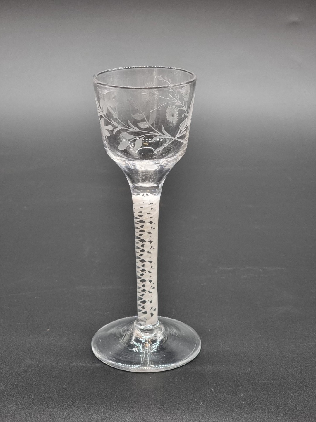 An 18th century double series opaque twist wine glass, with engraved bowl, 14.9cm.