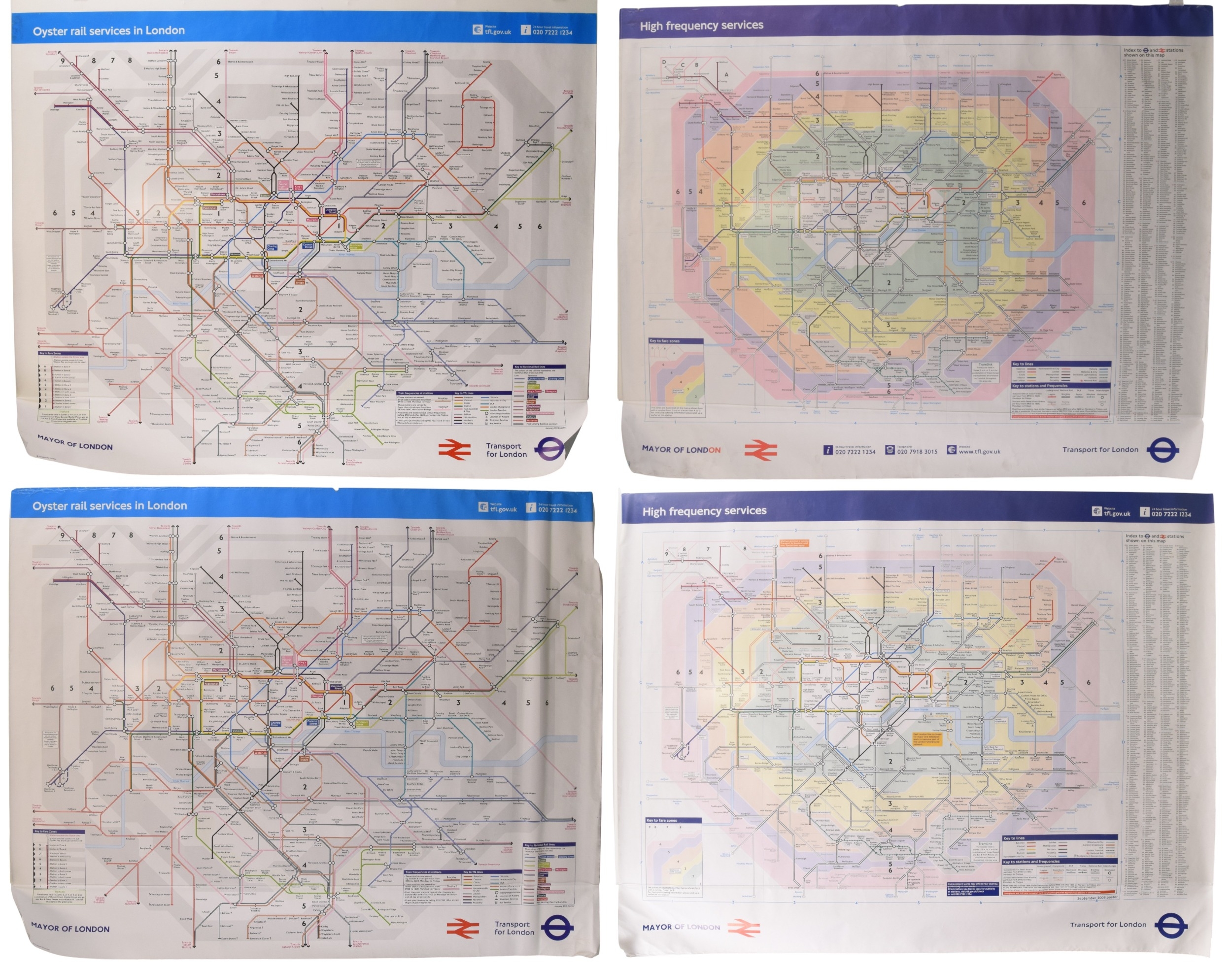 Selection of 4 London Underground quad royal map posters, rolled, some minor edge folds. 50 x 40 inches. Shipping band - C.
