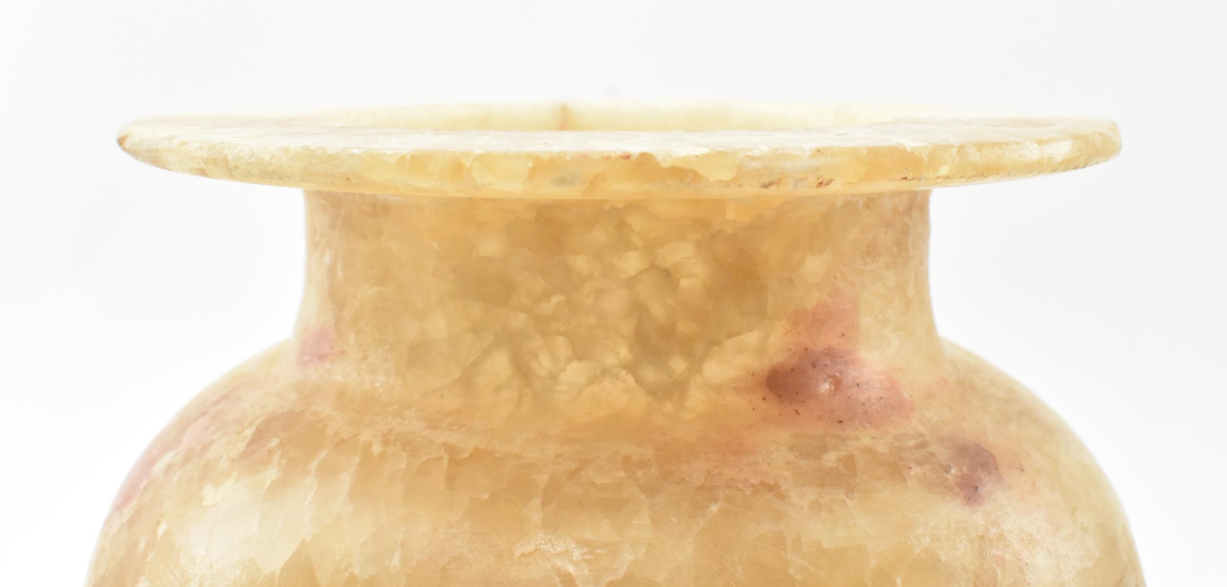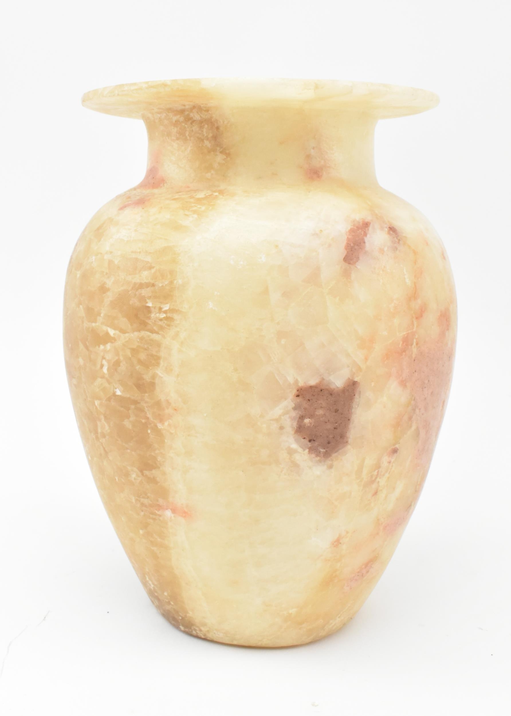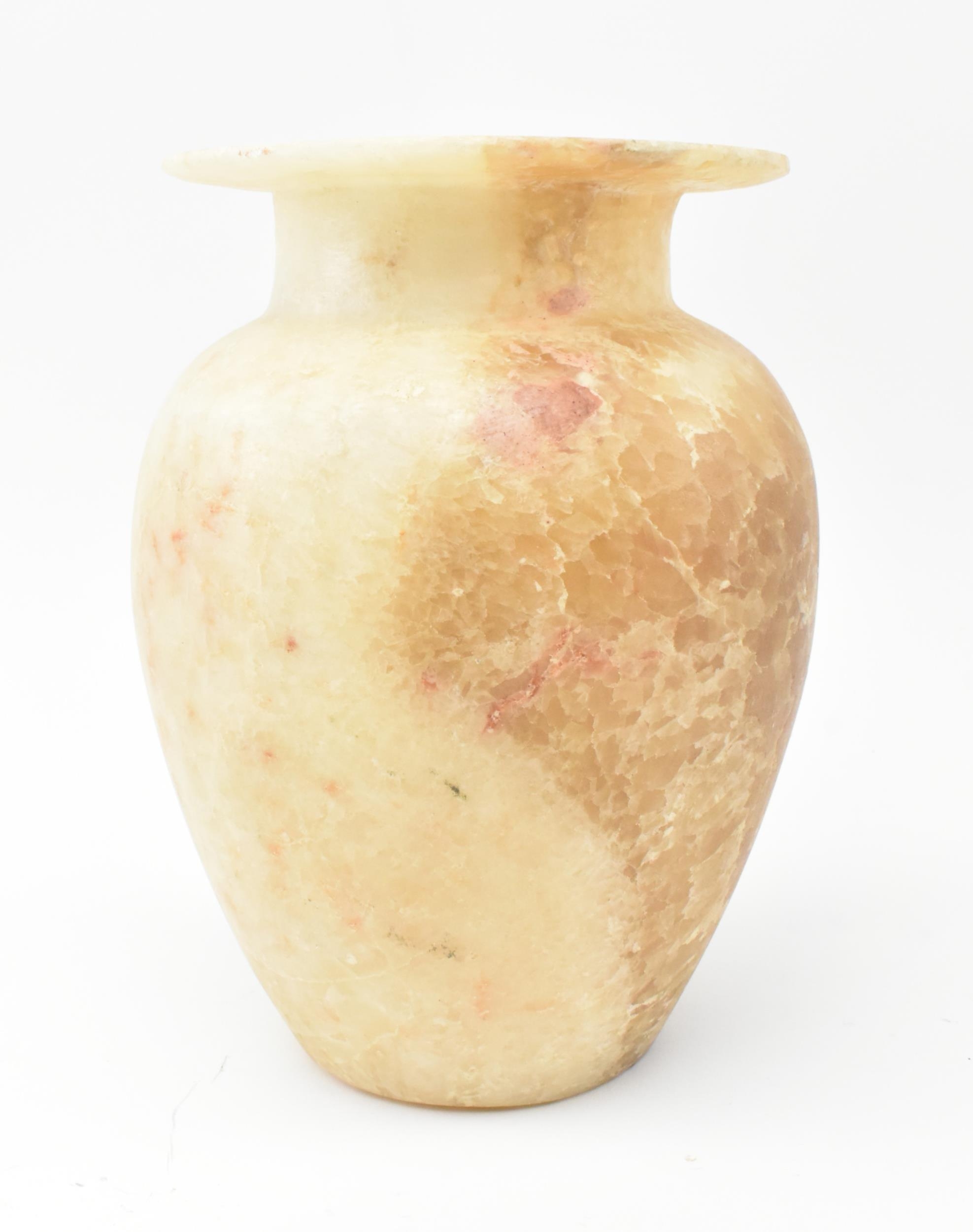 A Egyptian late 19th century alabaster vase. The vase having a baluster shaped body with flat everted mouth rim. Measures approx. 22cm tall.