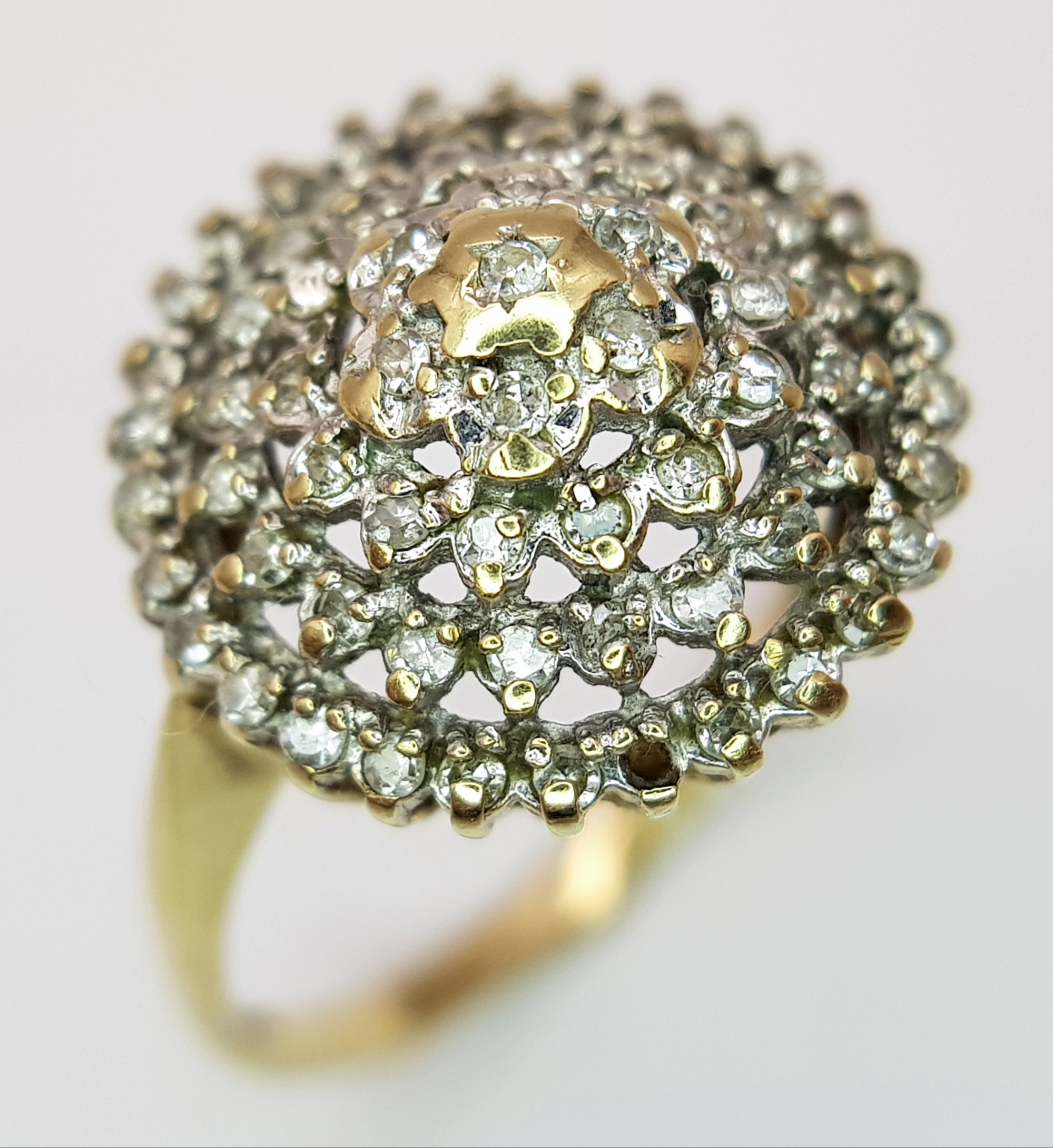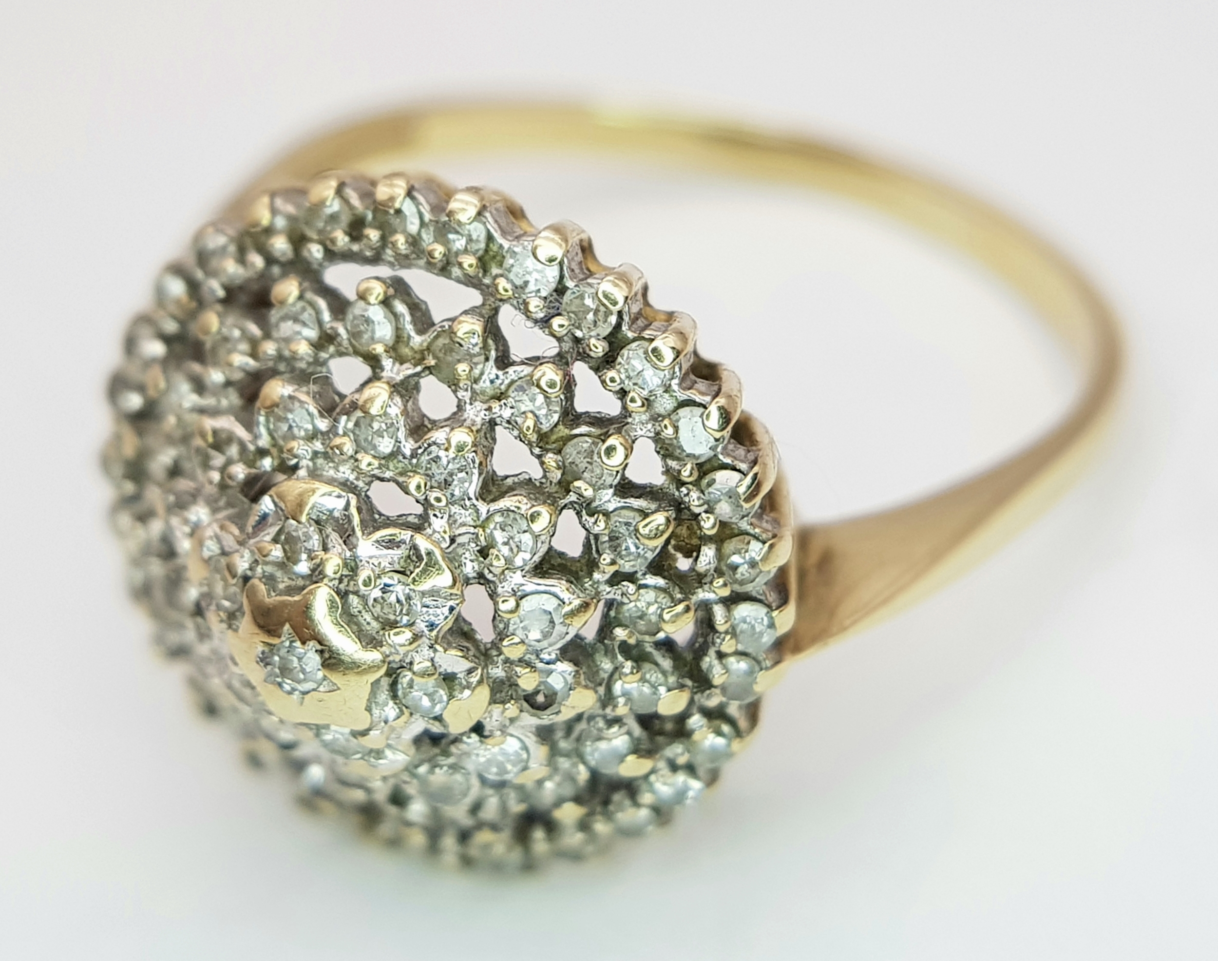 A 9k yellow gold diamond vintage ring, 0.35ct diamond weight, 3.8g total weight, ring size V. 2172I