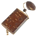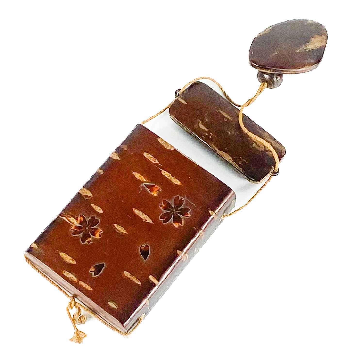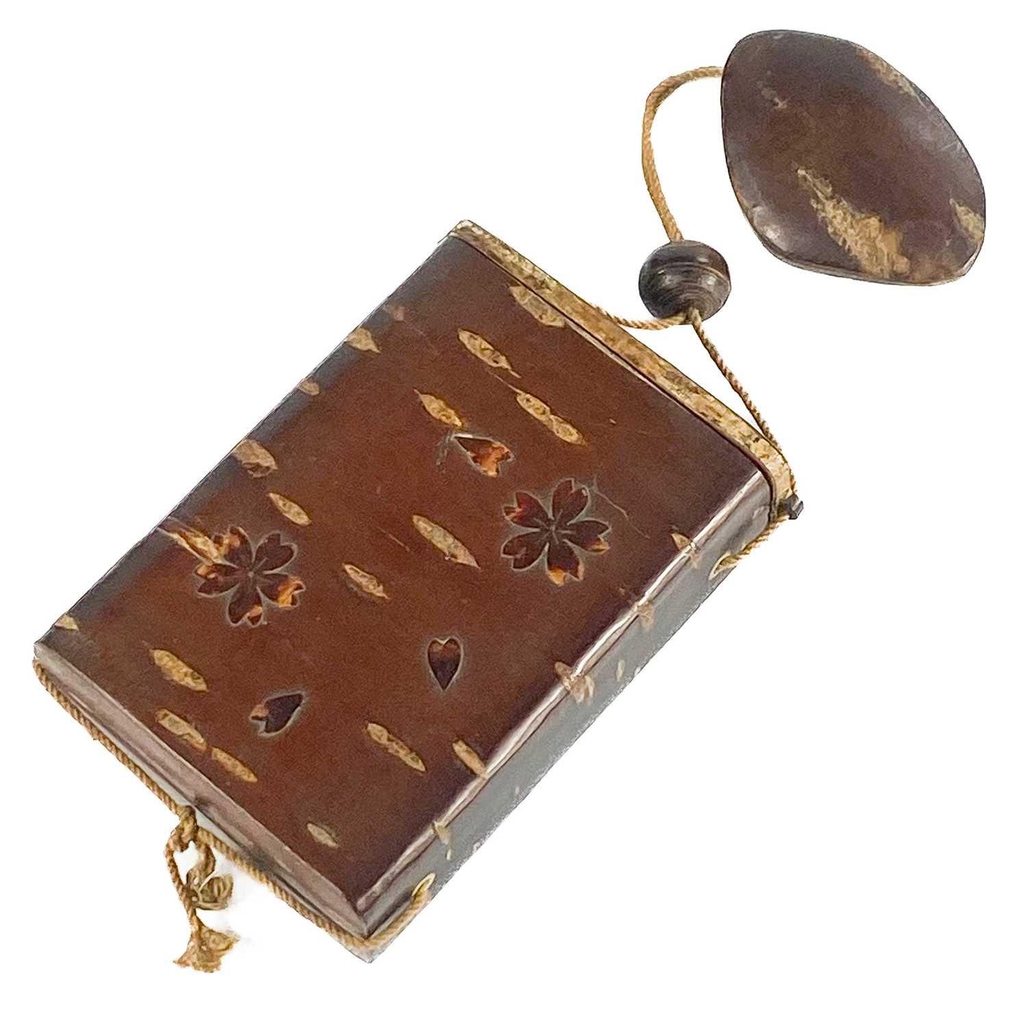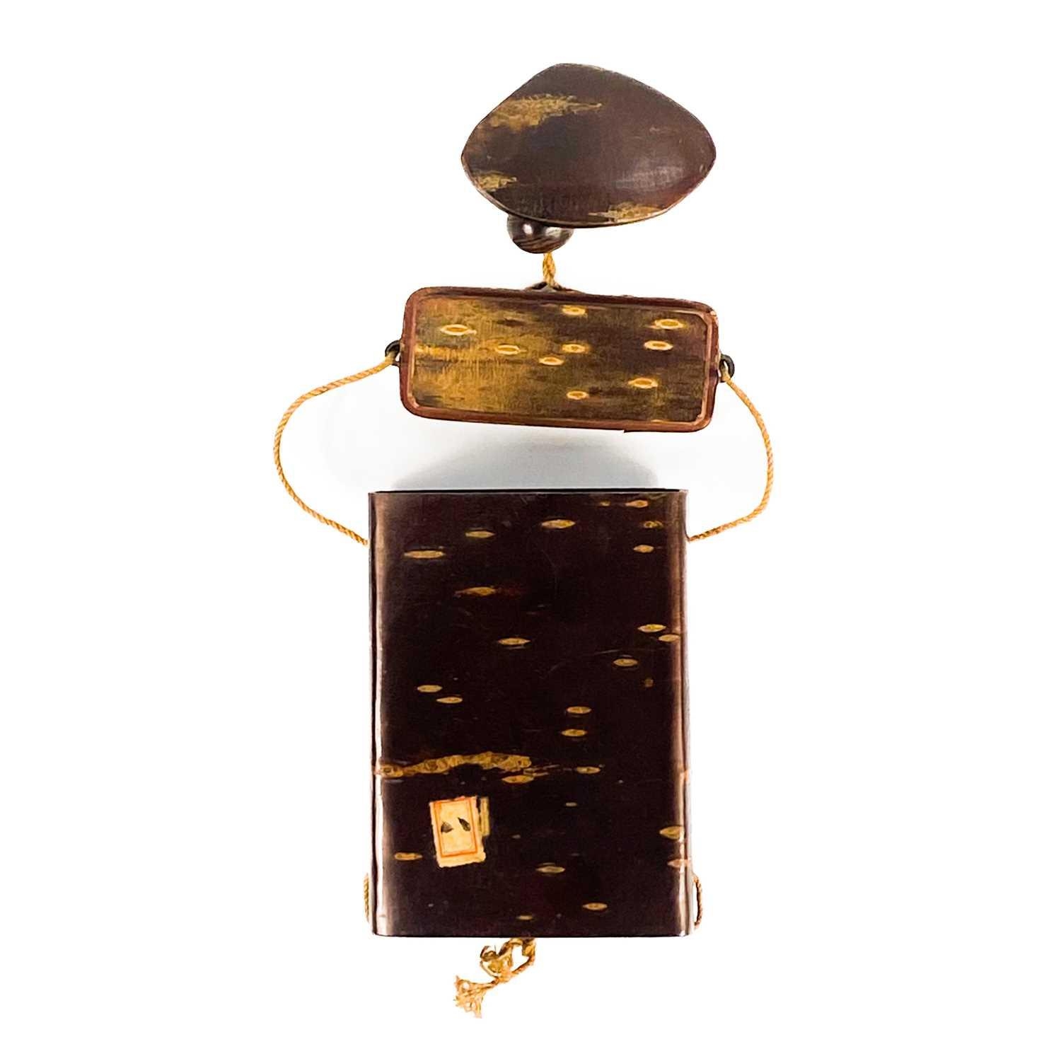 A Japanese wood inro, Meiji period. Height 10cm, width 7.5cm, depth 2.8cm.