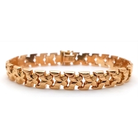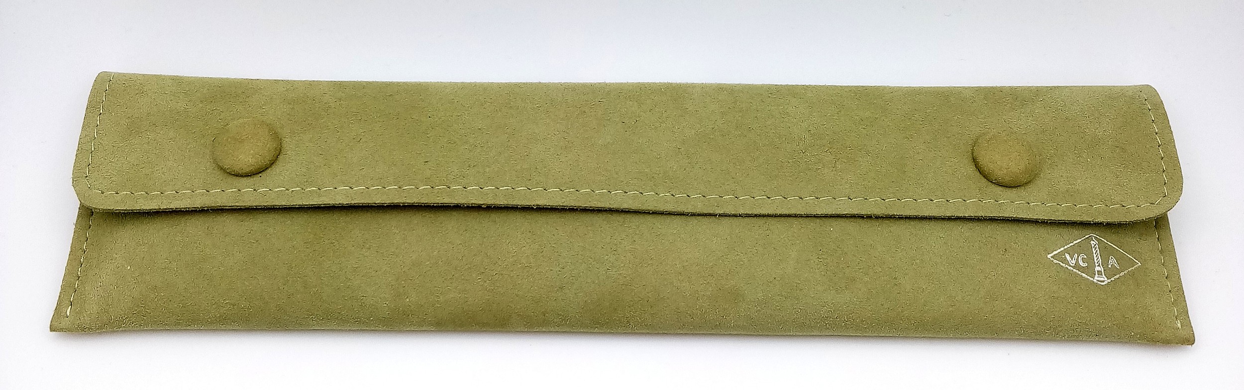 A VAN CLEEF AND ARPELS 18K GOLD ALHAMBRA BRACELET WITH POUCH AND PACKAGING.