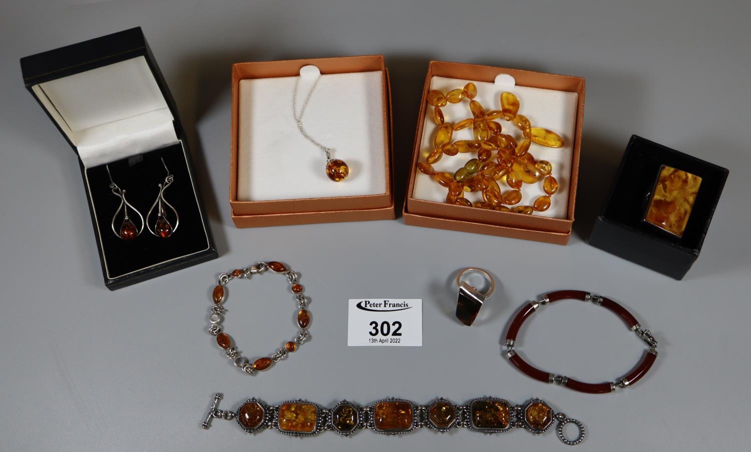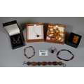 A collection of silver and amber jewellery.