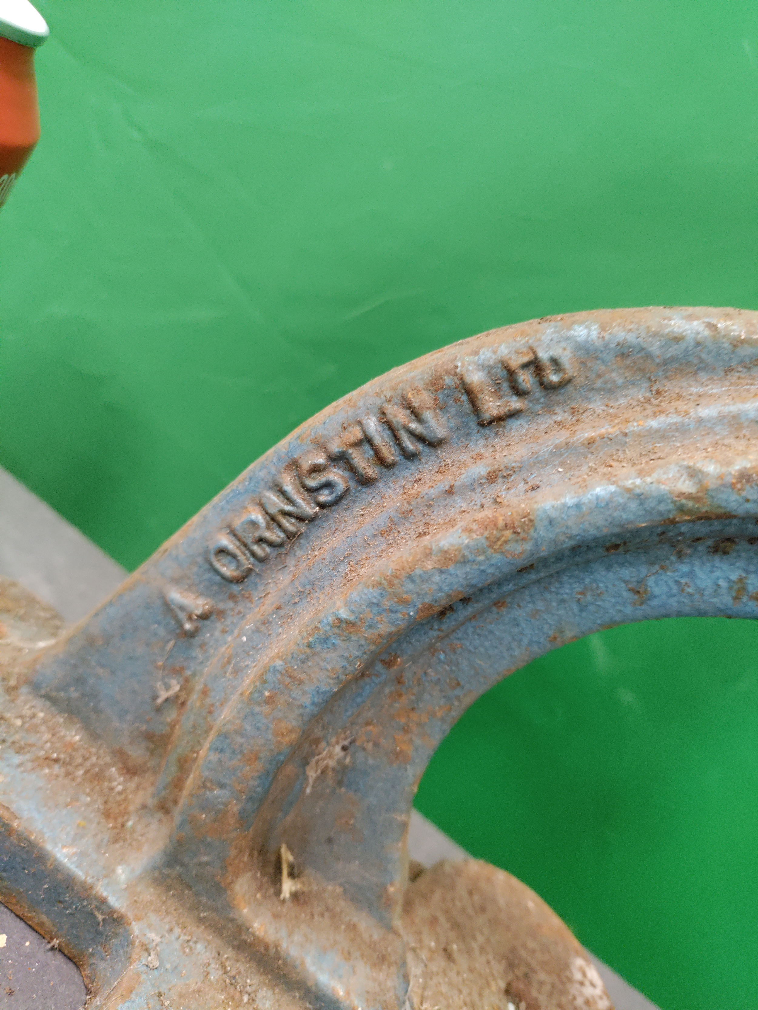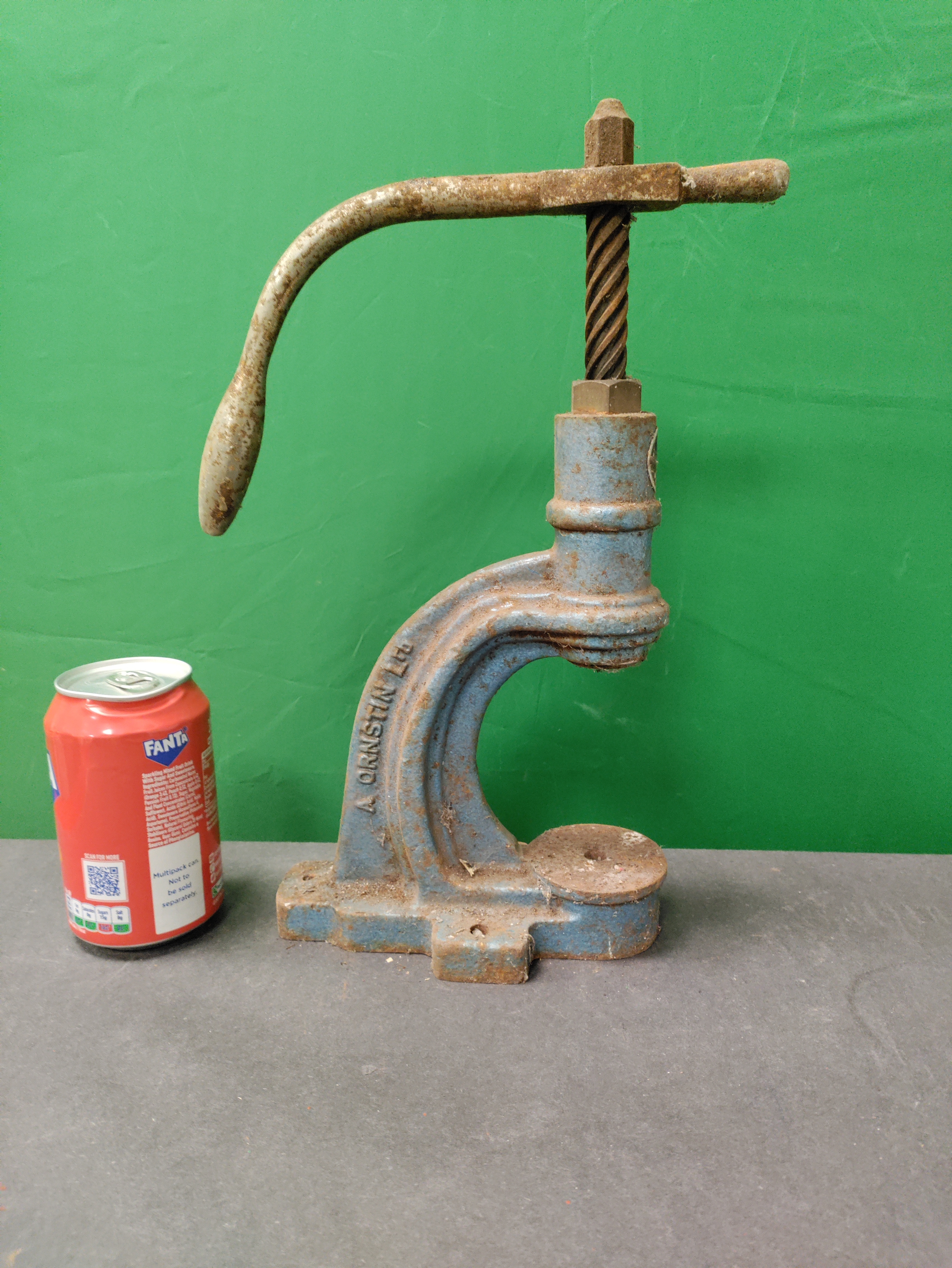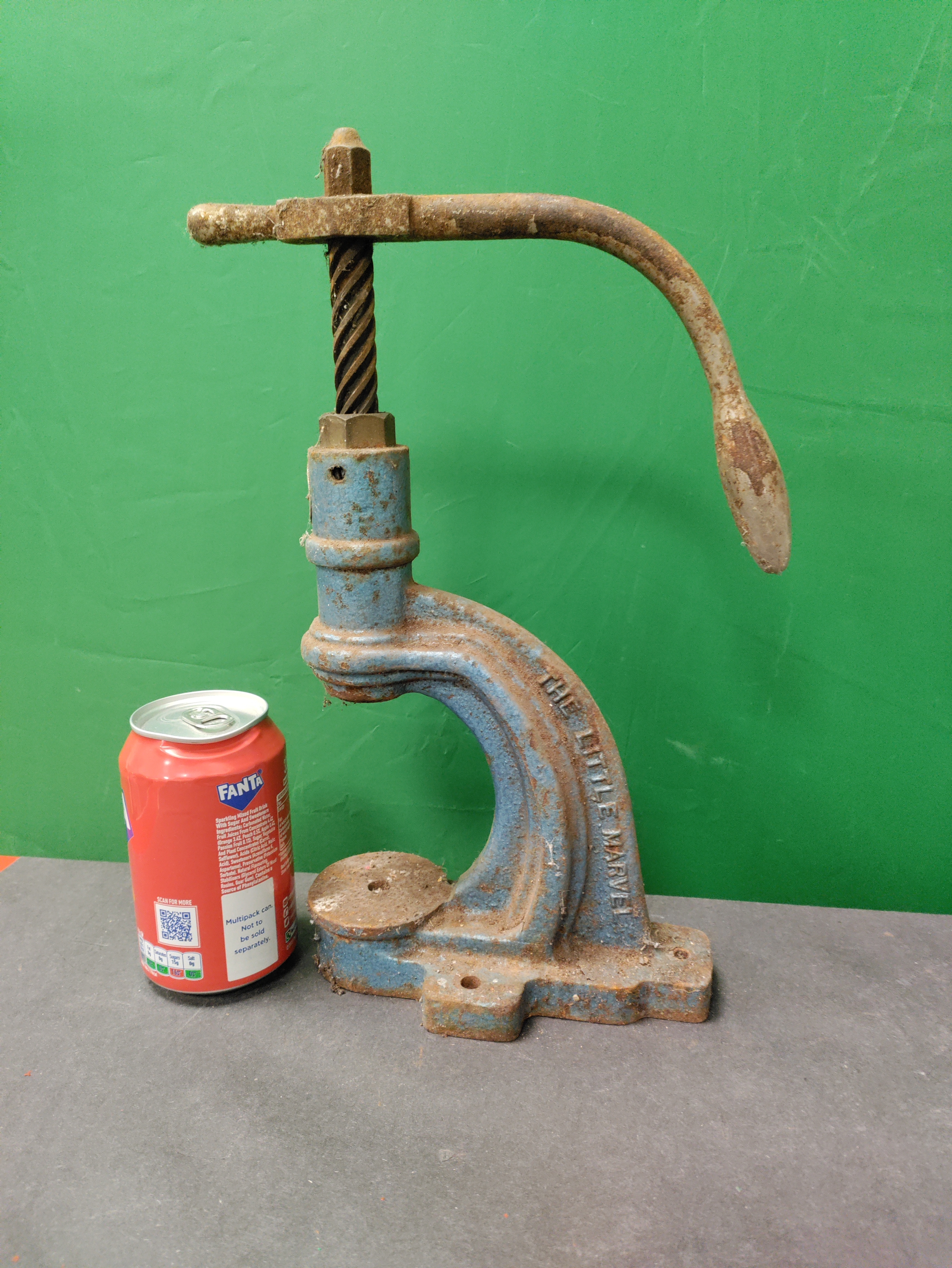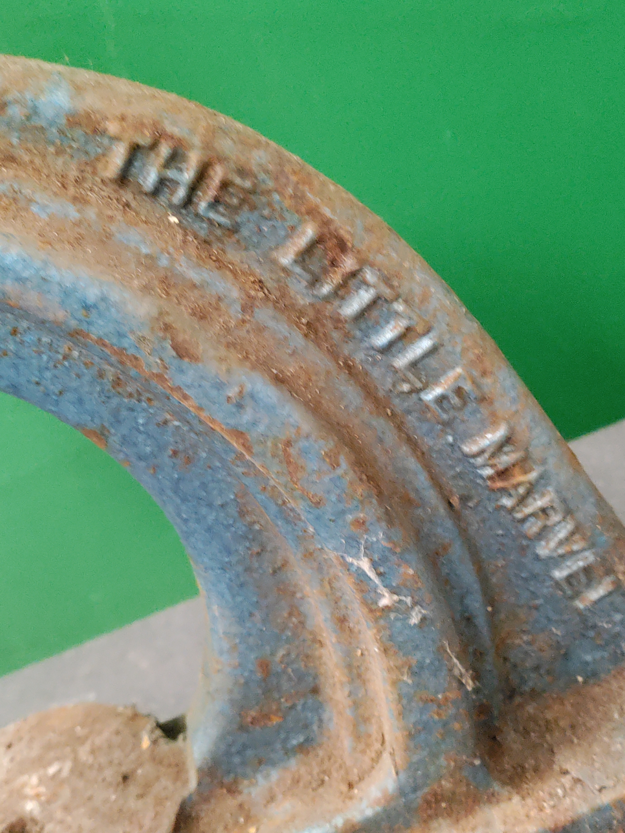 A vintage fly press named "The Little Marvel". Made by A. Ornstin.