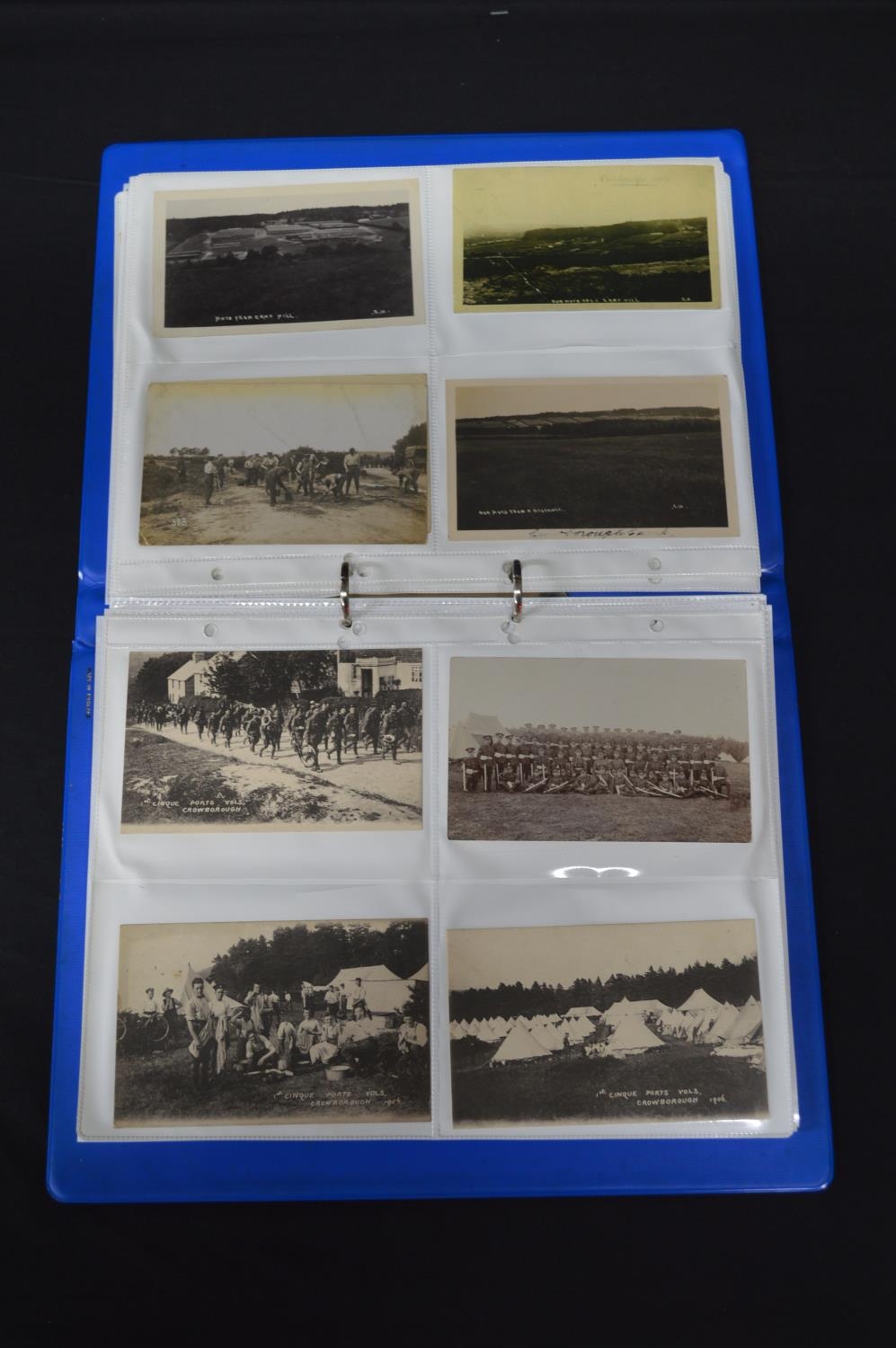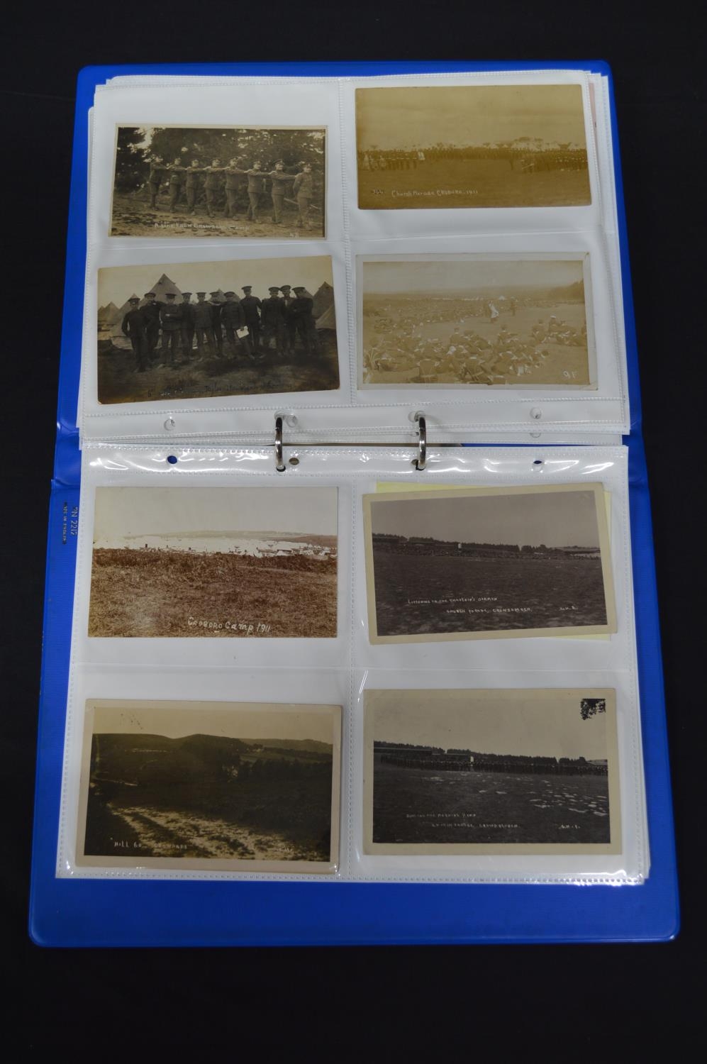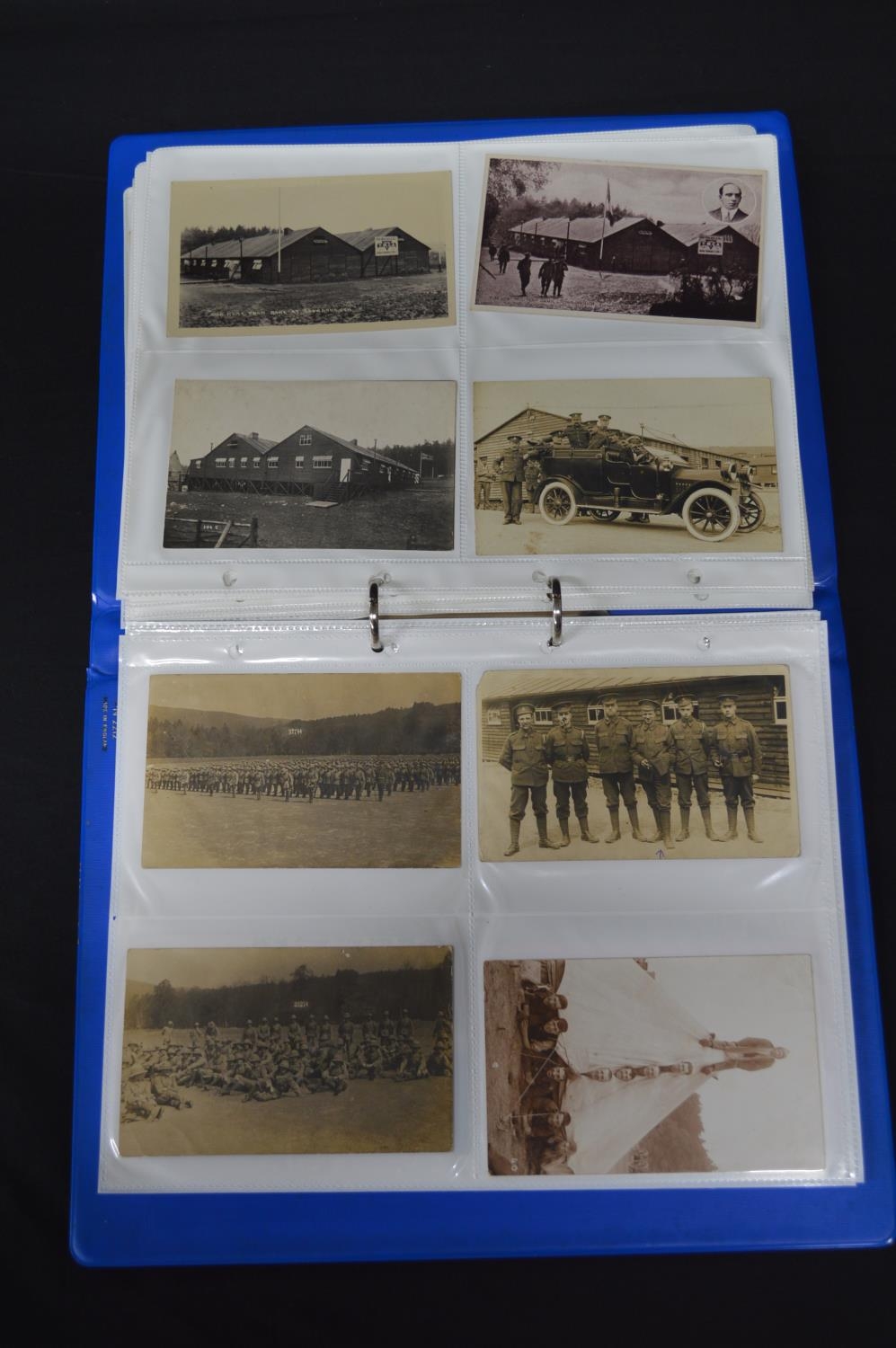Folder containing over 100 black & white postcards relating mainly to Crowborough Camp