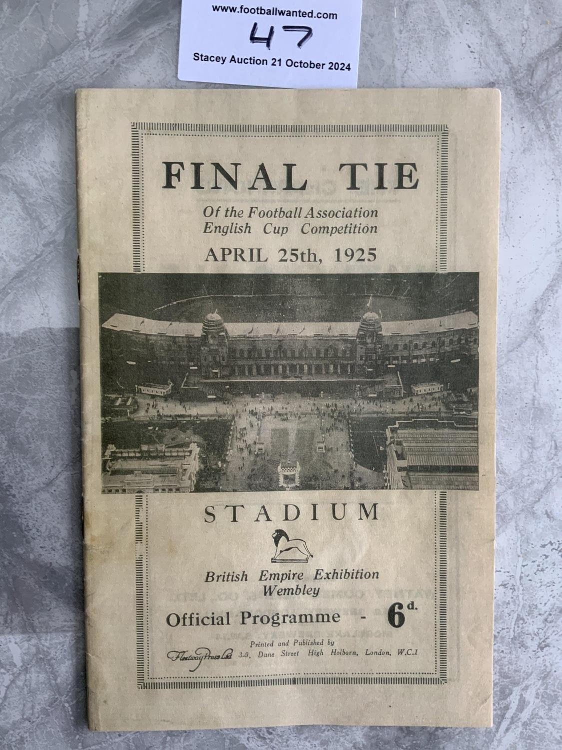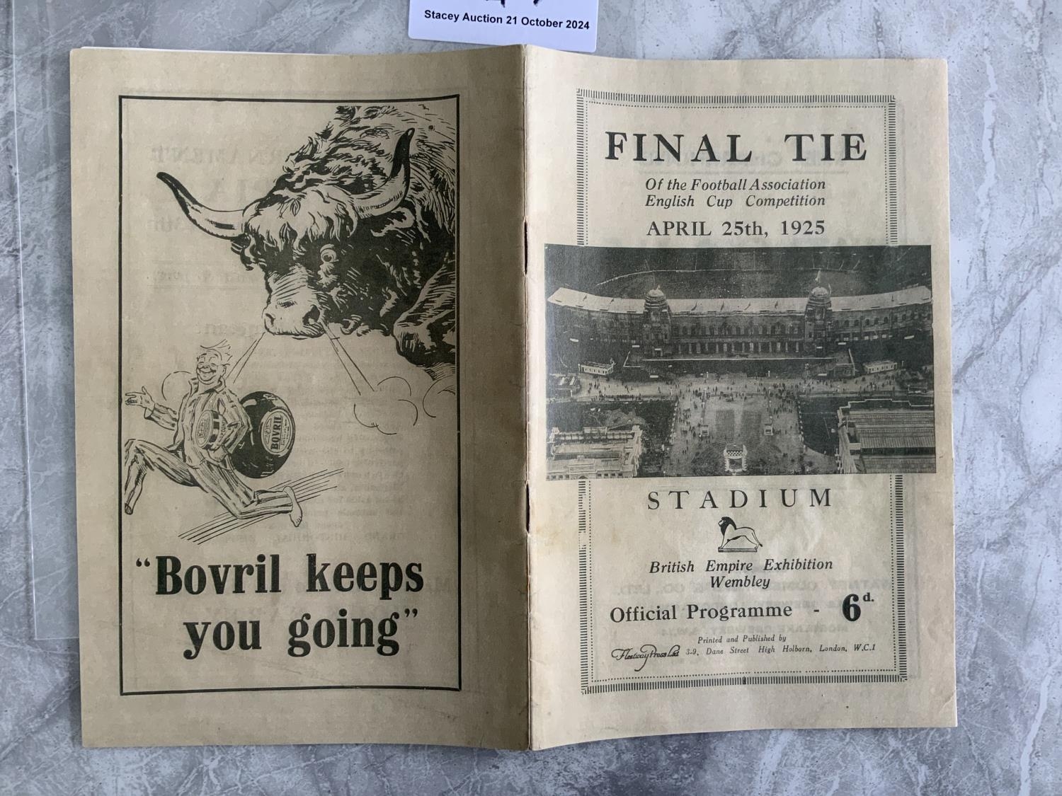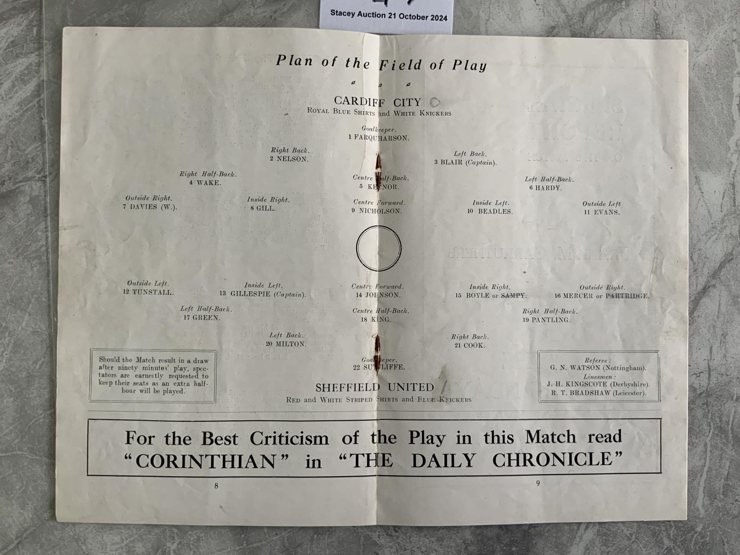 1925 FA Cup Final Football Programme: Cardiff City v Sheffield United in very good condition with no team changes. After much studying we have come to the conclusion that this has replica covers although you would not know.