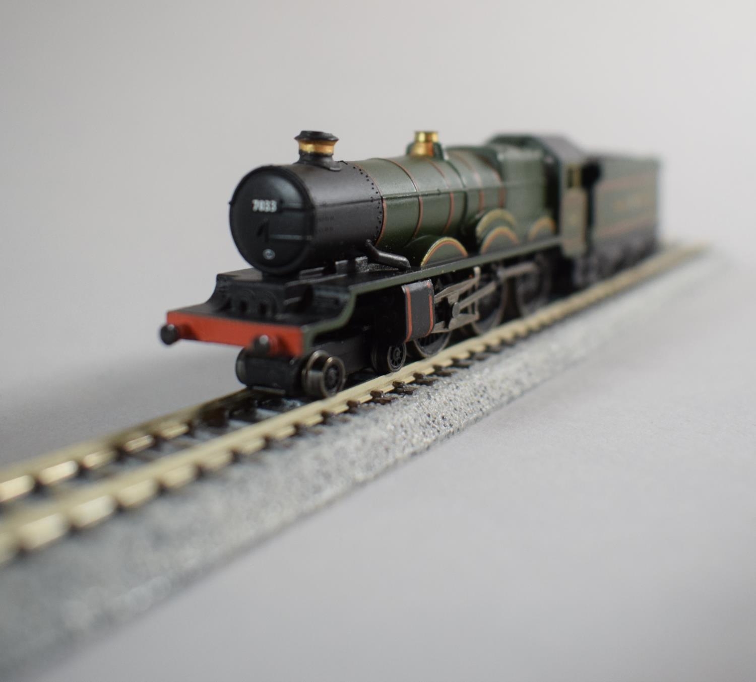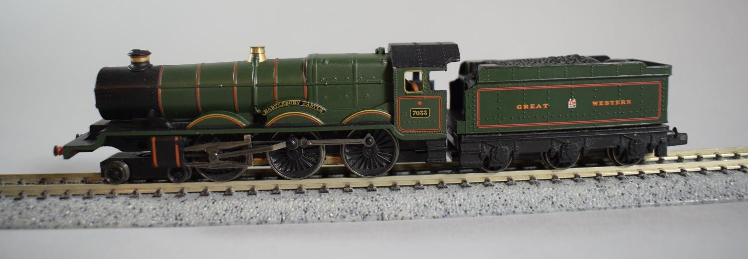 A Boxed N Gauge Graham Farish 372-025 BR Castle Class 4-6-0 7033 Hartlebury Castle, Tender Redone to GWR