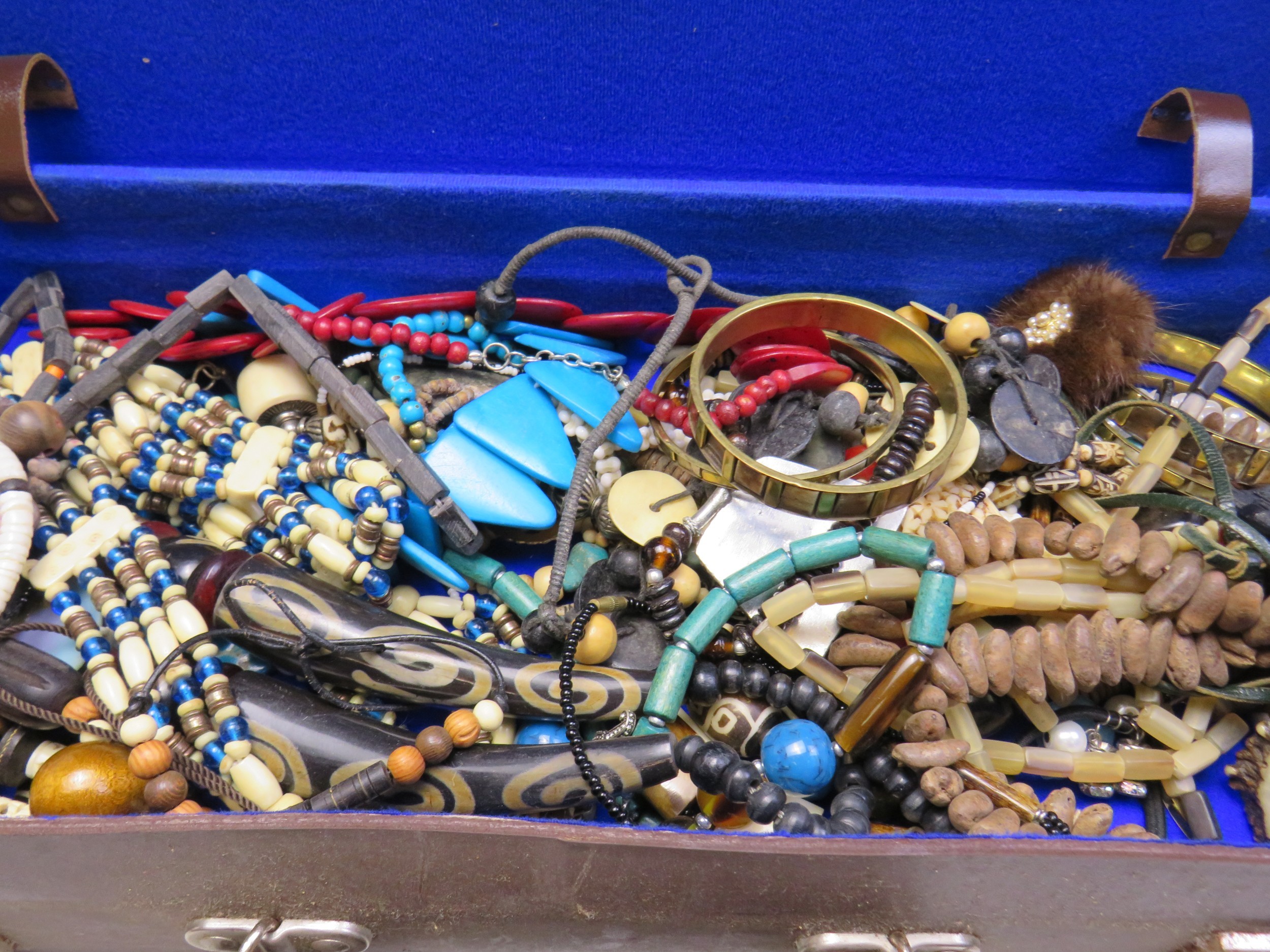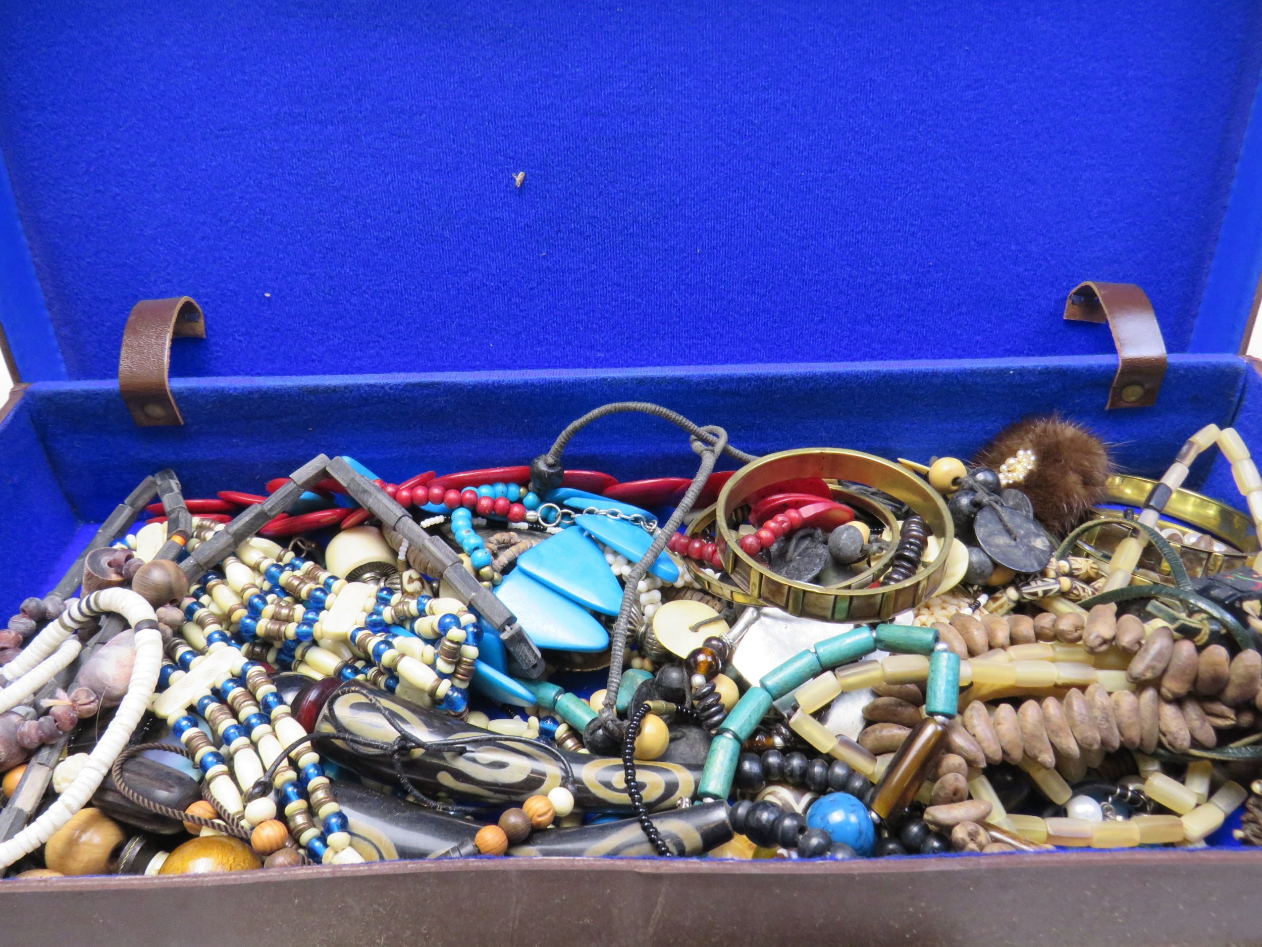 Vintage leather case and jewellery.