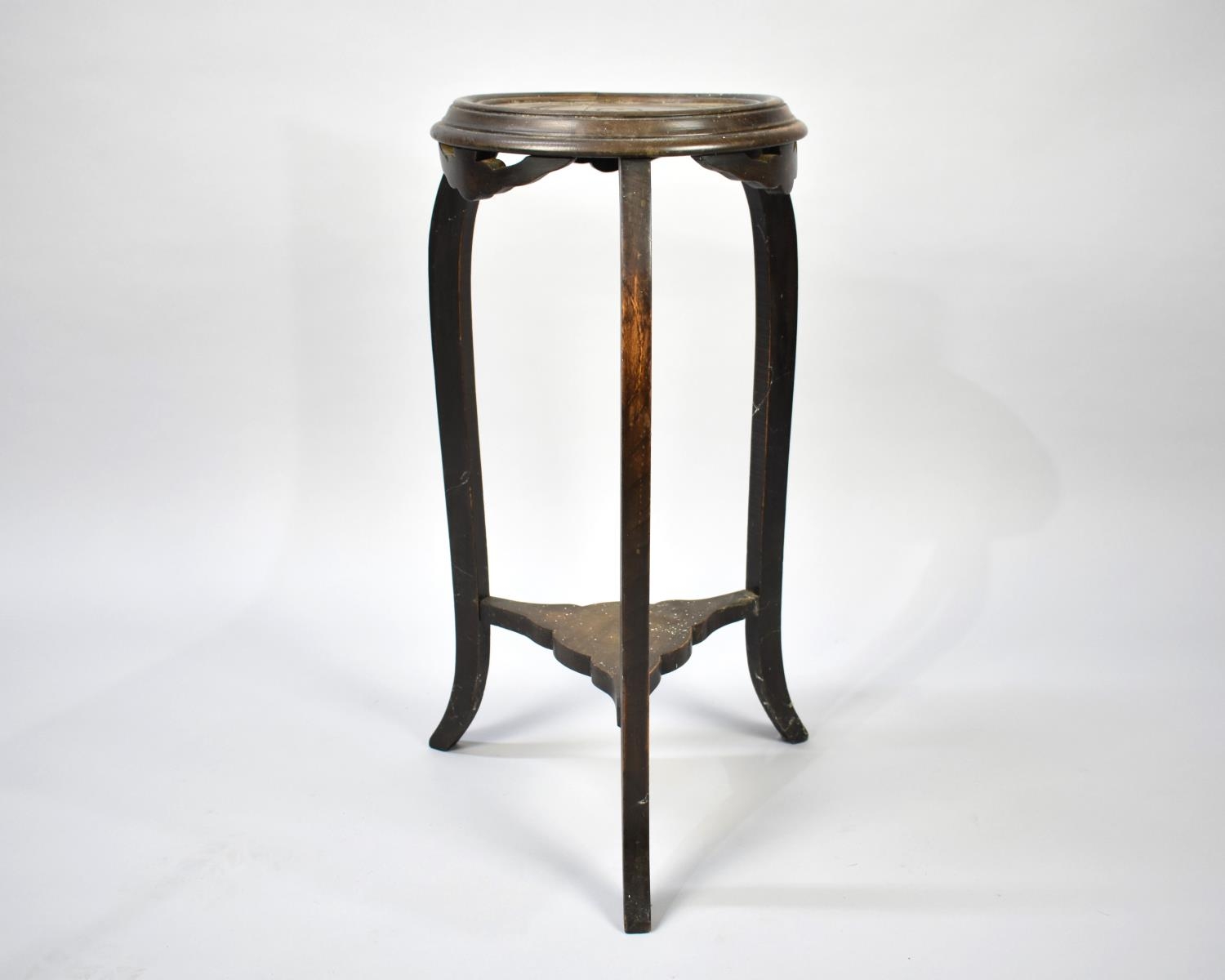 An Edwardian Circular Topped Tripod Vase Stand with Extended Cabriole Supports and Stretchers Shelf, 31cm Wide
