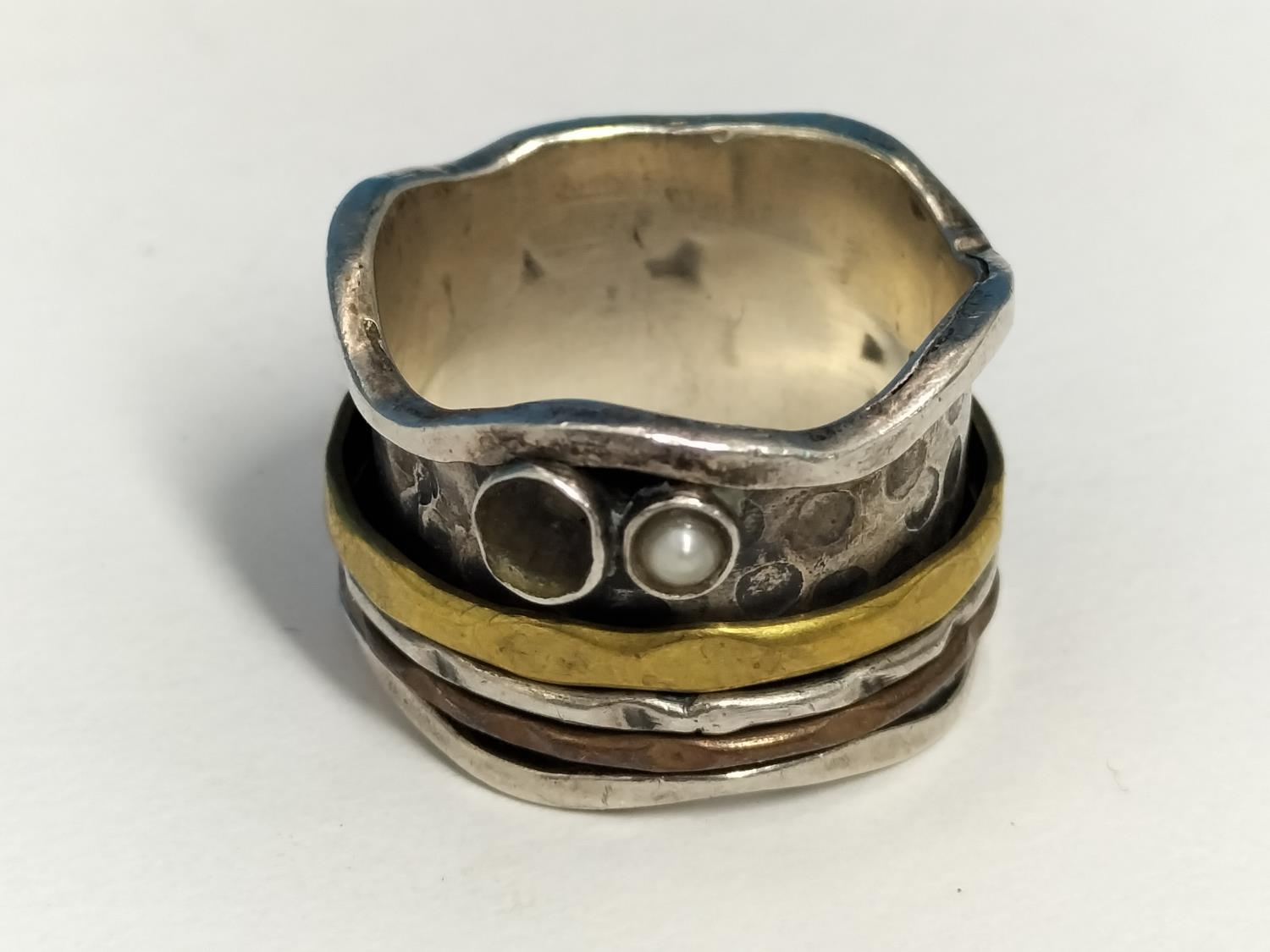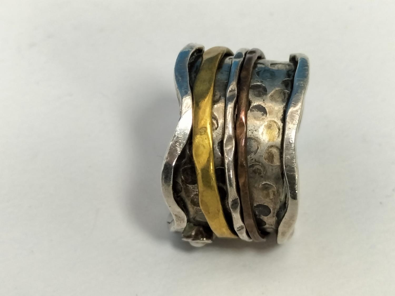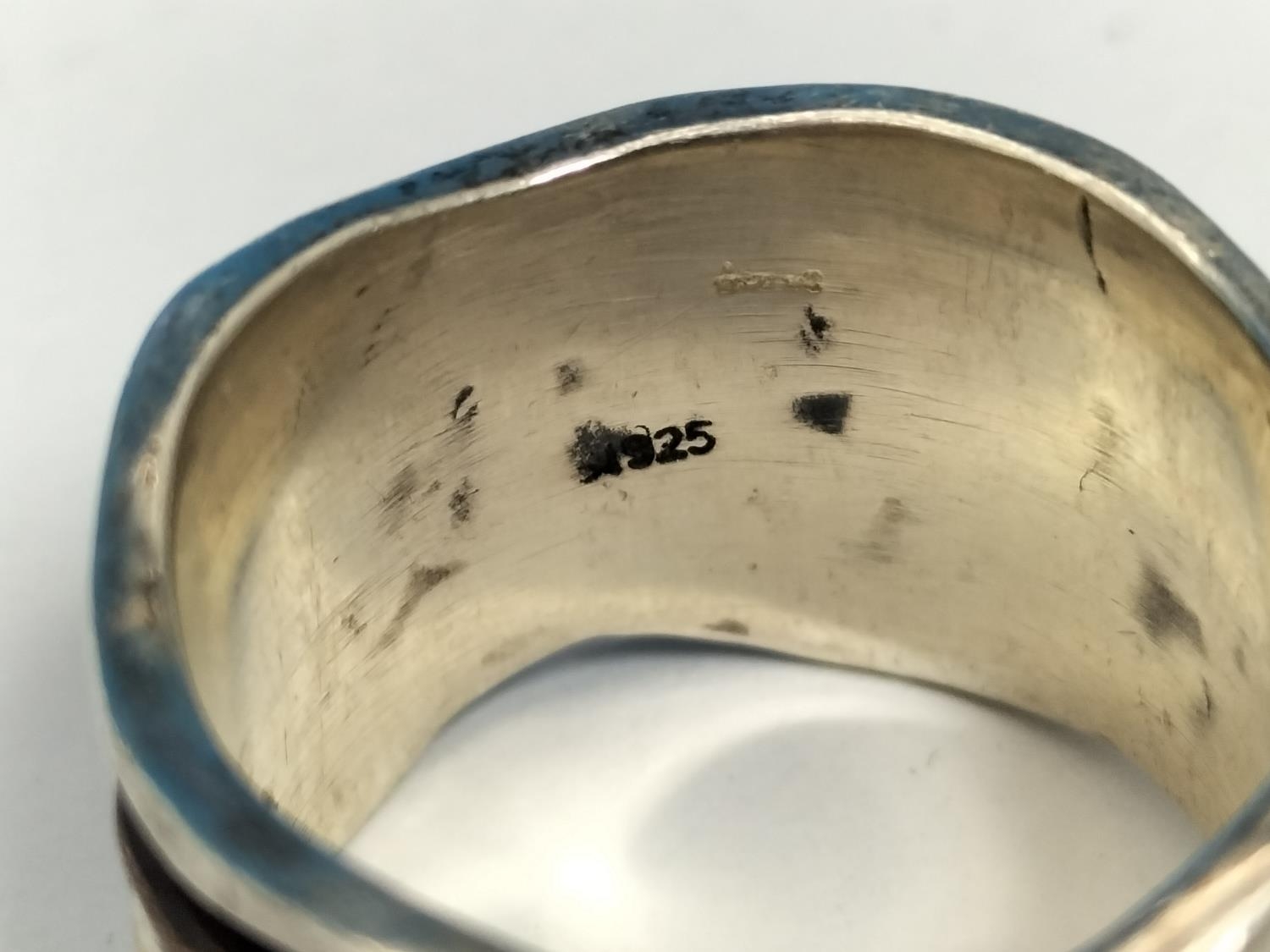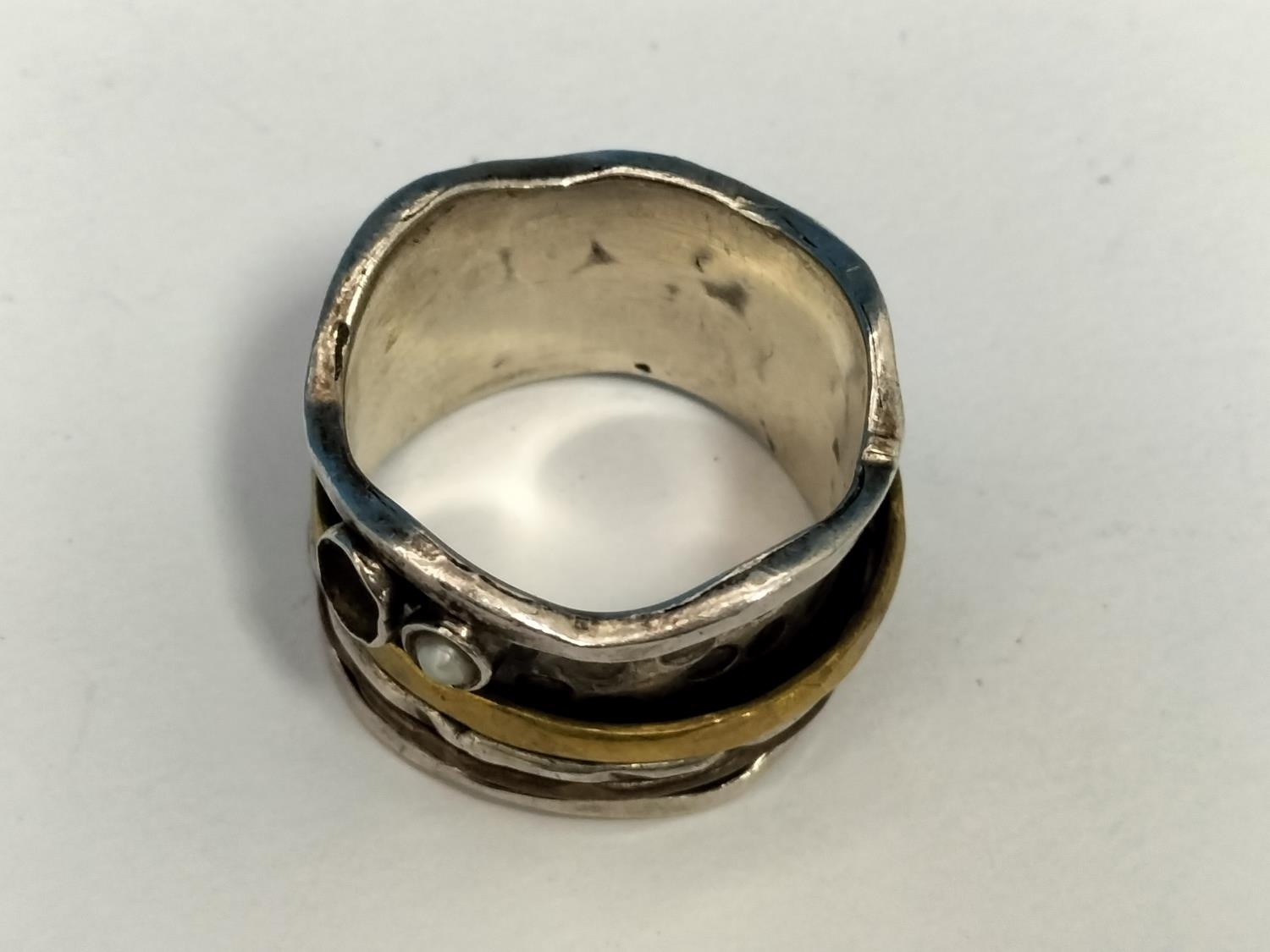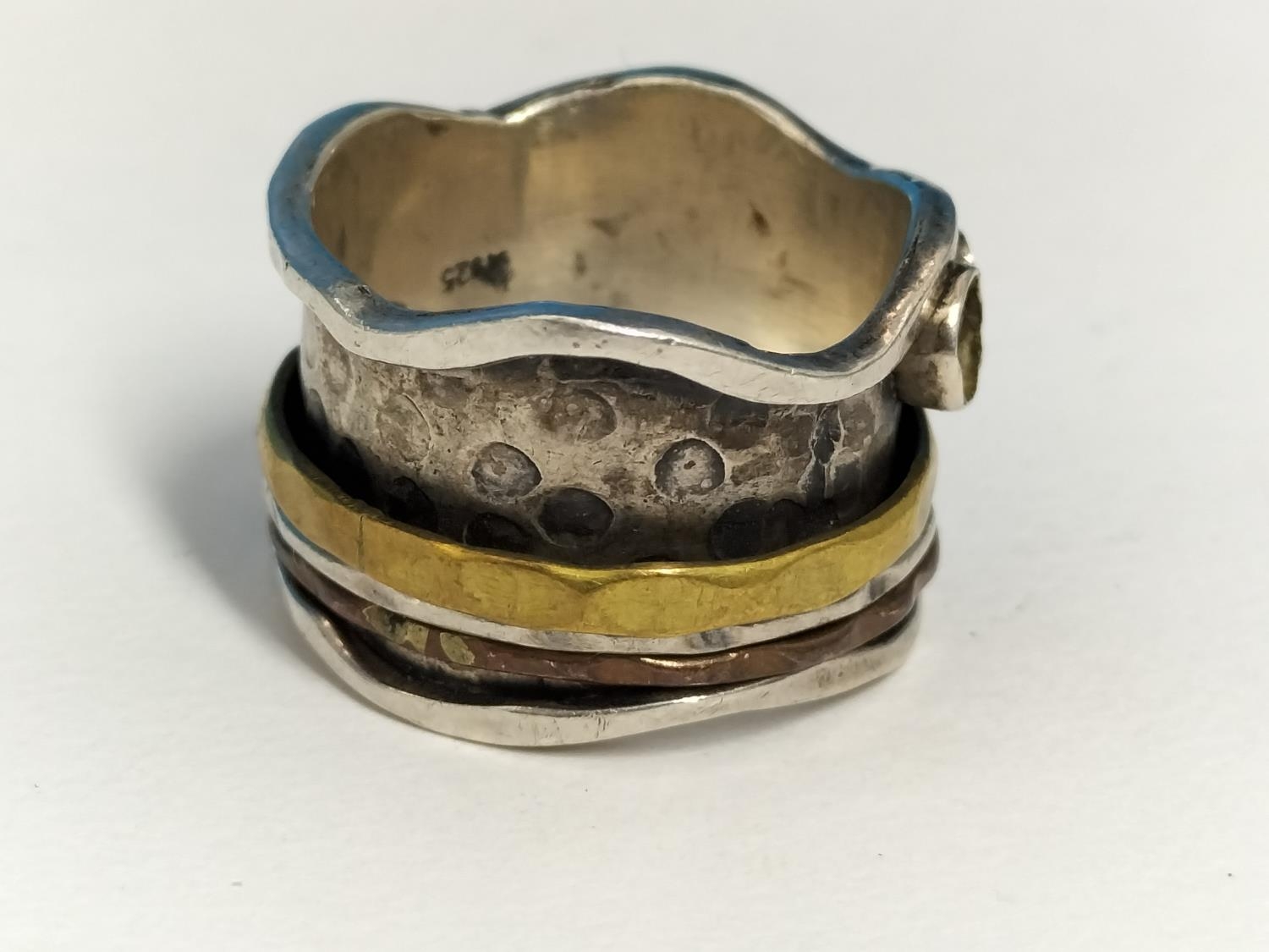 Silver 925 Art and Craft Design Ring. Size Q. Missing Stone.