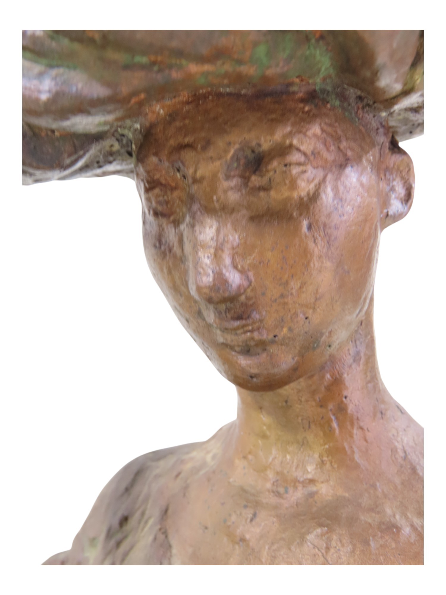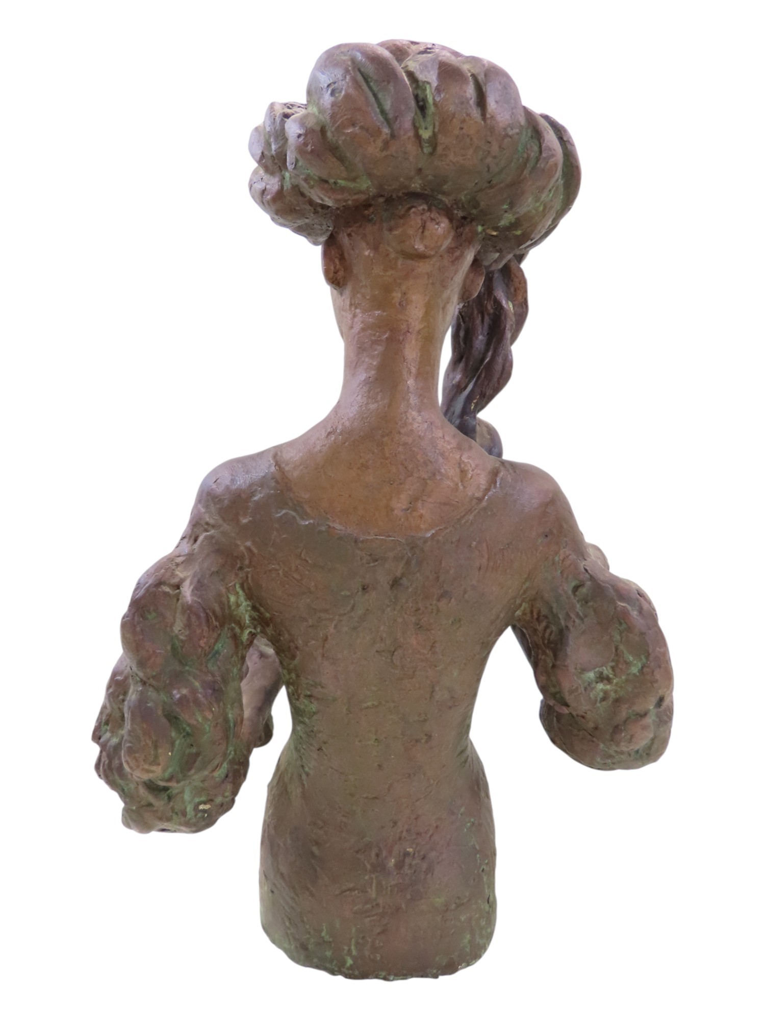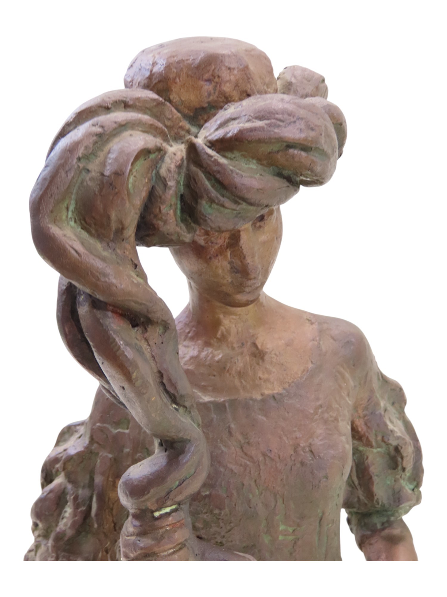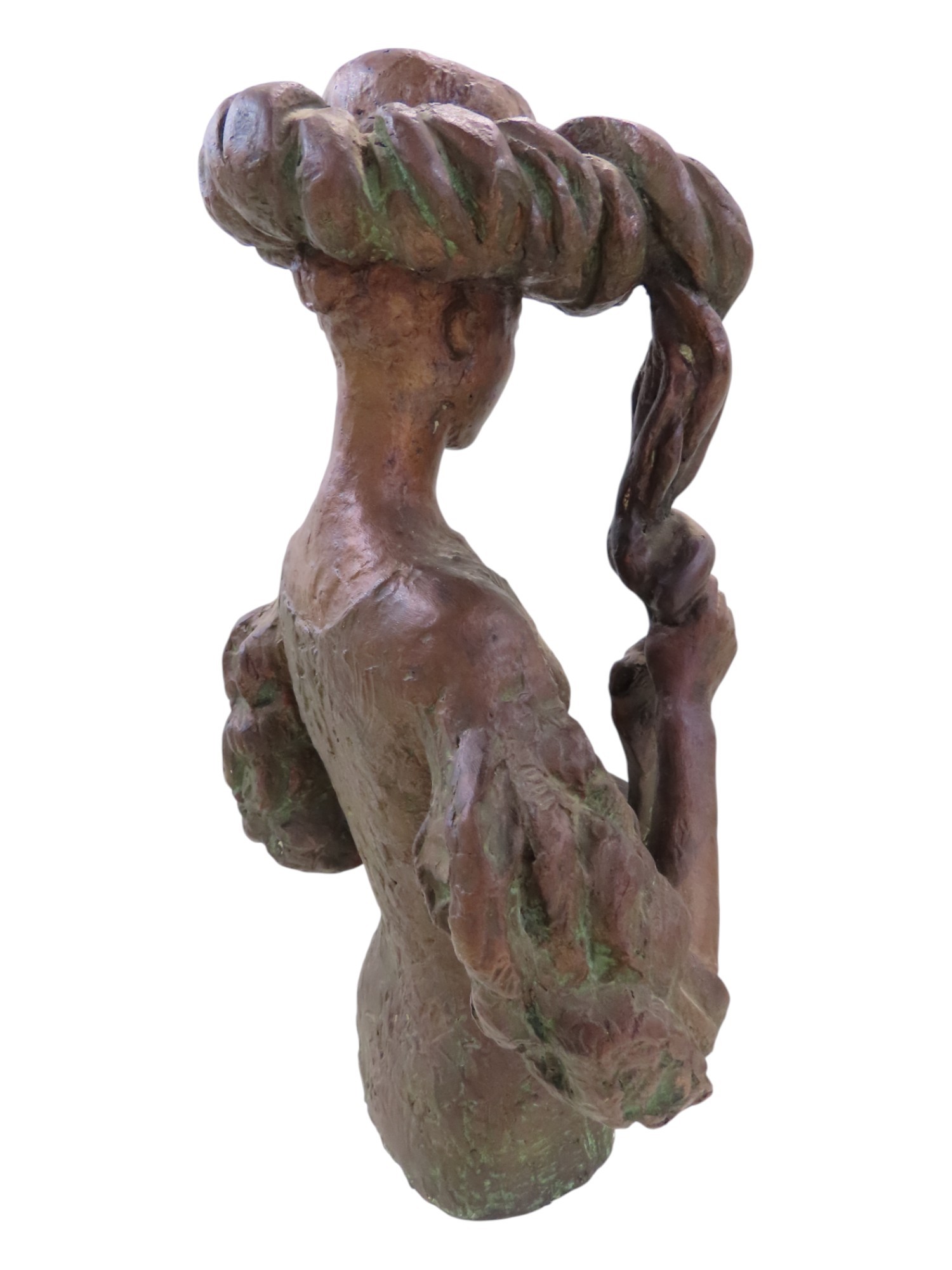 A bronze statue by Tone Thiis Schjetne 1928-2015, female with turban hat, 42cm high