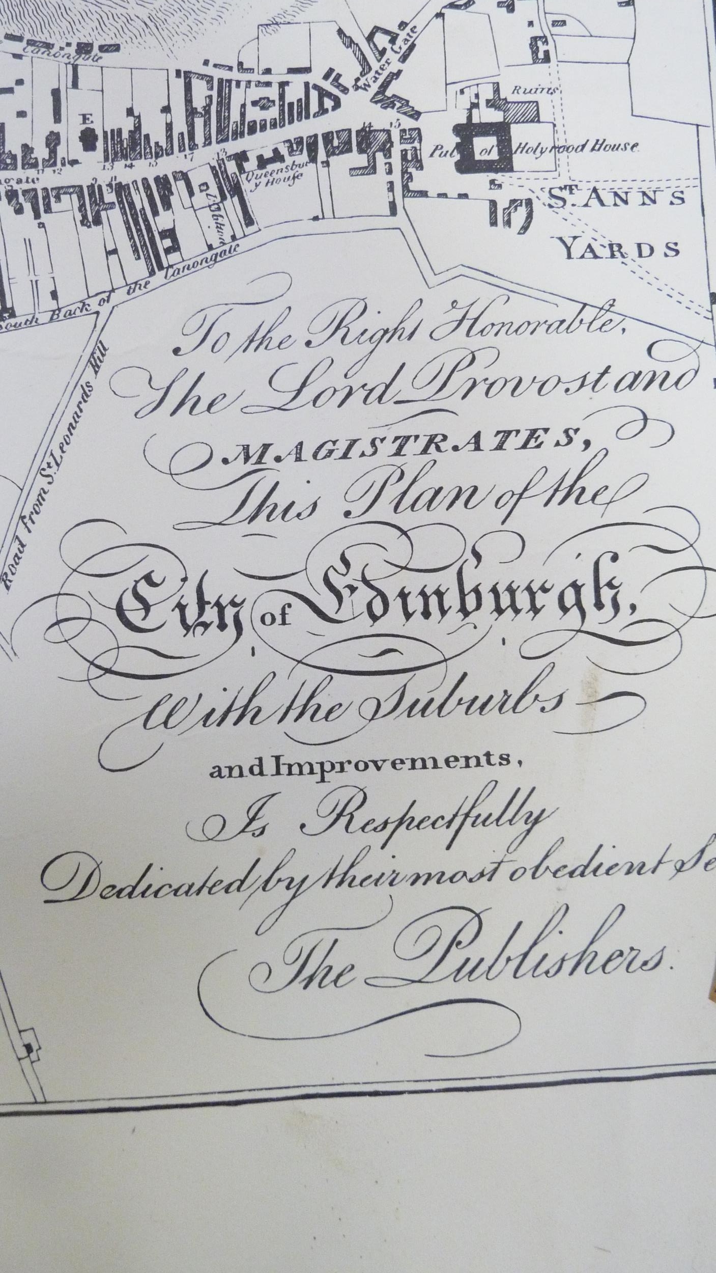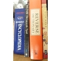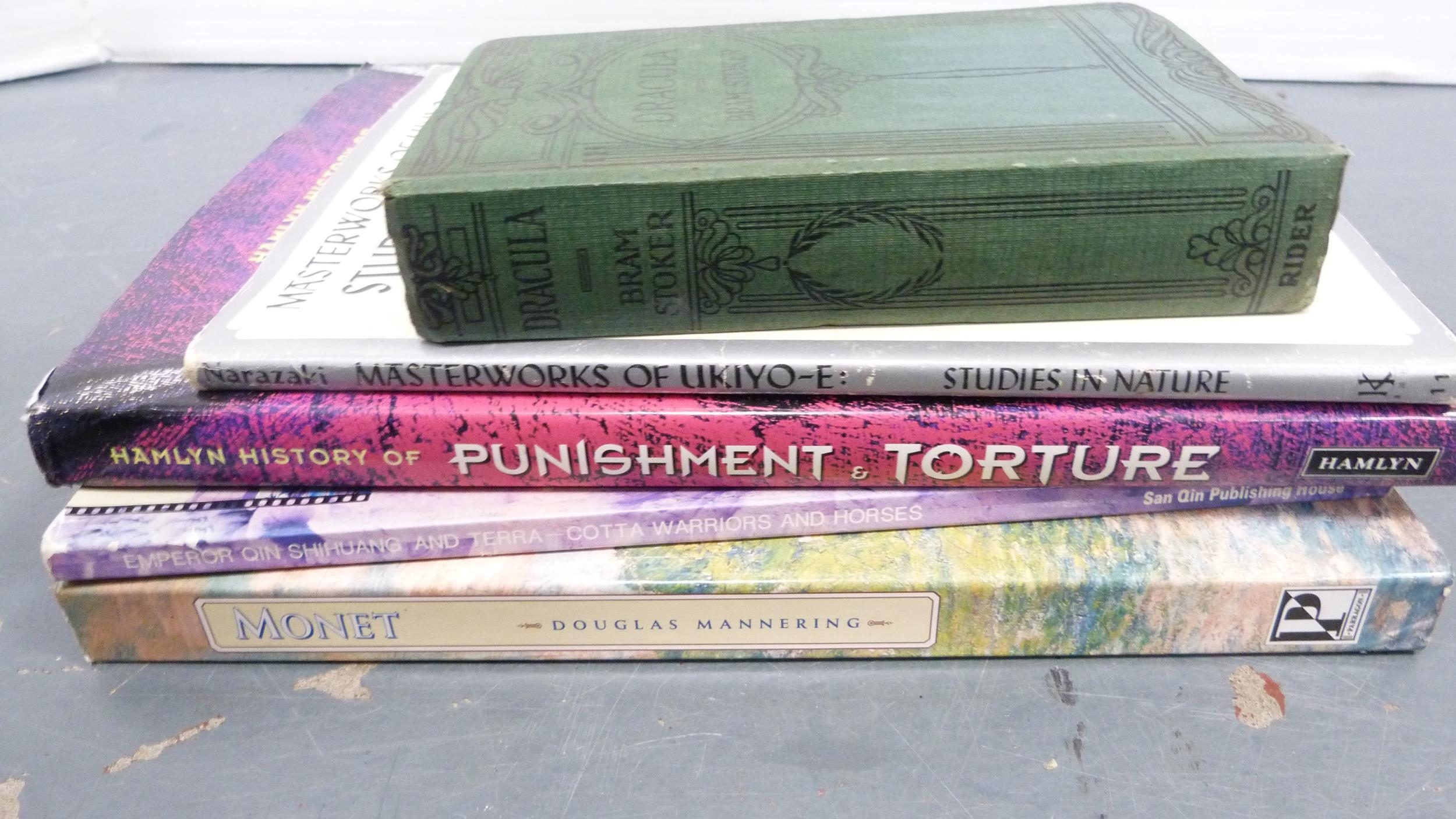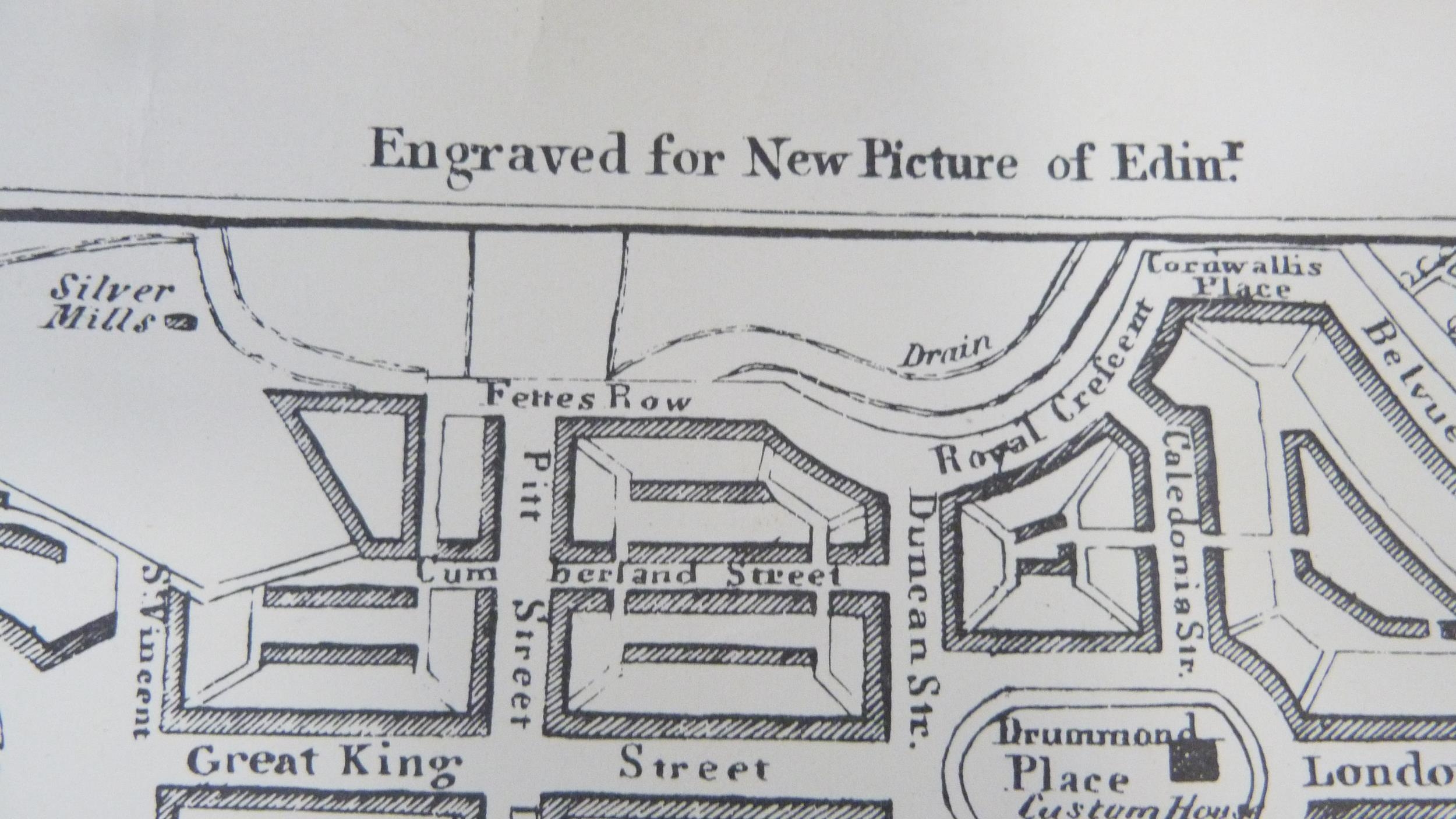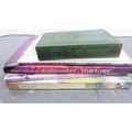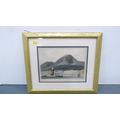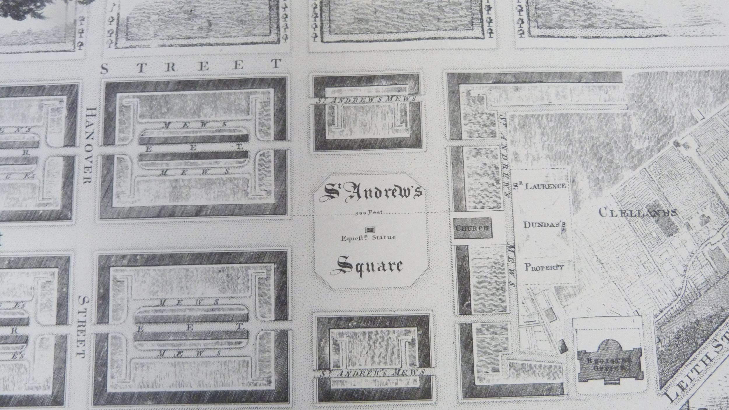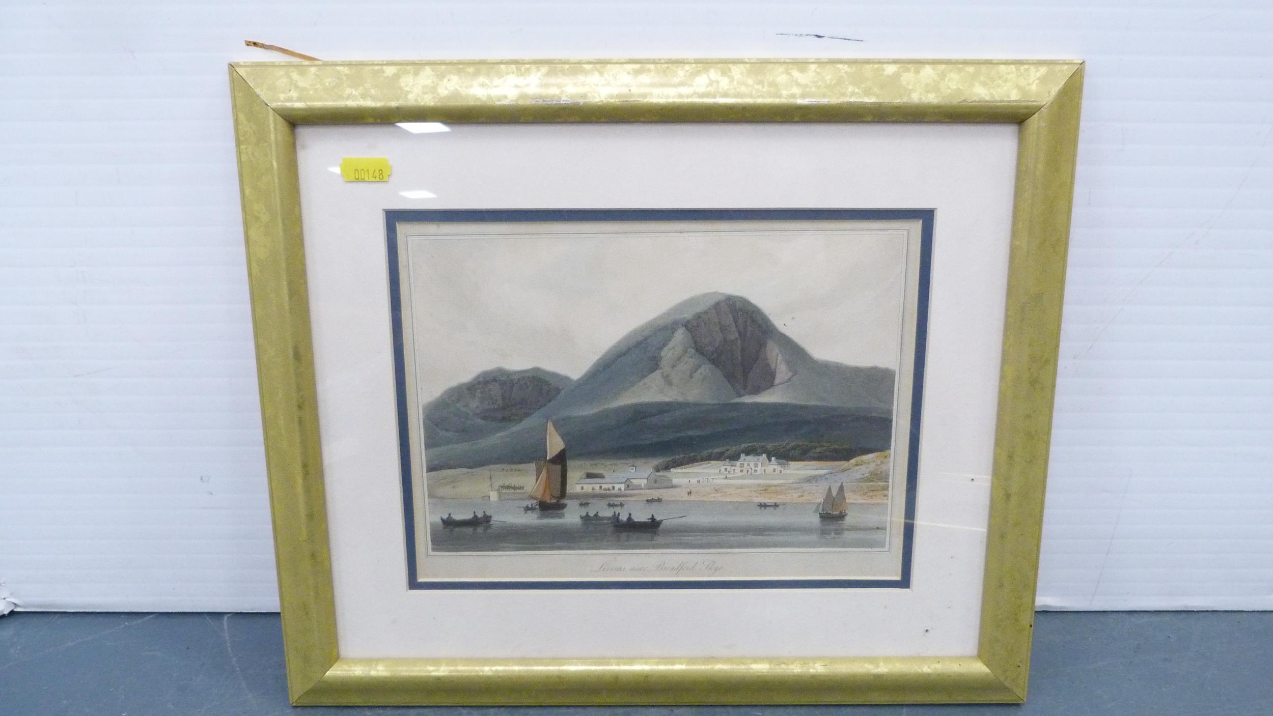 Carton containing books to include collectors' books, print of Skye, a watercolour by W Donaldson of a coastal scene, later engravings of plans of Edinburgh in a scroll.