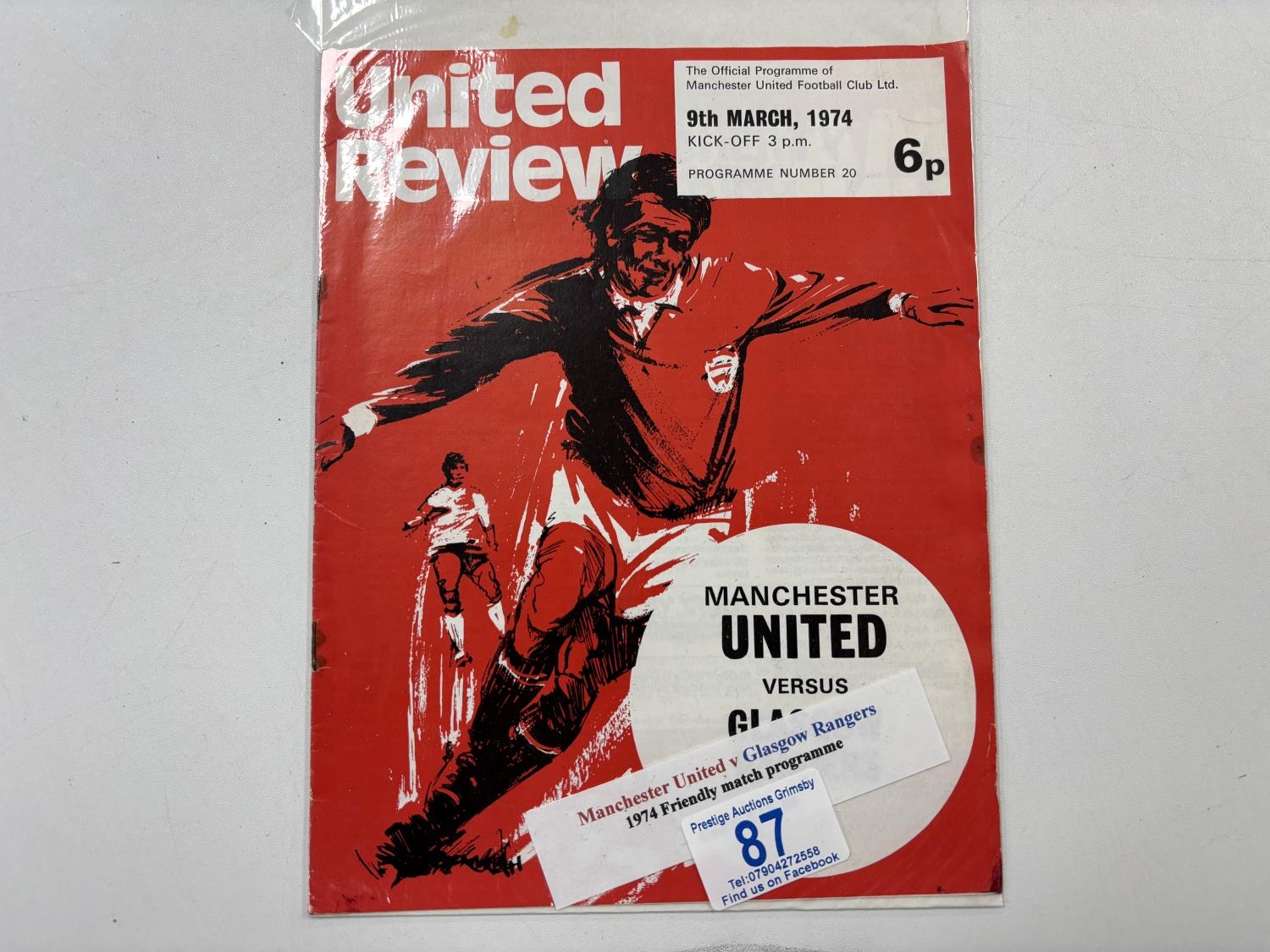 MANCHESTER UNITED V'S GLASGOW RANGERS 1974 FOOTBALL PROGRAMME