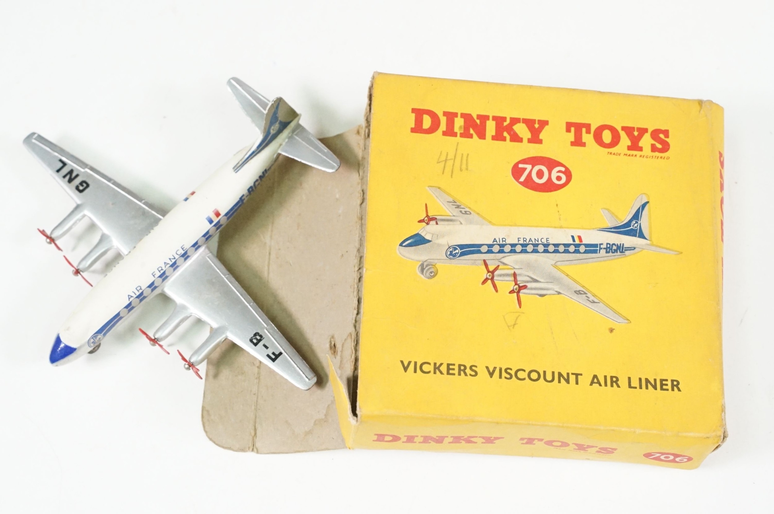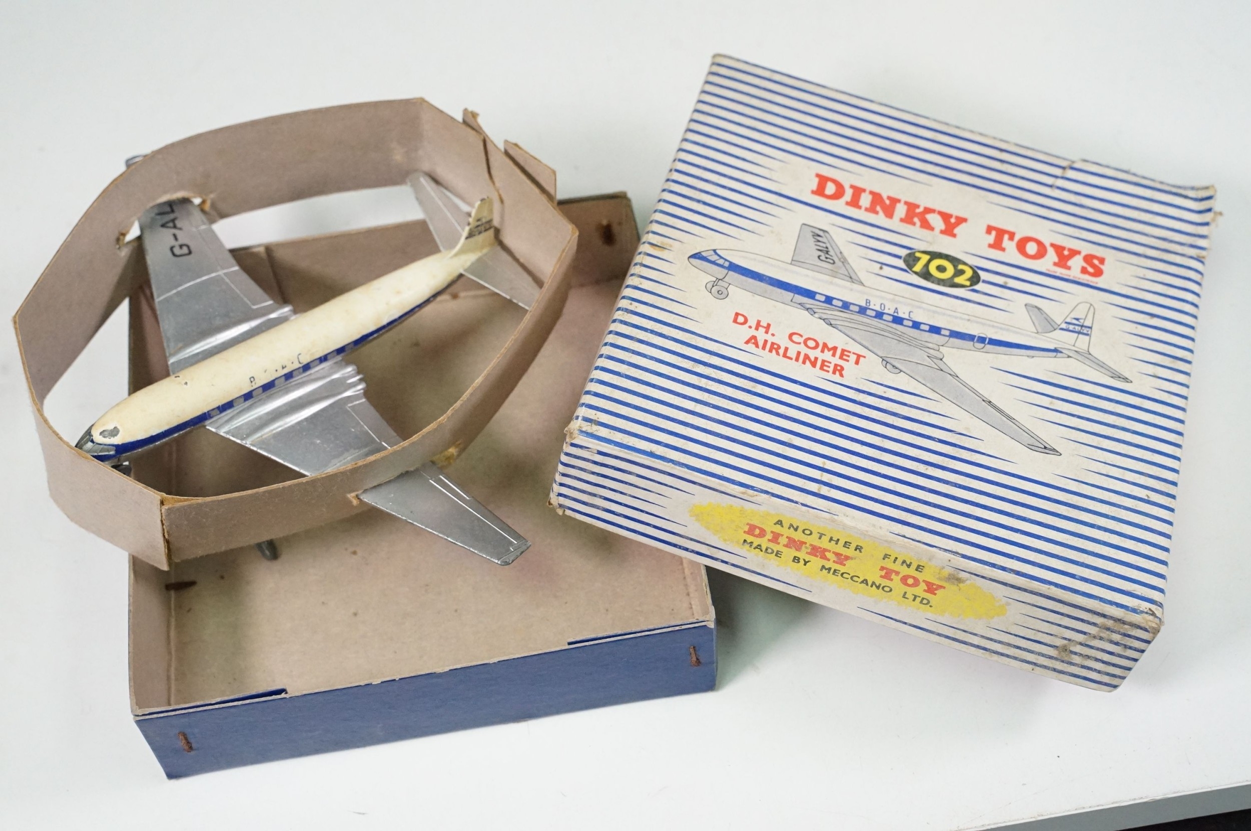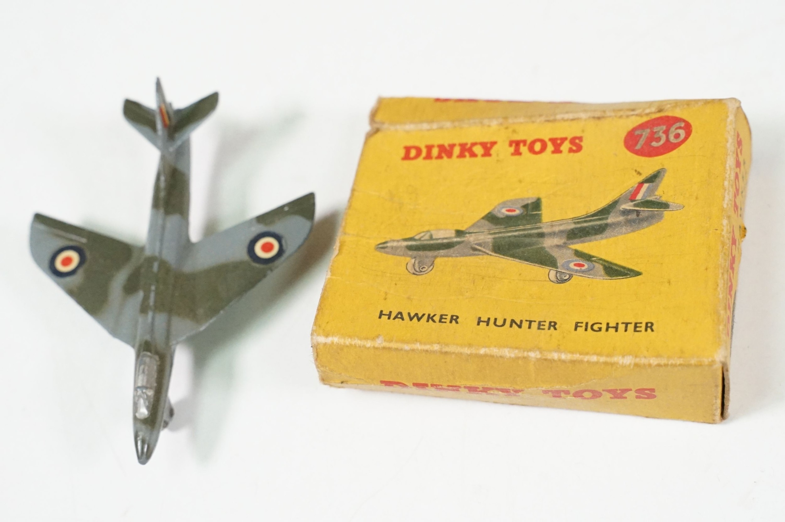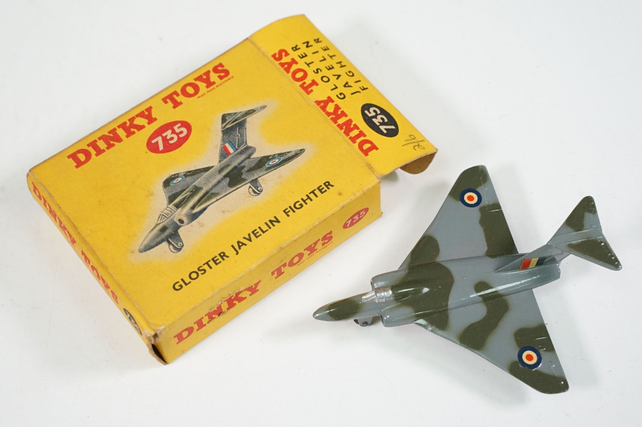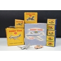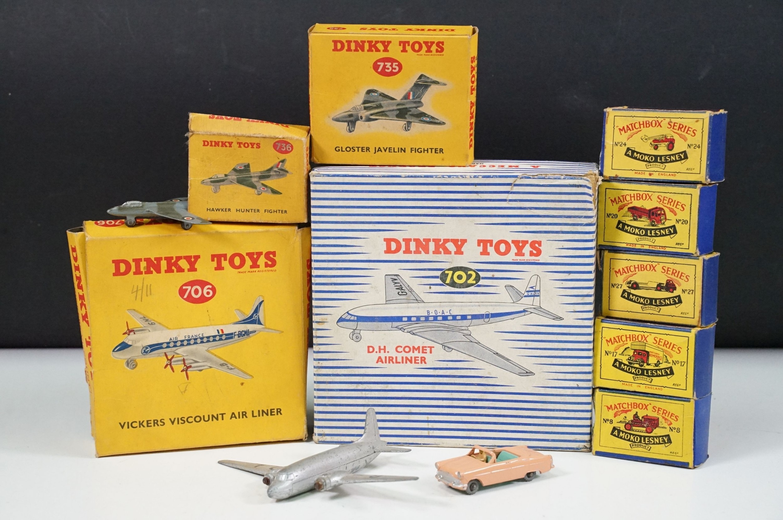 Nine boxed diecast models to include Dinky 706 Vickers Viscount Air Liner, Dinky 702 DH Comet Airliner, Dinky 735 Gloster Javelin Fighter, 5 x Matchbox Series models including No. 27, 8, 17, 24 and 20, all diecast gd-vg overall with some paint chipping throughout, boxes showing signs of wear and dustiness