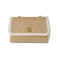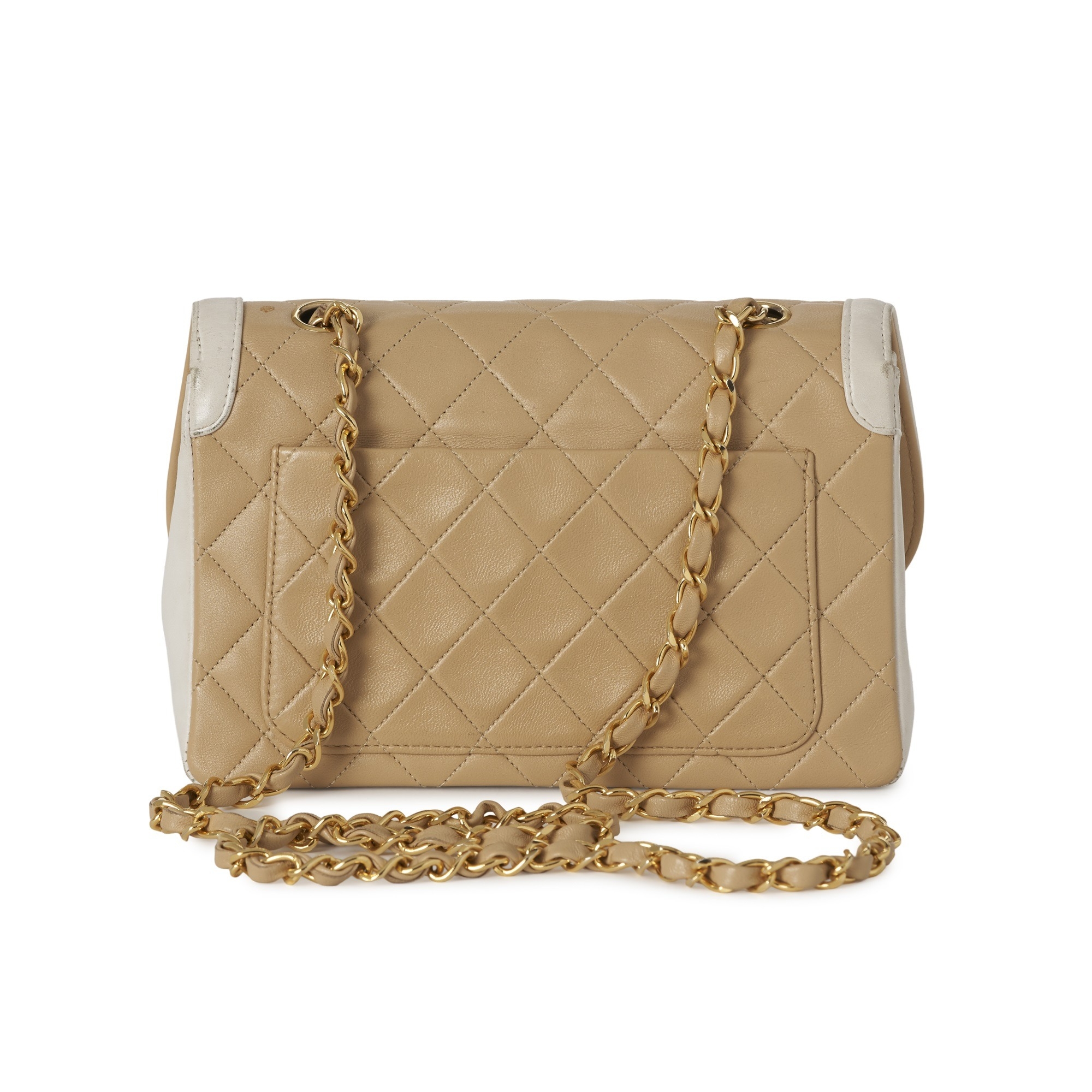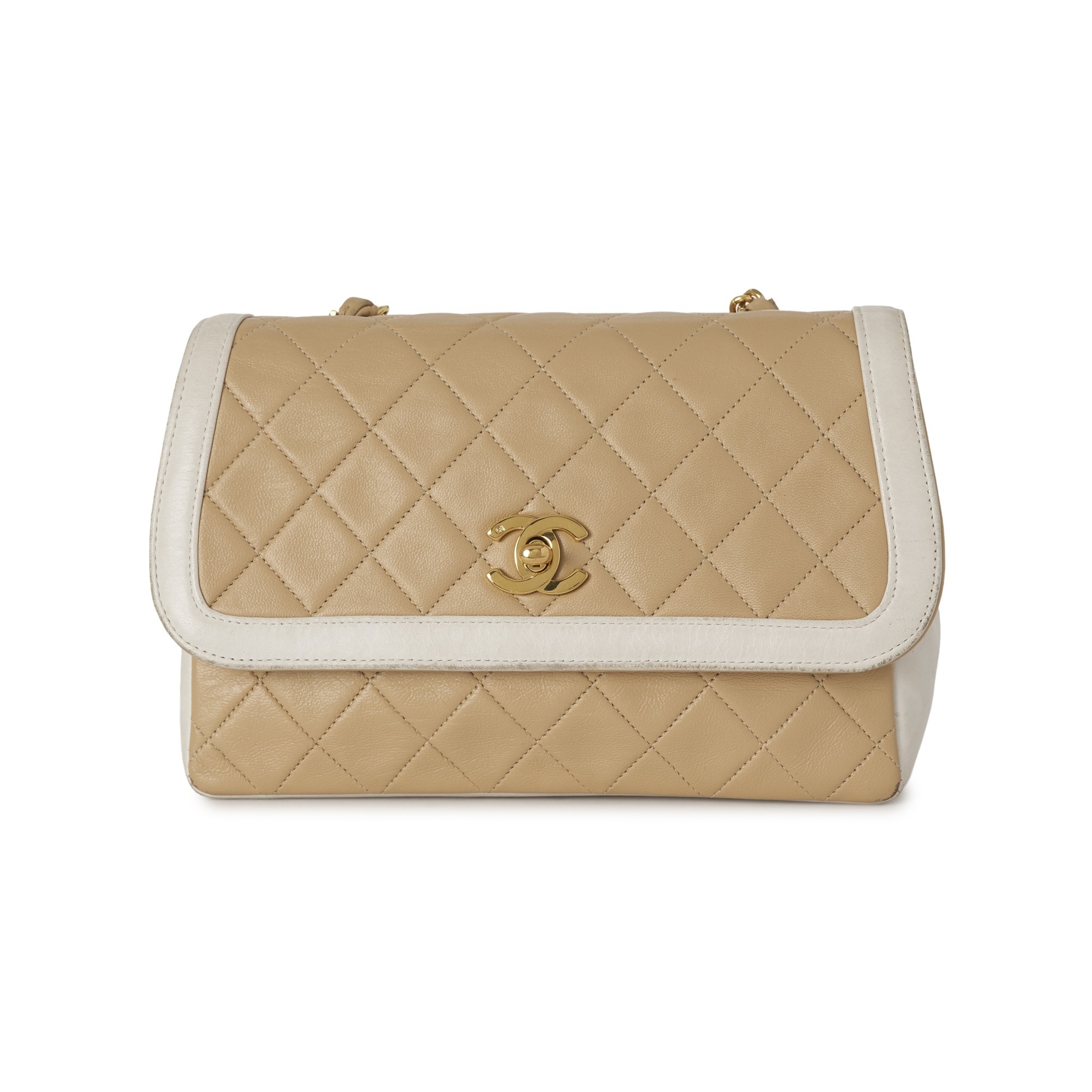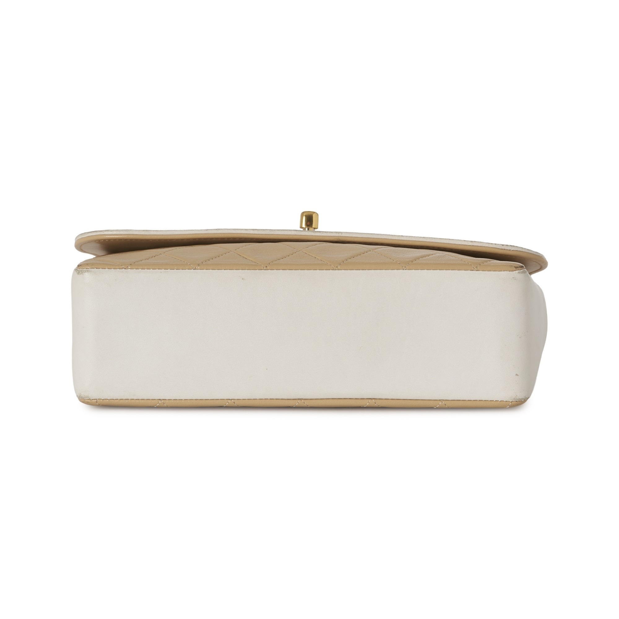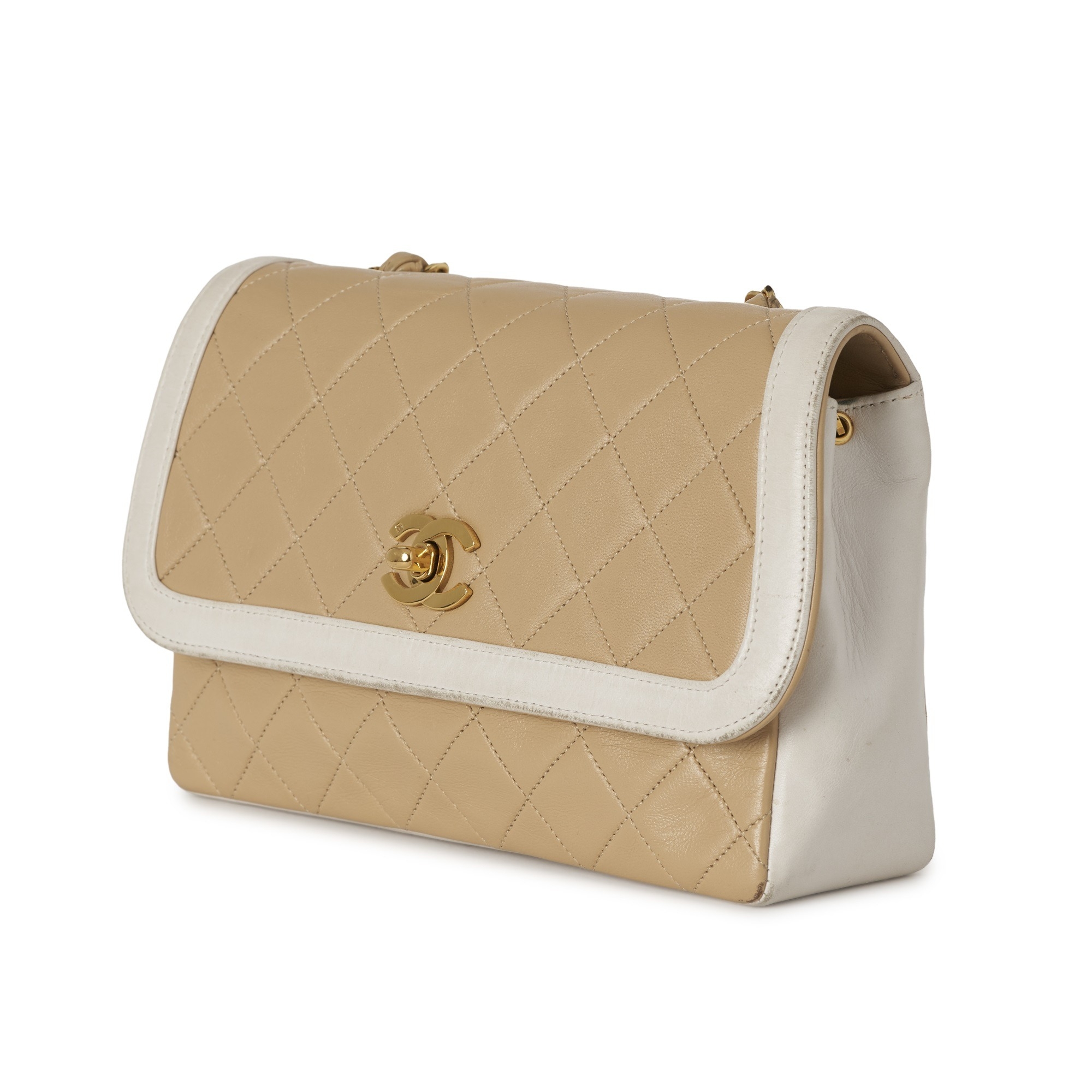 Chanel, a vintage Diana Flap handbag with purse, crafted from black quilted cream leather, with white leather trim, 24k gold-plated hardware, a rear slip pocket, signature CC turn-lock fastening, chain and interwoven leather shoulder strap, and a matching removable purse, measuring 8 by 16 by 25cm