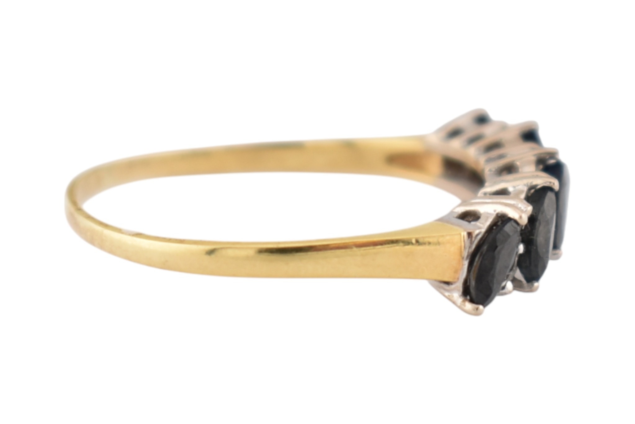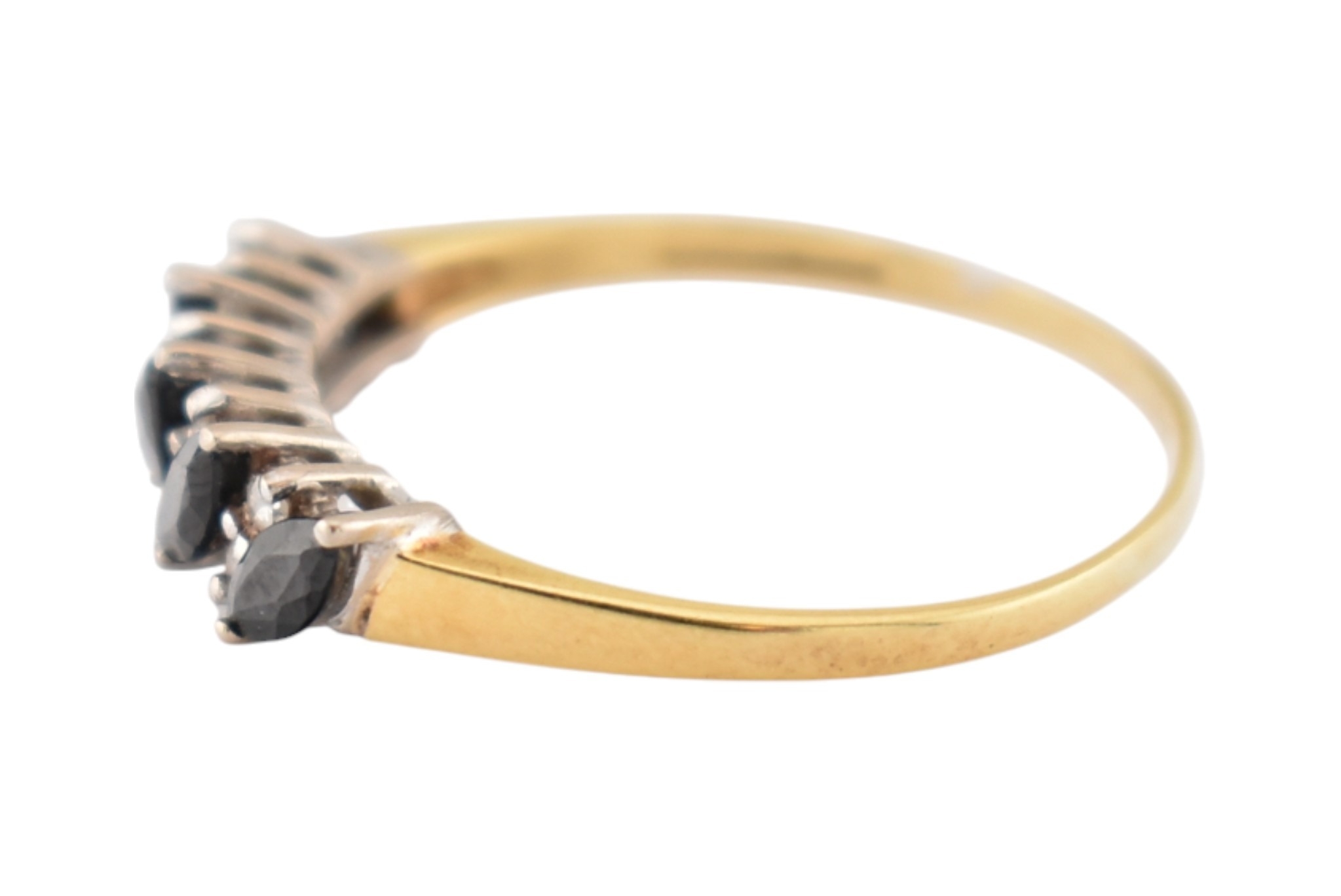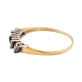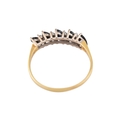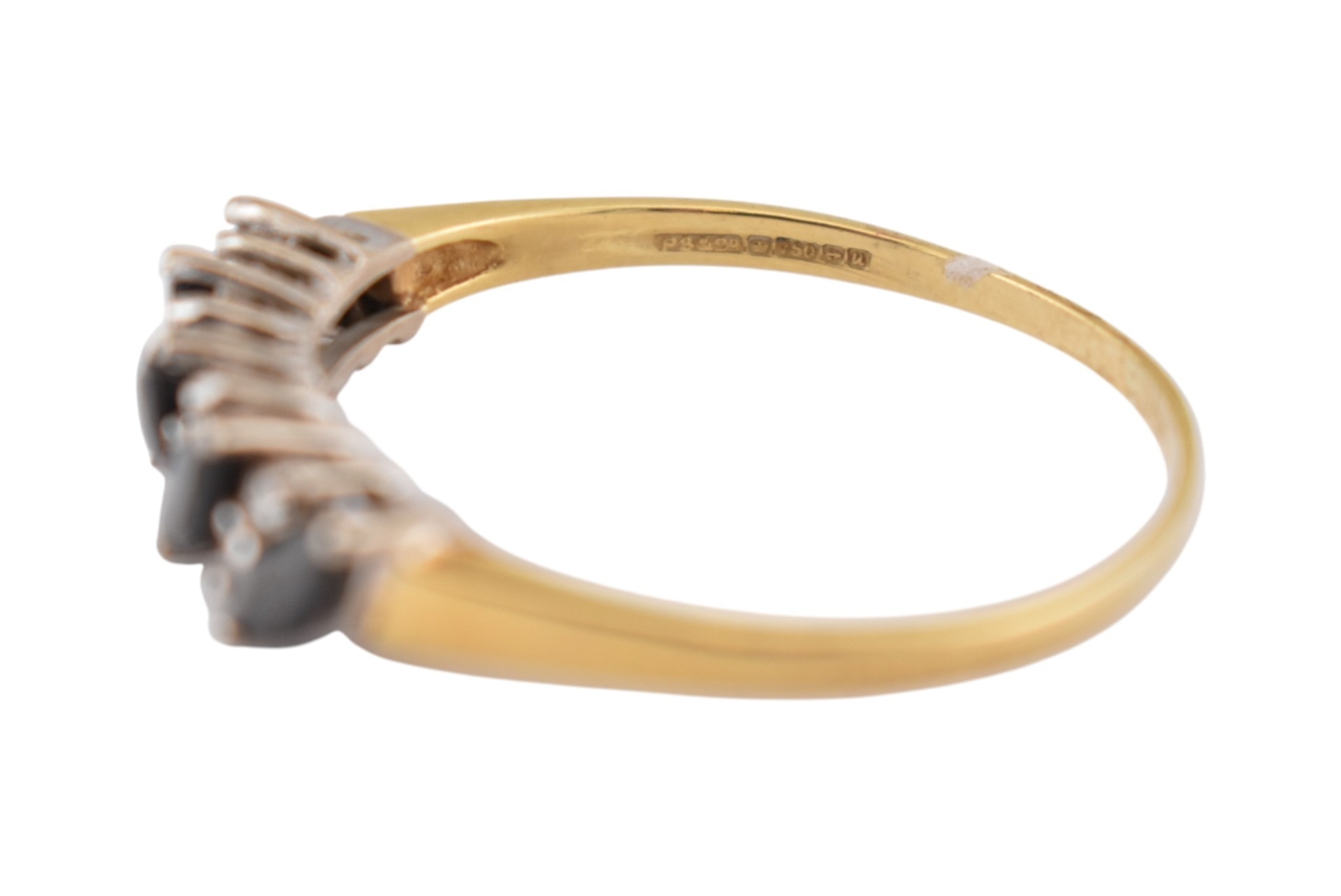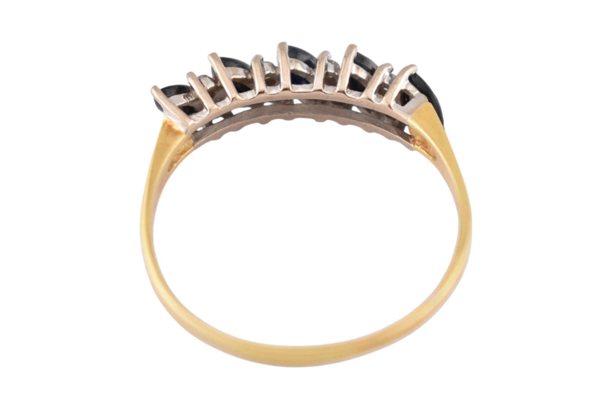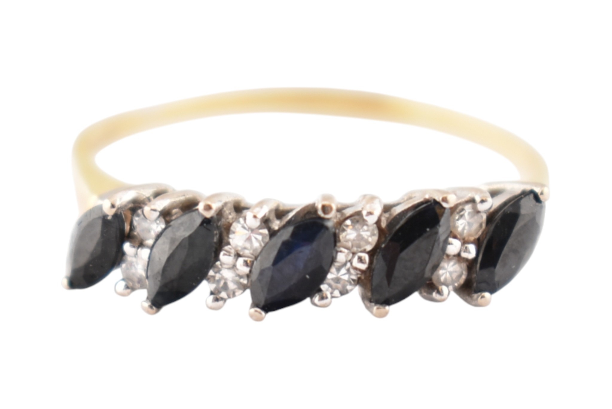A hallmarked 18ct gold sapphire and diamond five stone ring. Weight 2.6g. Size V