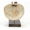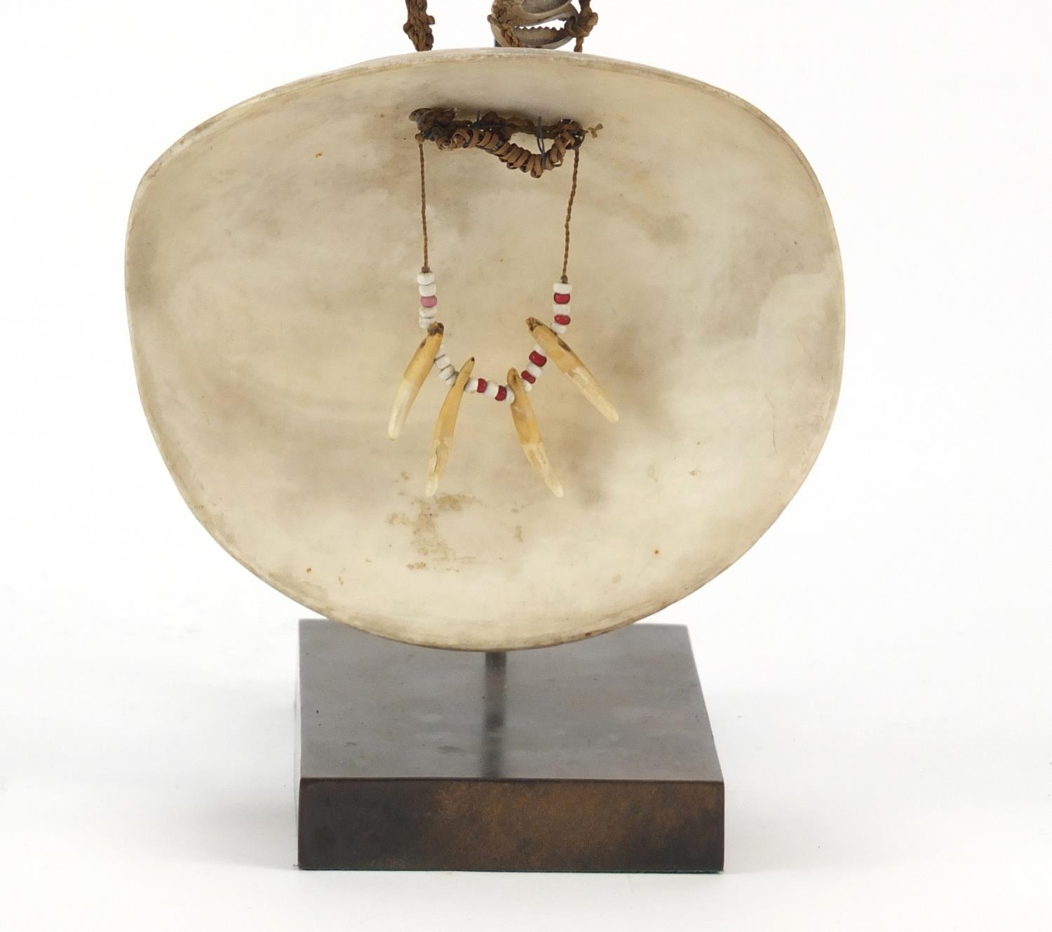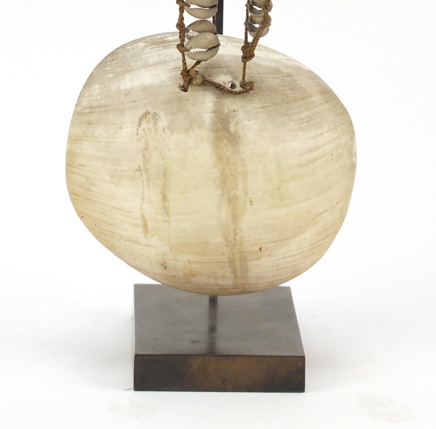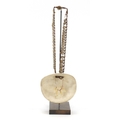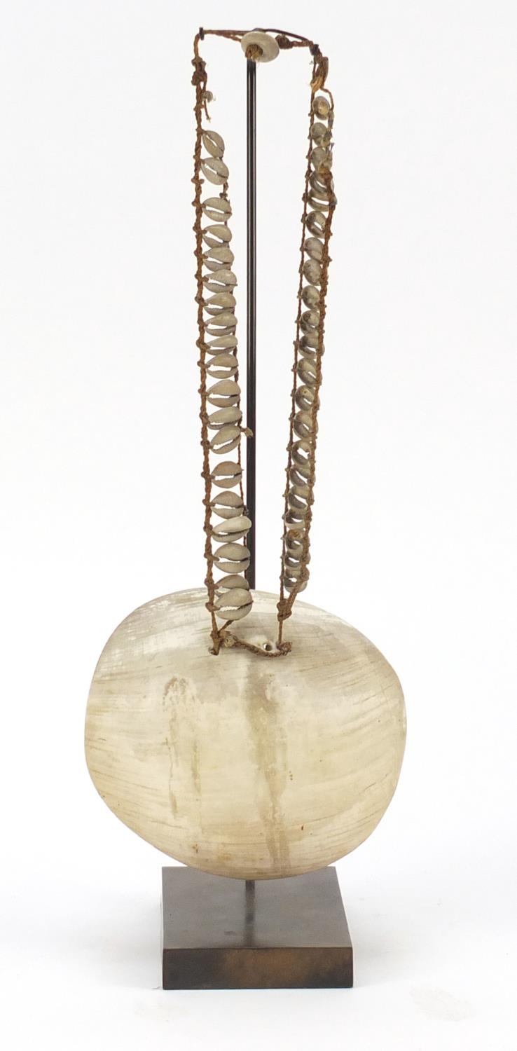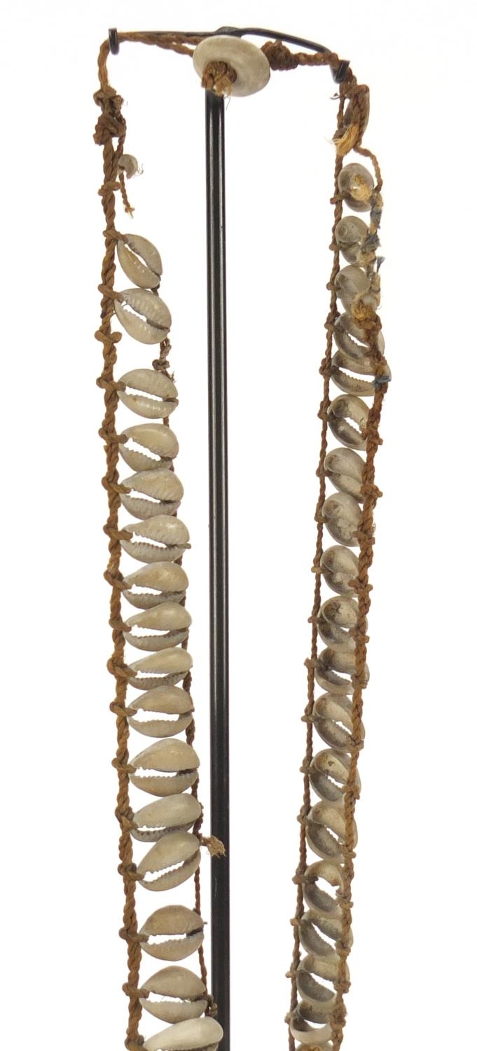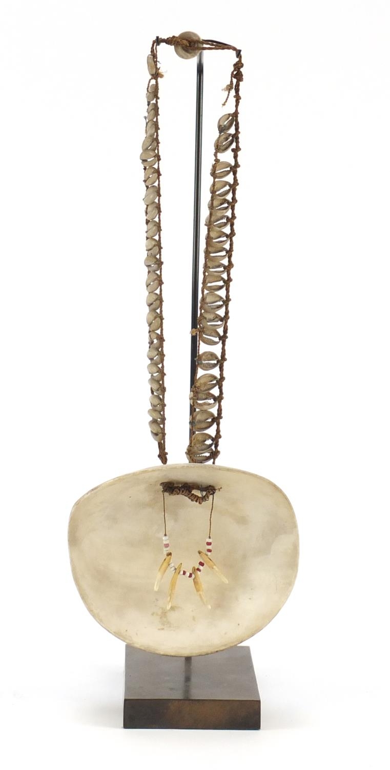 Tribal interest shell currency necklace from Papua New Guinea, on later display stand, 45cm high