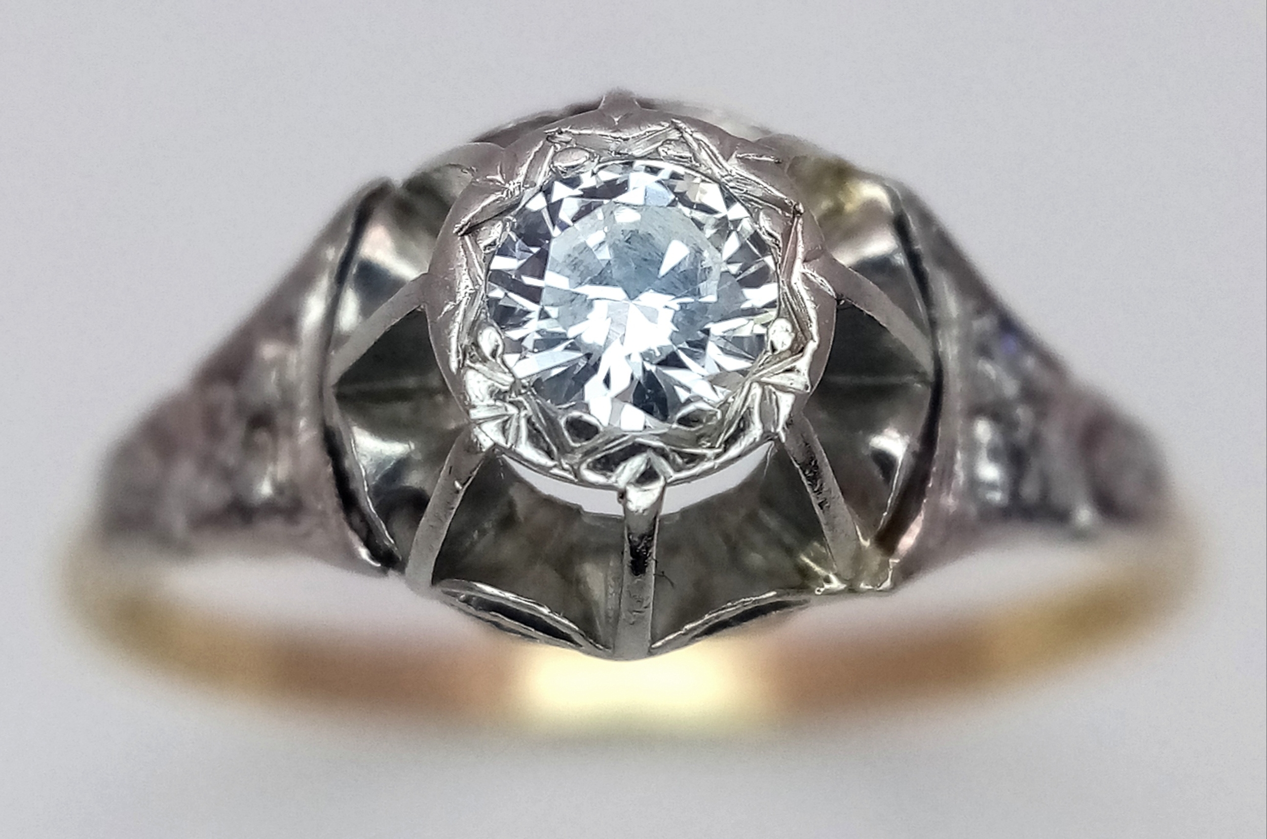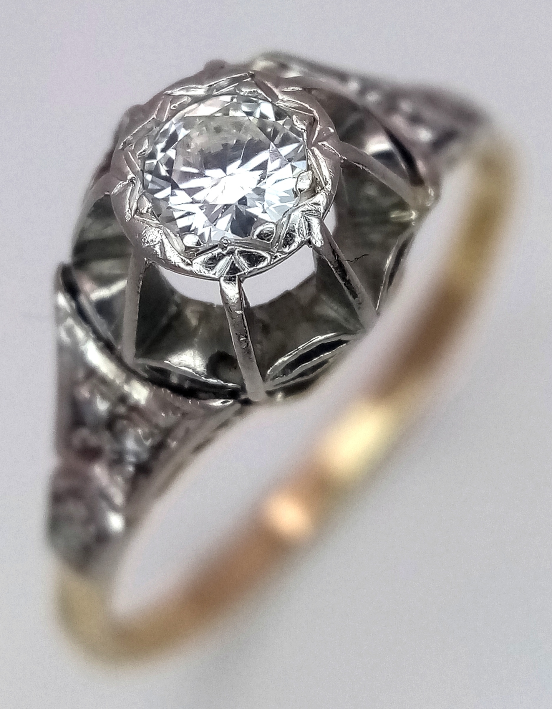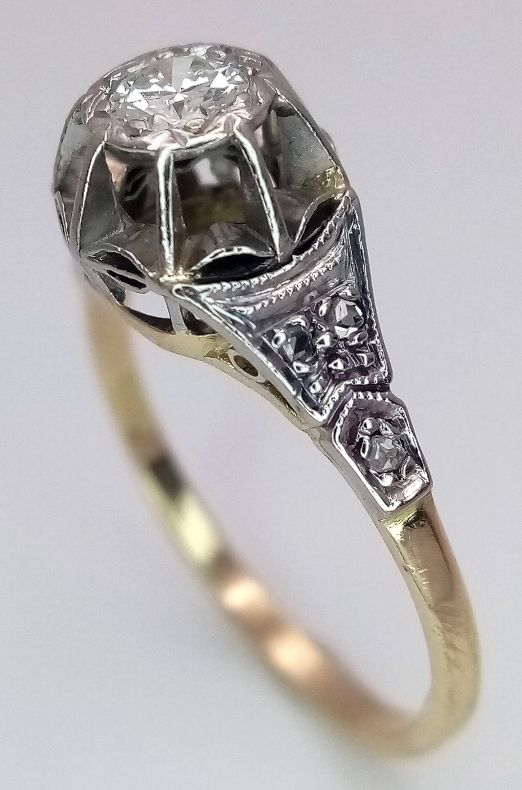 A VINTAGE 18K GOLD AND PLATINUM DIAMOND RING. 0.25CT, 2.2G TOTAL WEIGHT, SIZE N. Ref: SP 7001