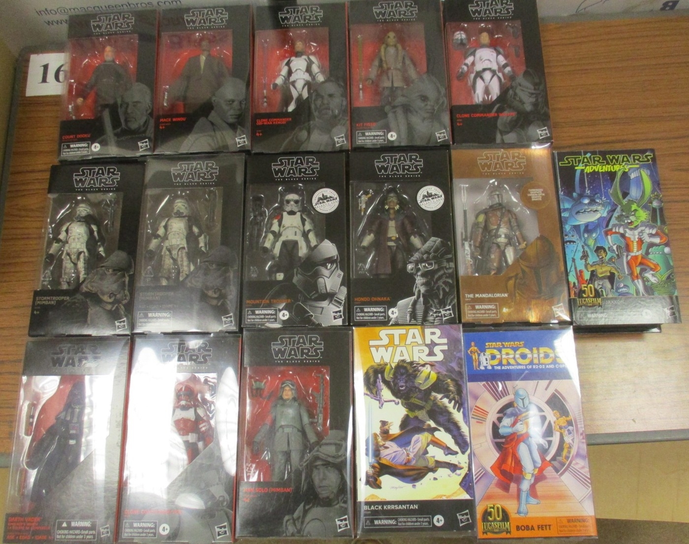 Star Wars. Hasbro. Collection of The Black Series figures, generally mint in excellent to near mint boxes, includes ranges of Prequel Era, Solo, Galaxy's Edge, etc. Qty 16 (B)