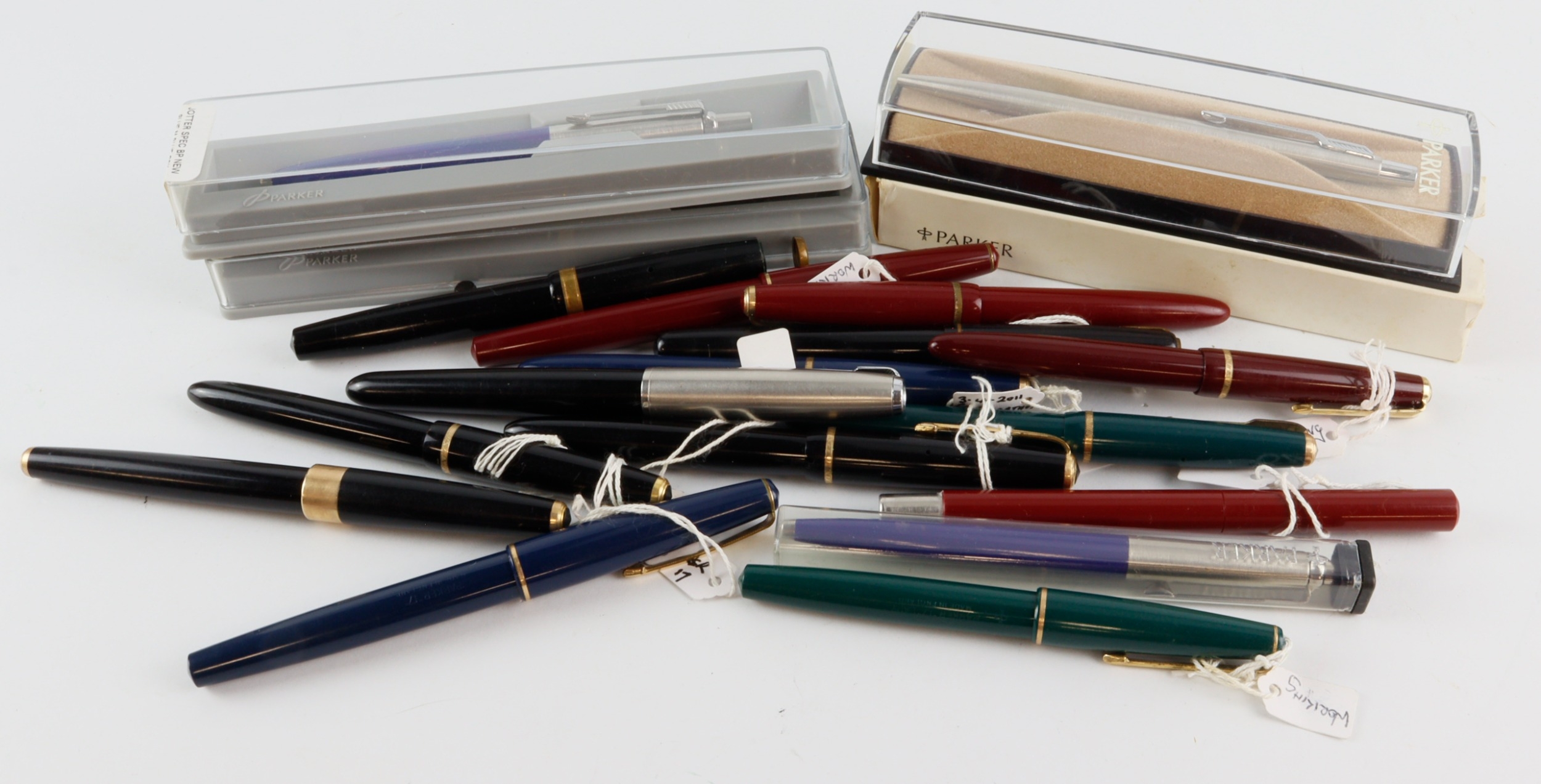 Pens. A collection of eighteen fountain pens, ballpoint pens, etc., makers include Parker, Waterman, etc.