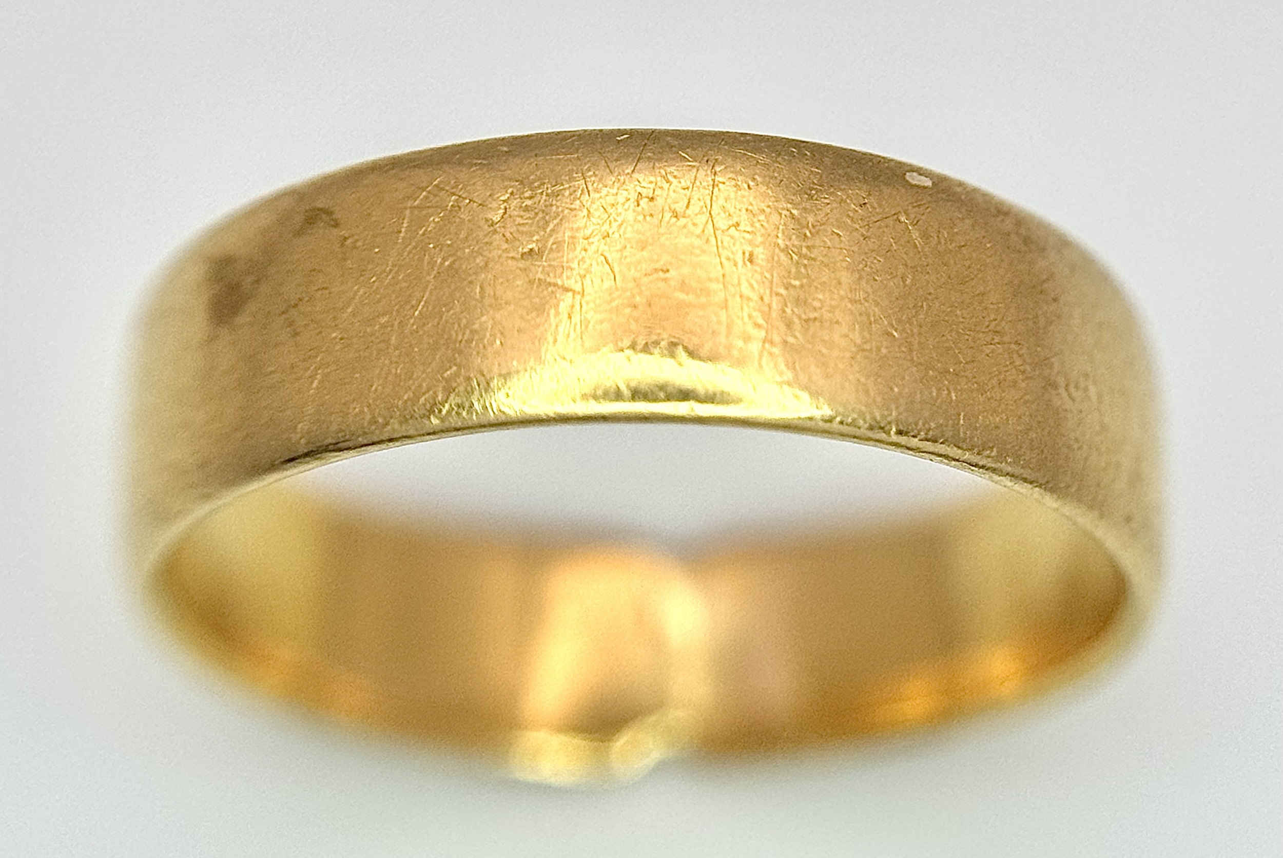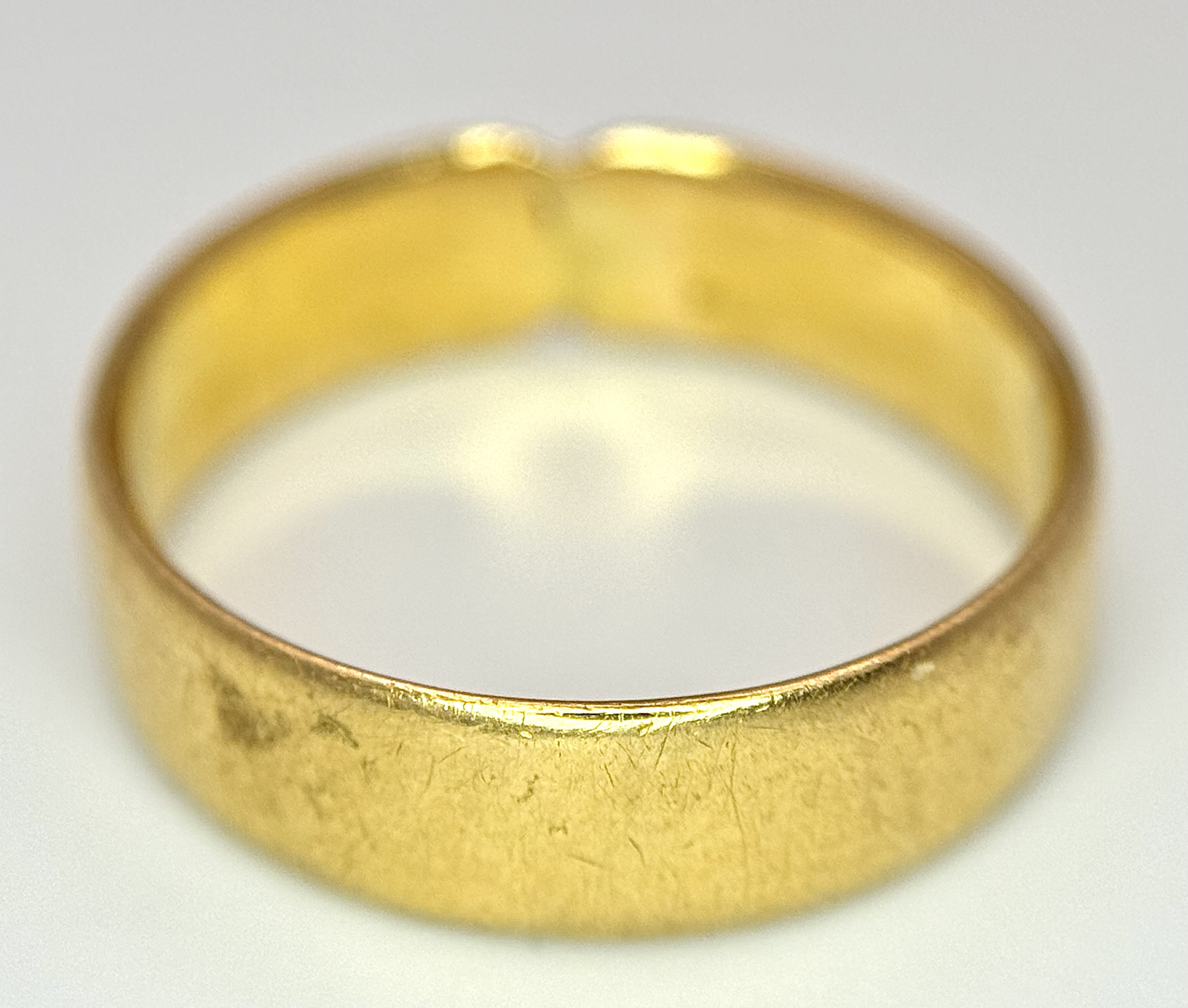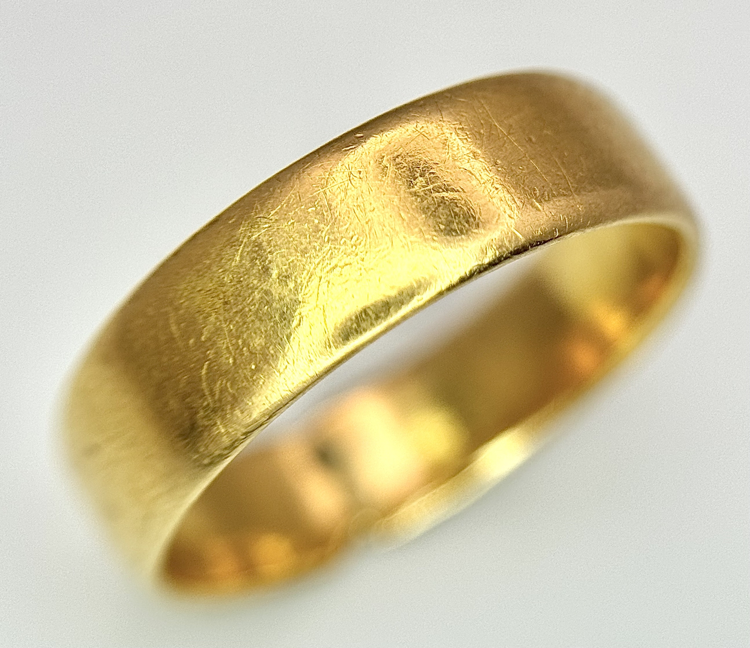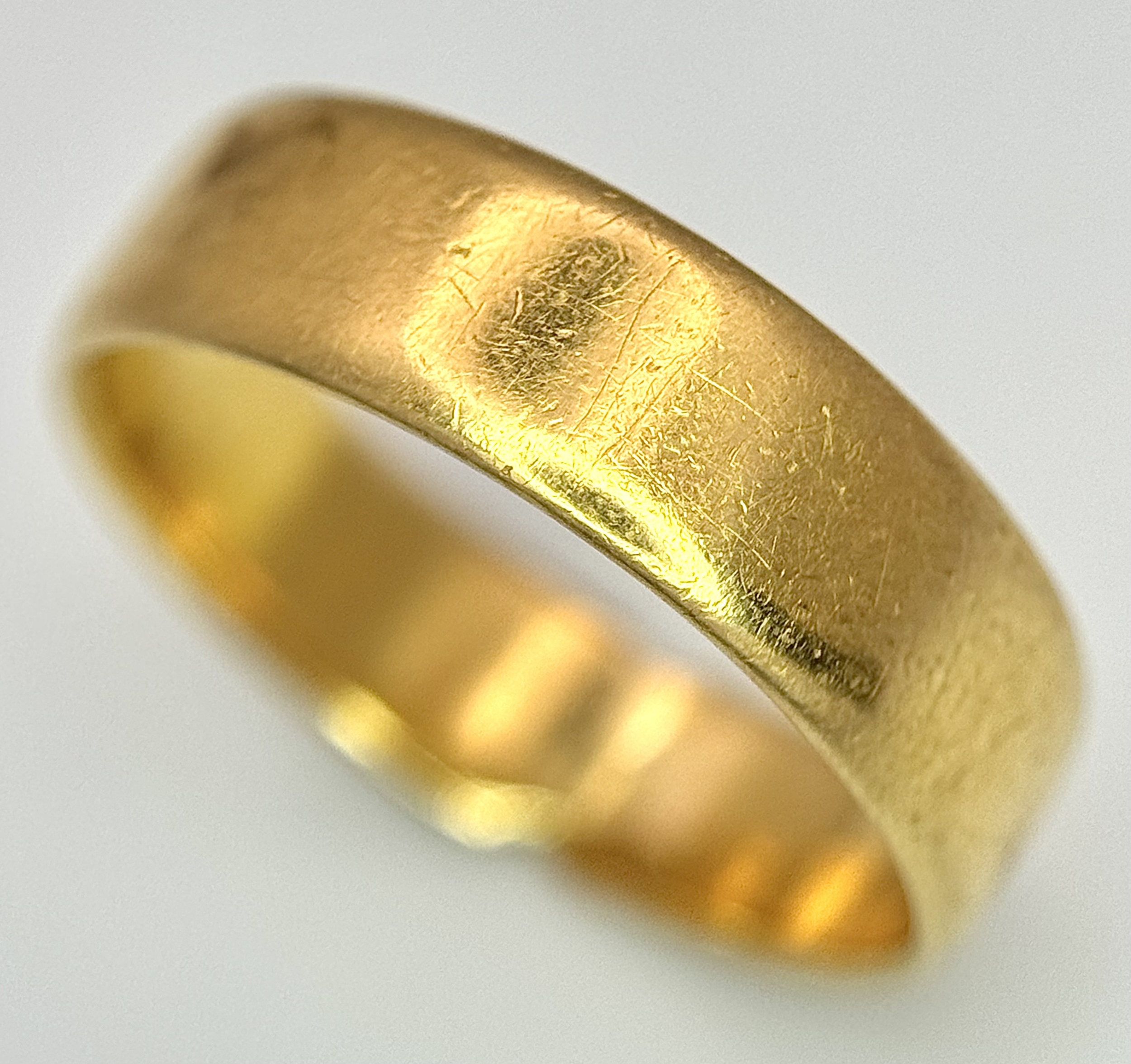 A 22K Yellow Gold Band Ring. 5mm band width. Size M. 4.24g weight.