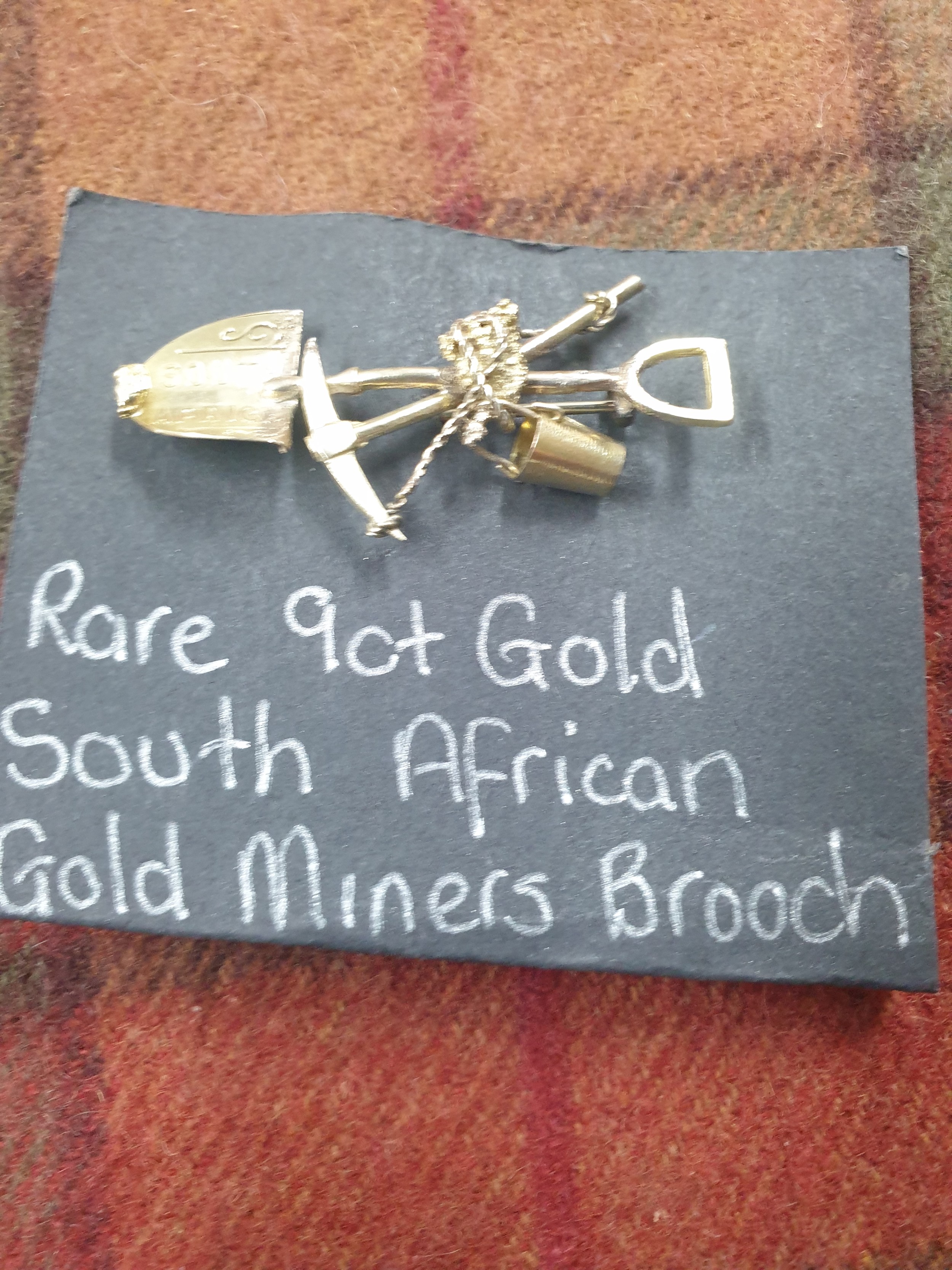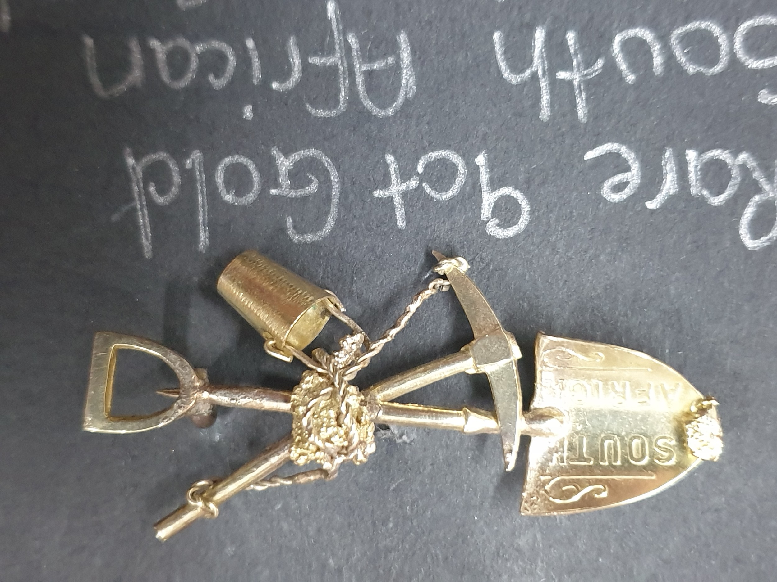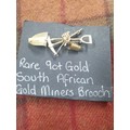 Rare 9CT Yellow Gold South African Gold Miners Brooch With Small Piece Of 24 ct Gold At End Of Shovel Total Weight 3.68G