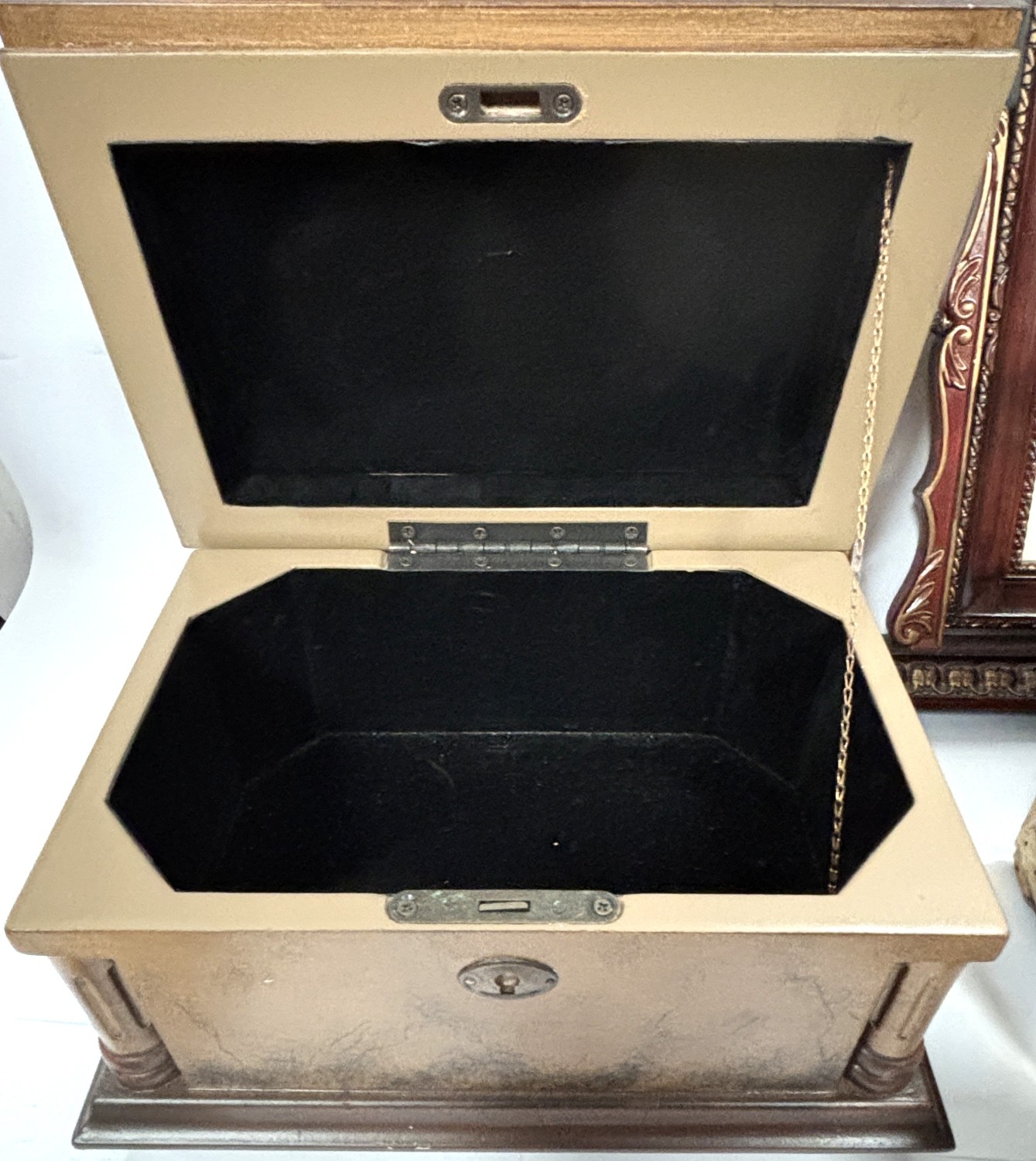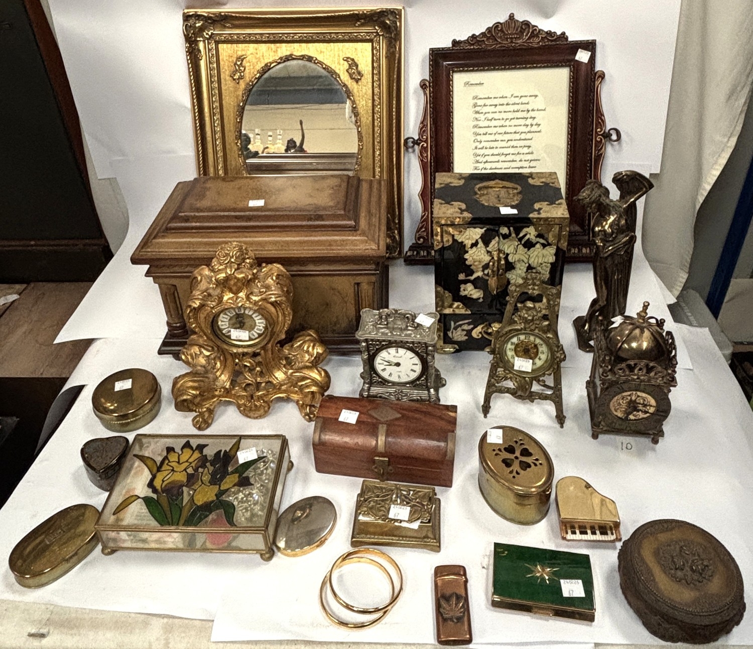 A selection of clocks, boxes, mirror etc