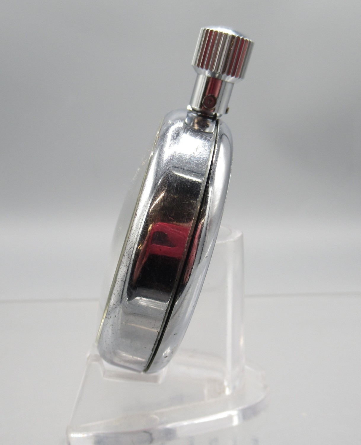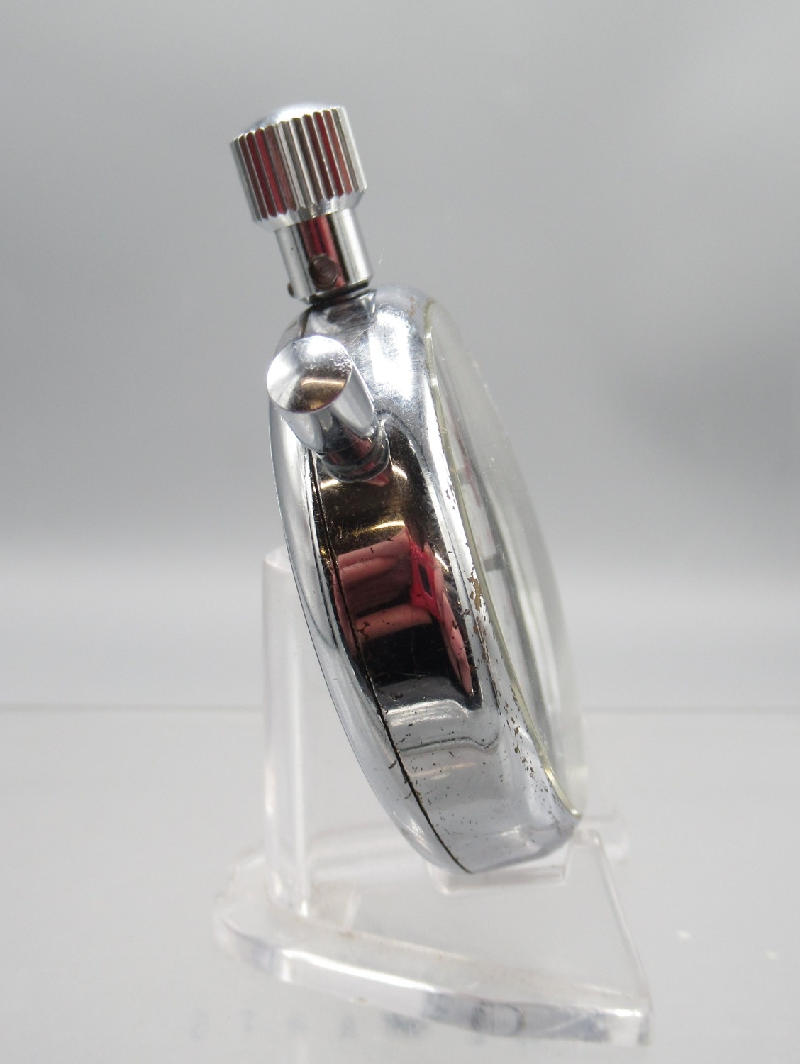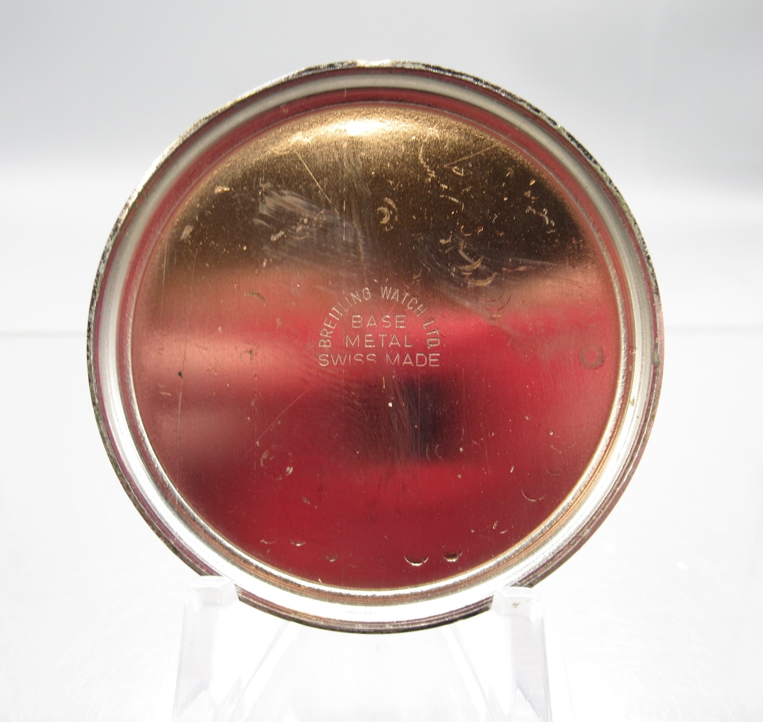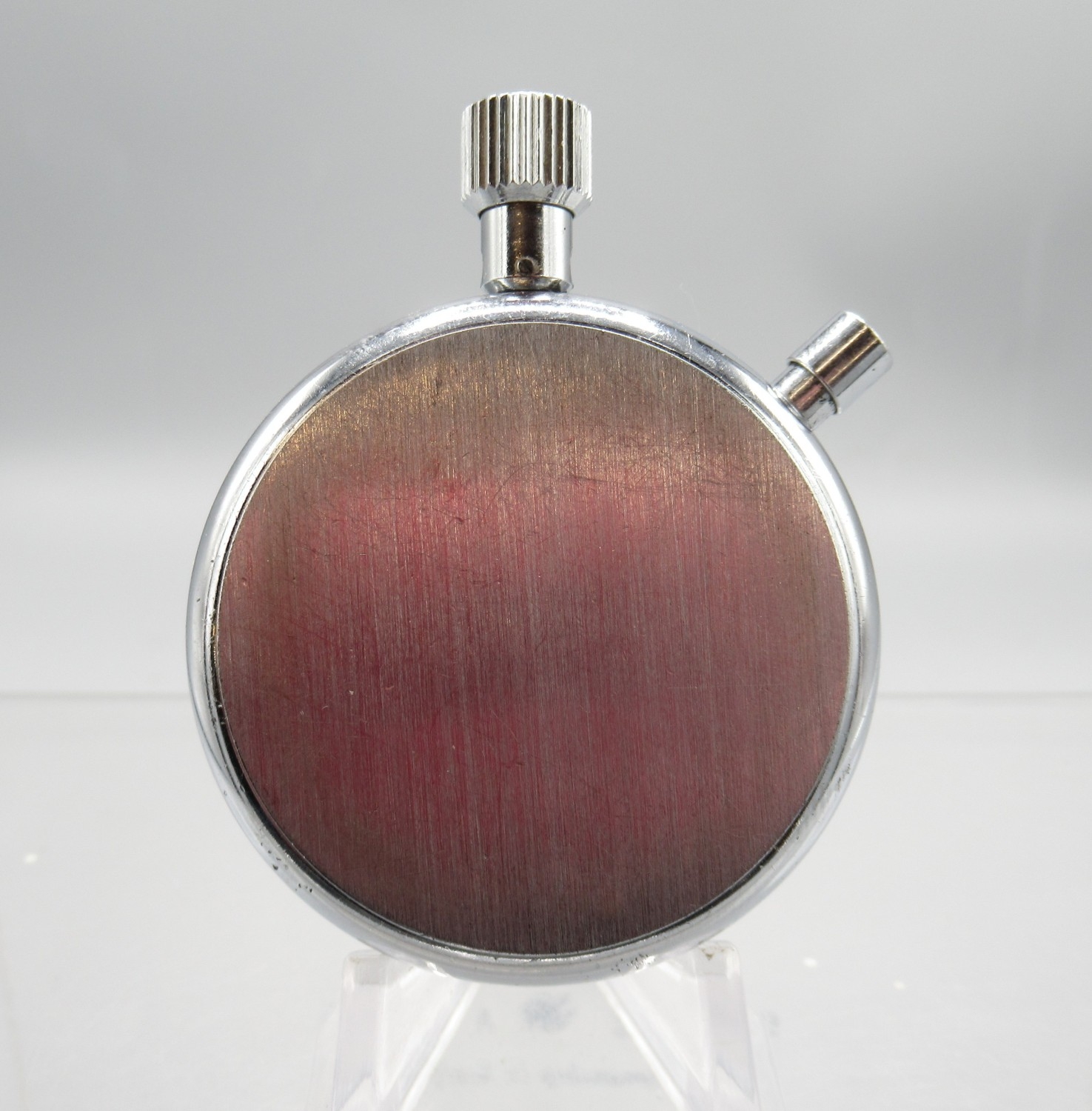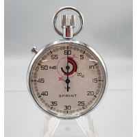 Breitling 1/10 chrome stopwatch, signed white dial with 15 minute subsidiary dial, signed snap on case back, Breitling/Baumgartner 410 calibre 1 jewel unadjusted movement, D52mm