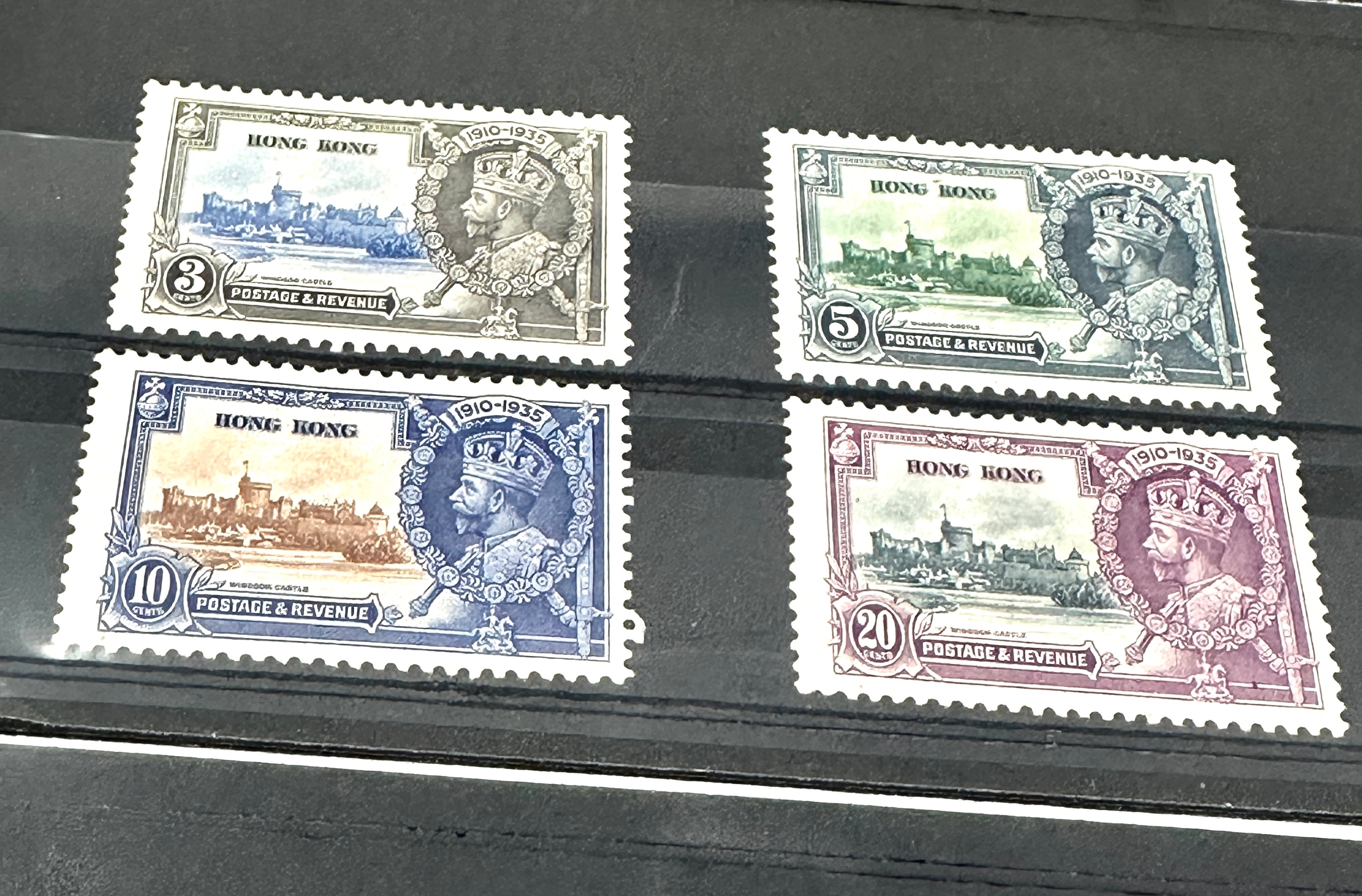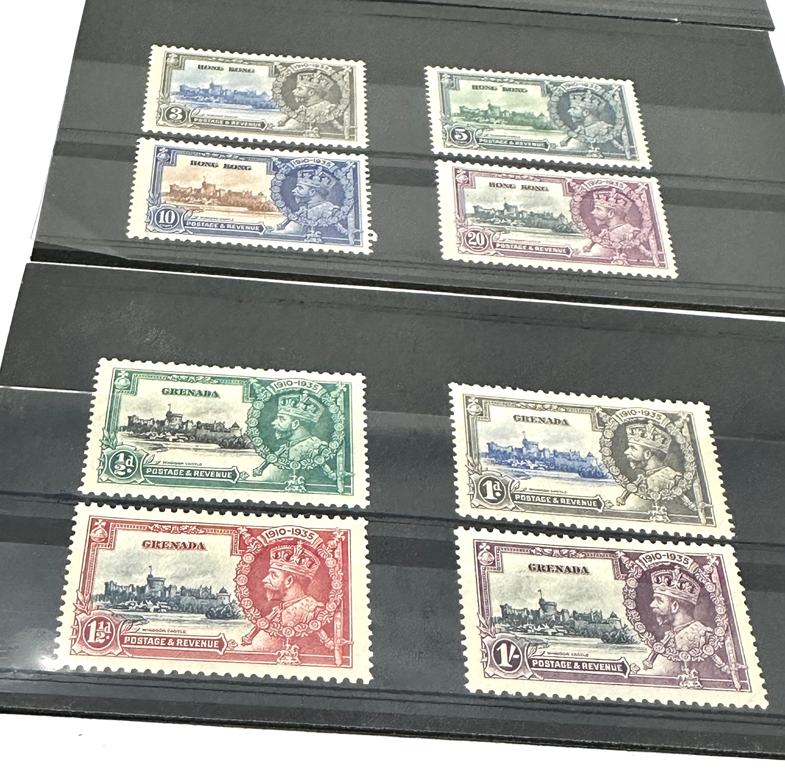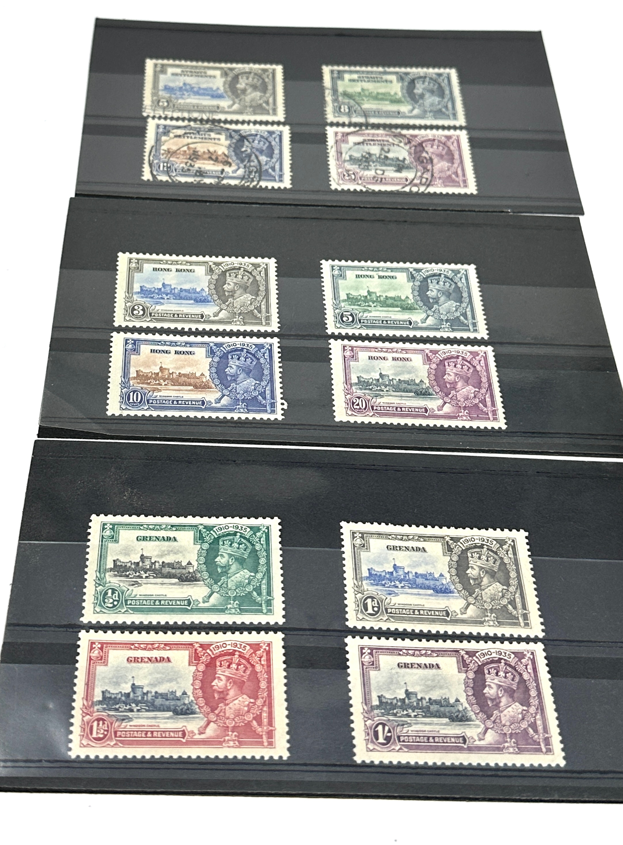 collection of King George V 1935 Silver Jubilee stamps from various British Commonwealth territories.