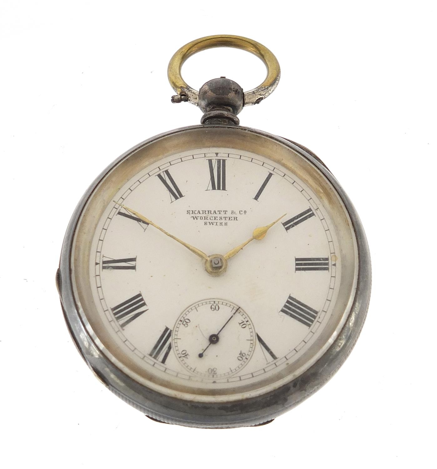 Skarratt & Co, gentlemen's silver open face pocket watch with subsidiary dial, 52mm in diameter