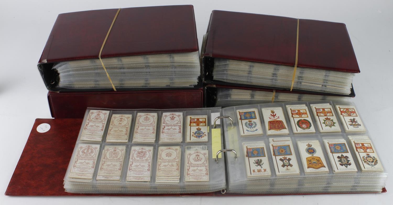 Military interest cards, very large quantity contained in 5 modern albums, approx 46 complete sets cat value approx £2500 together with a quantity of part sets, many virtually complete, mixed condition many G - VG heavy duplication, worth viewing