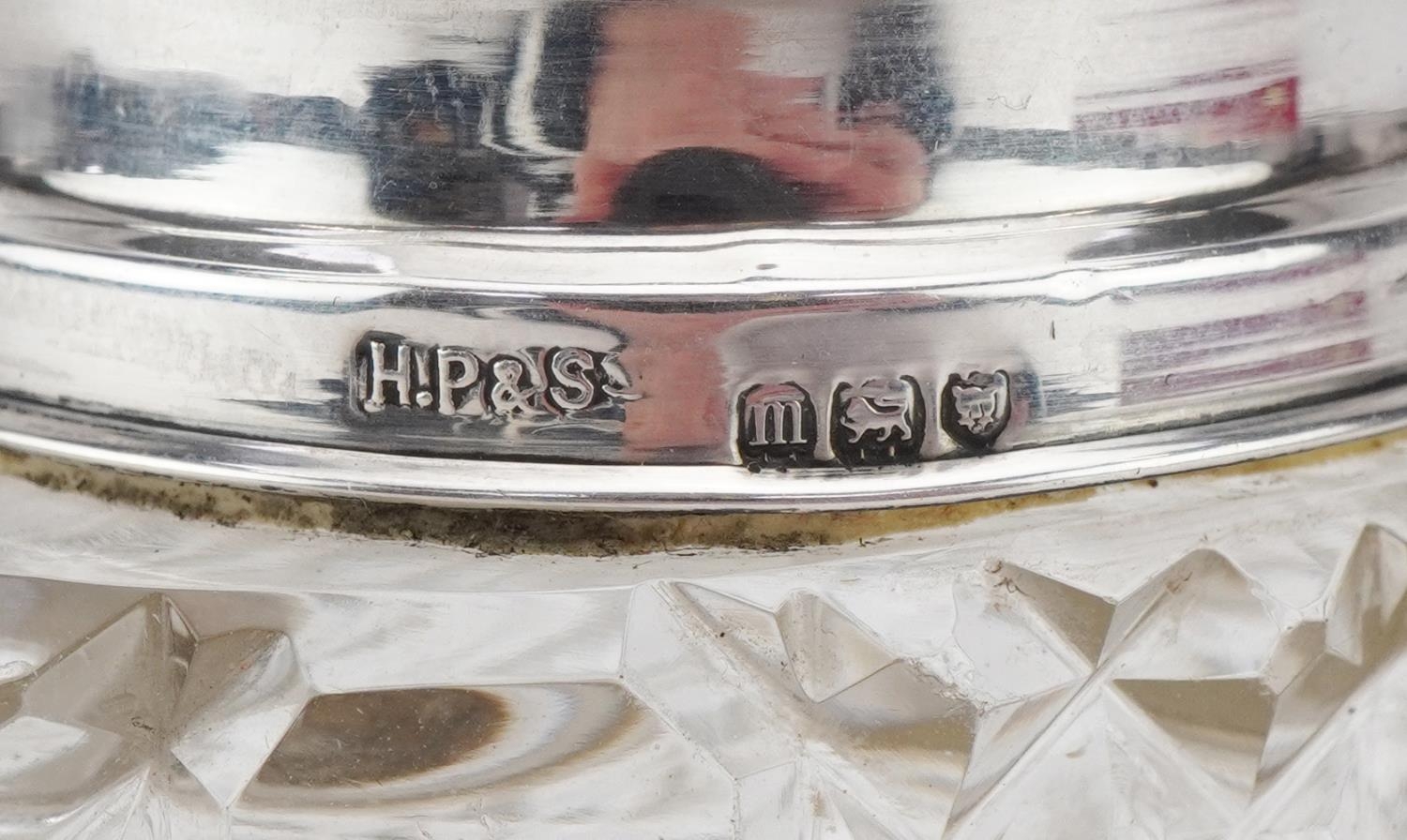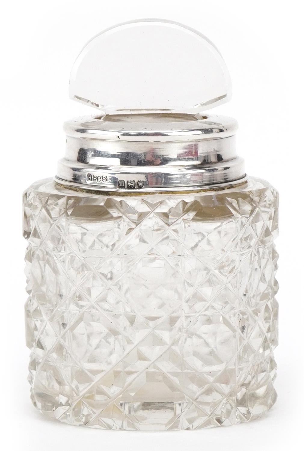 Henry Perkins & Sons, an Edwardian cut glass scent bottle and stopper with silver collar, London 1907, 10cm high.