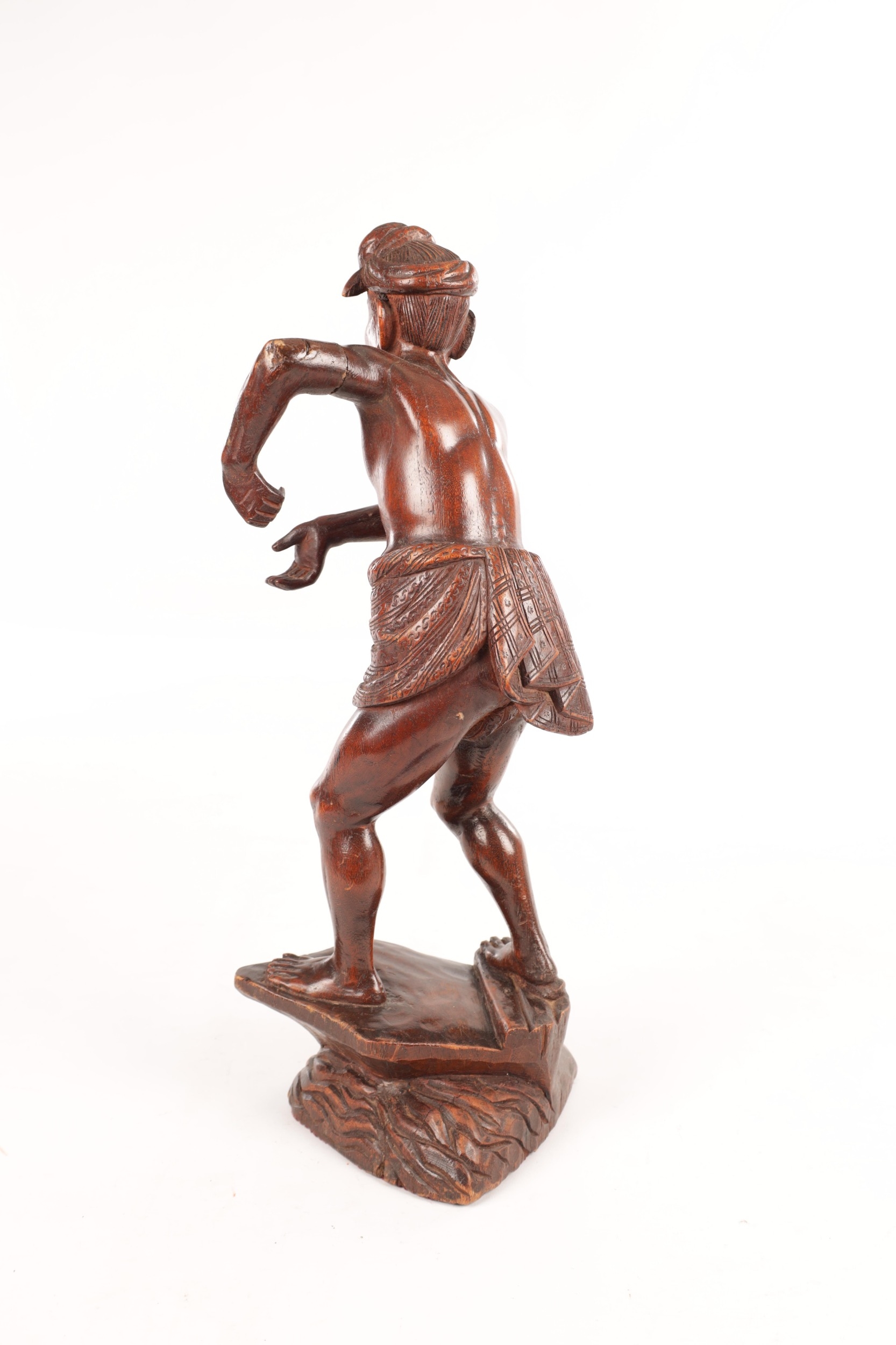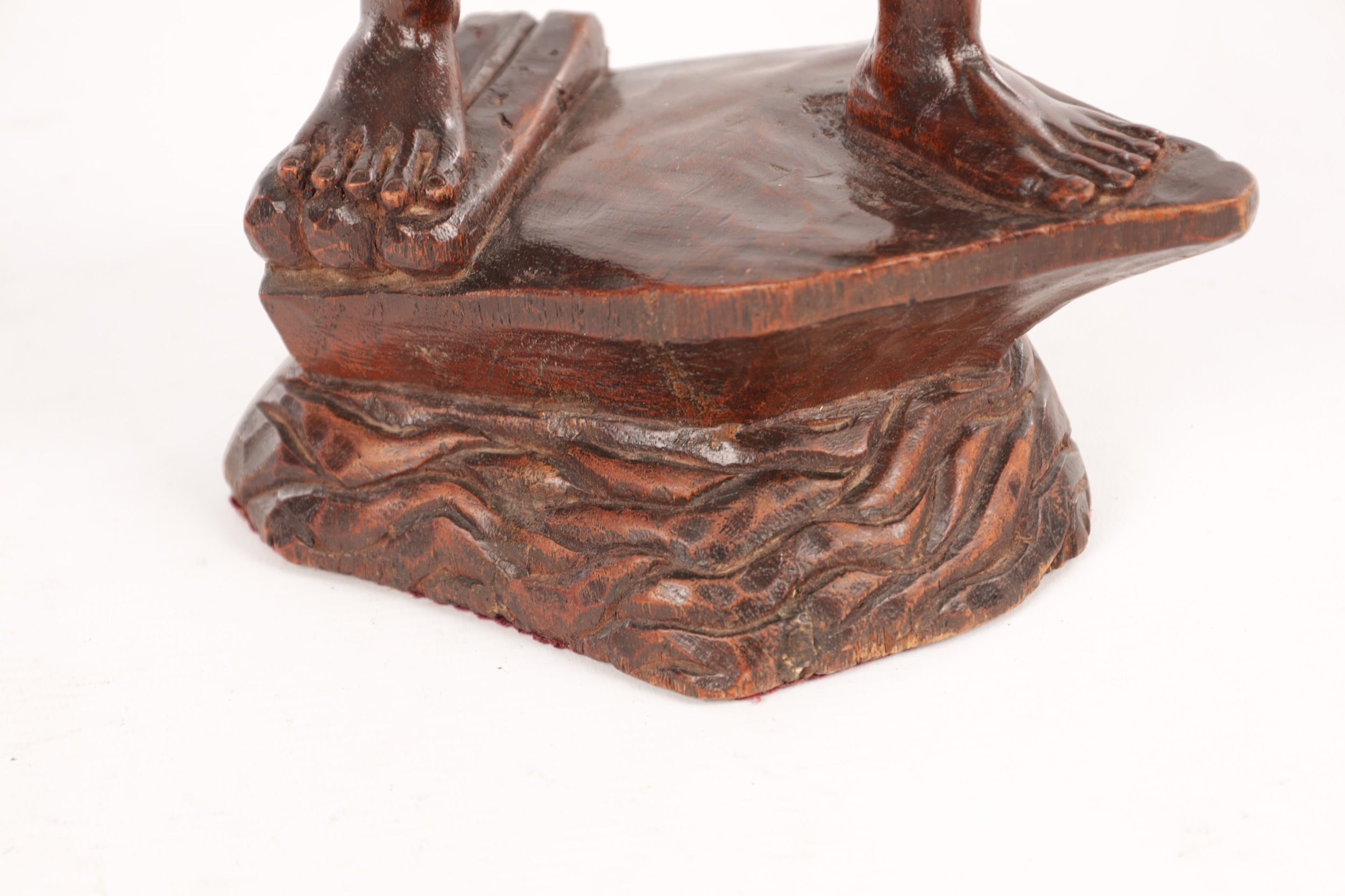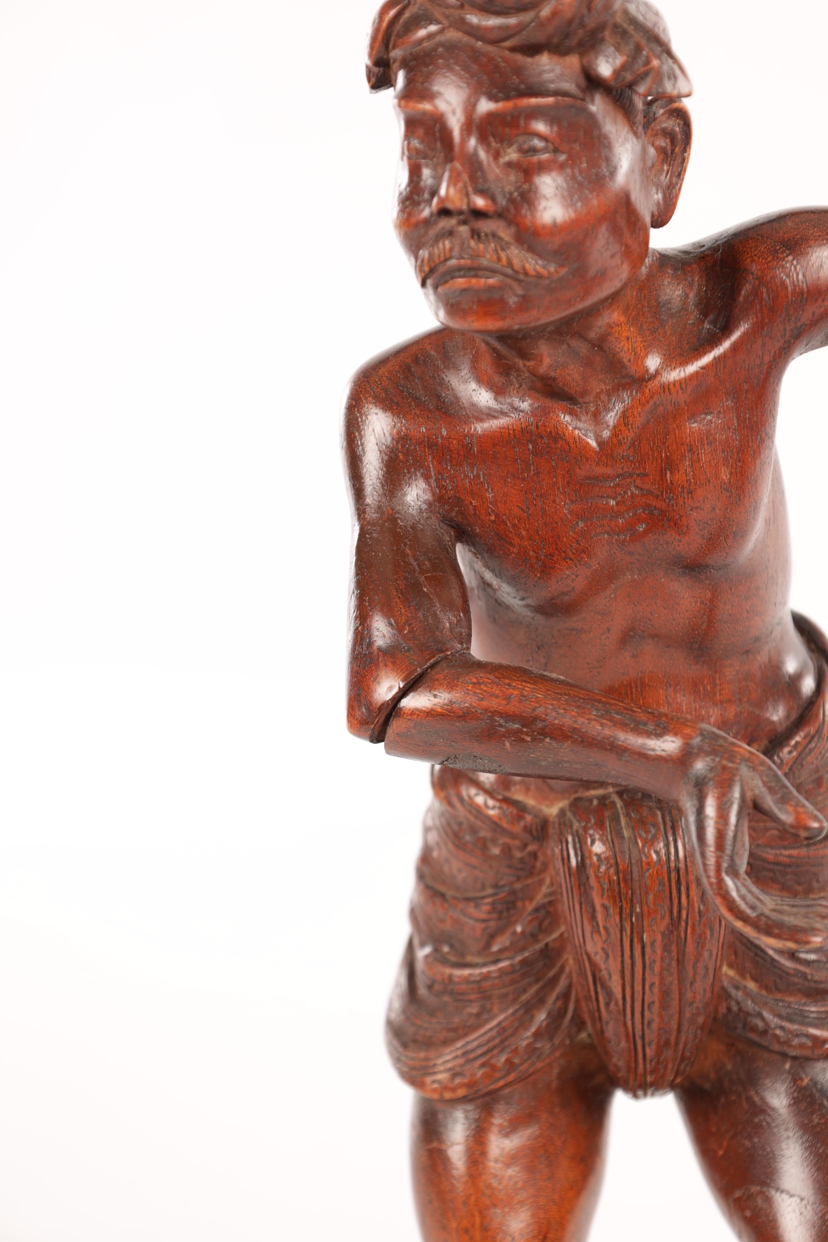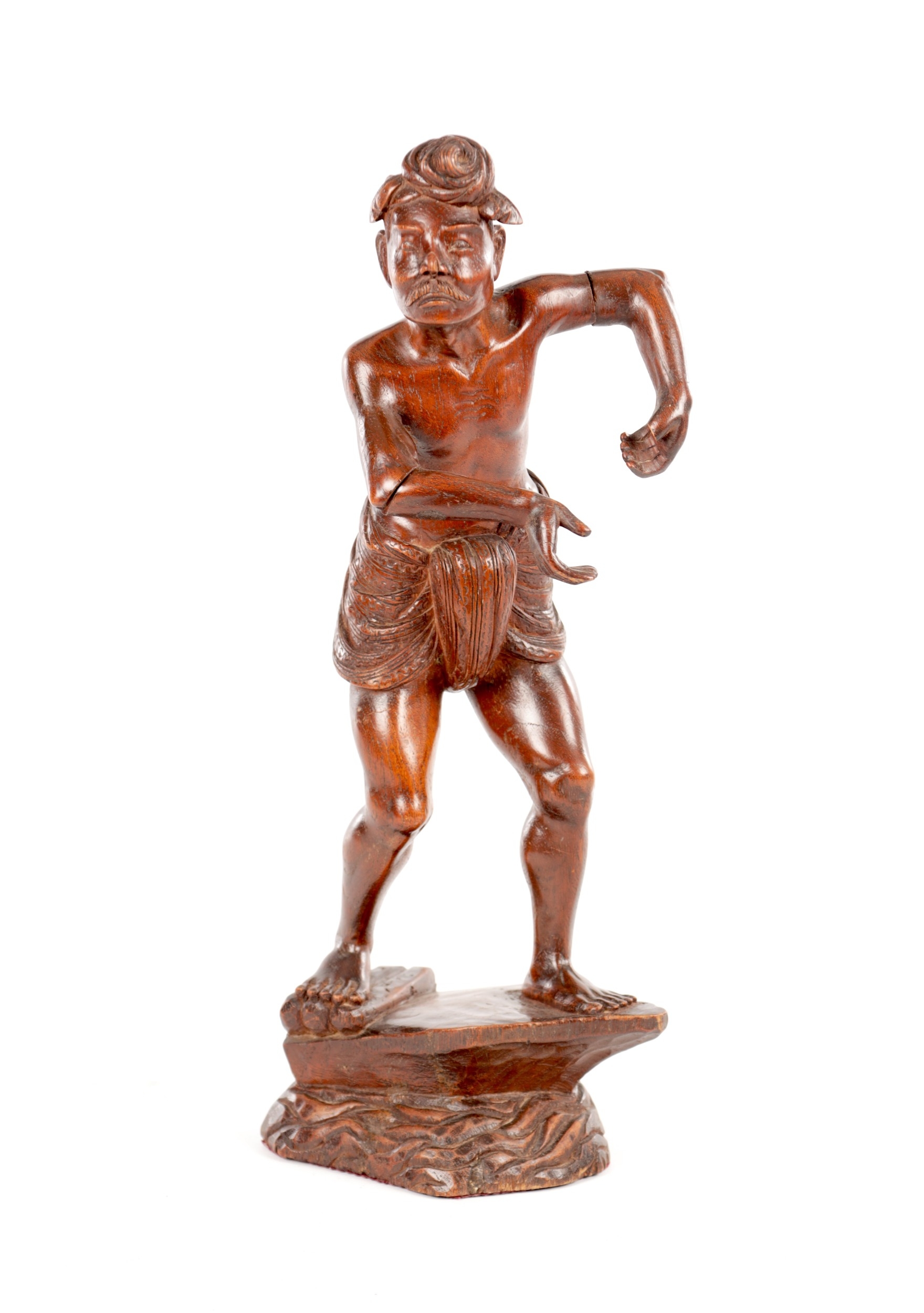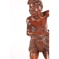 A 19TH CENTURY BURMESE CARVED HARDWOOD STATUE OF A FARMER mounted on a naturalistic carved base (46cm high )