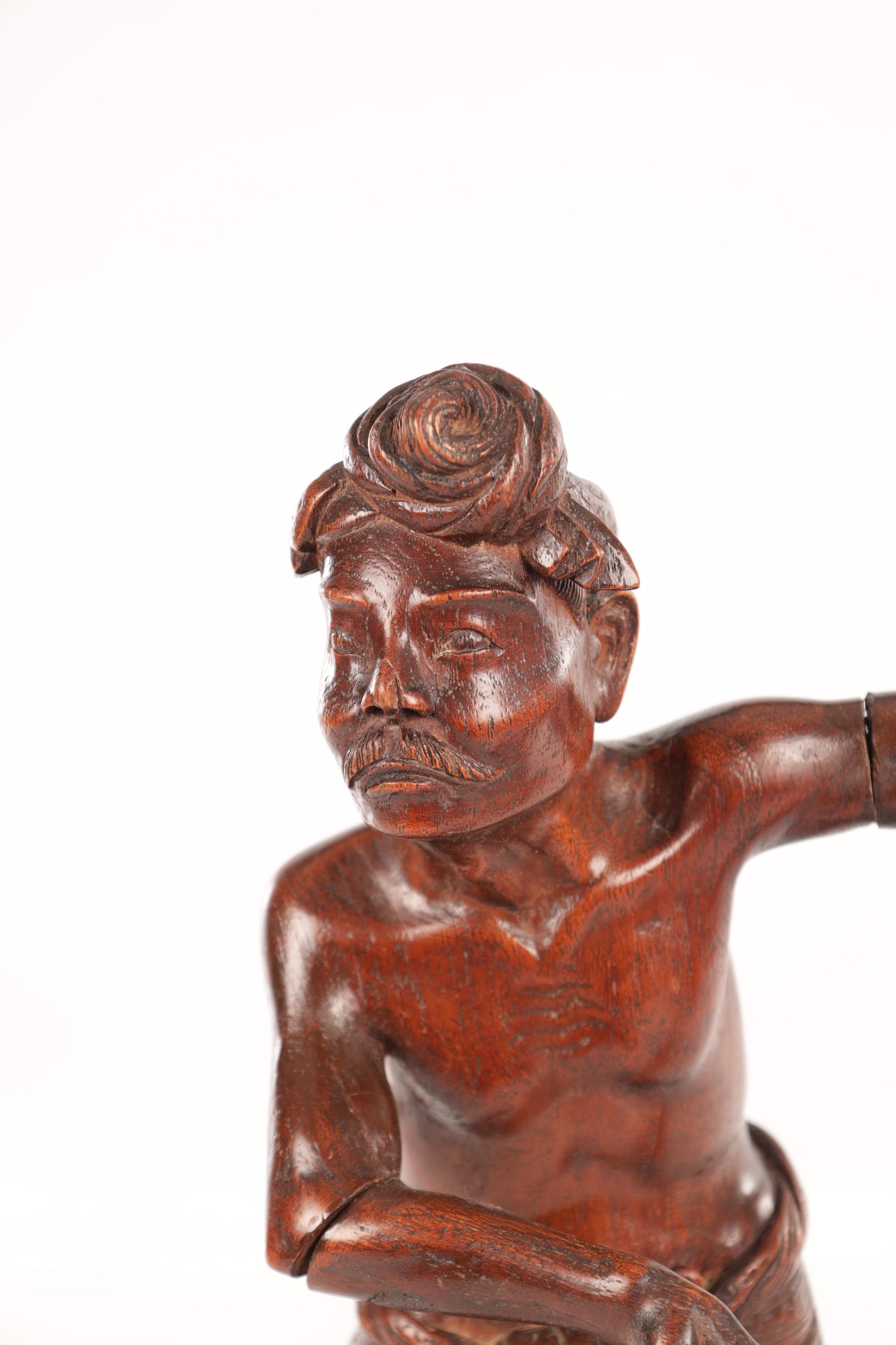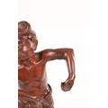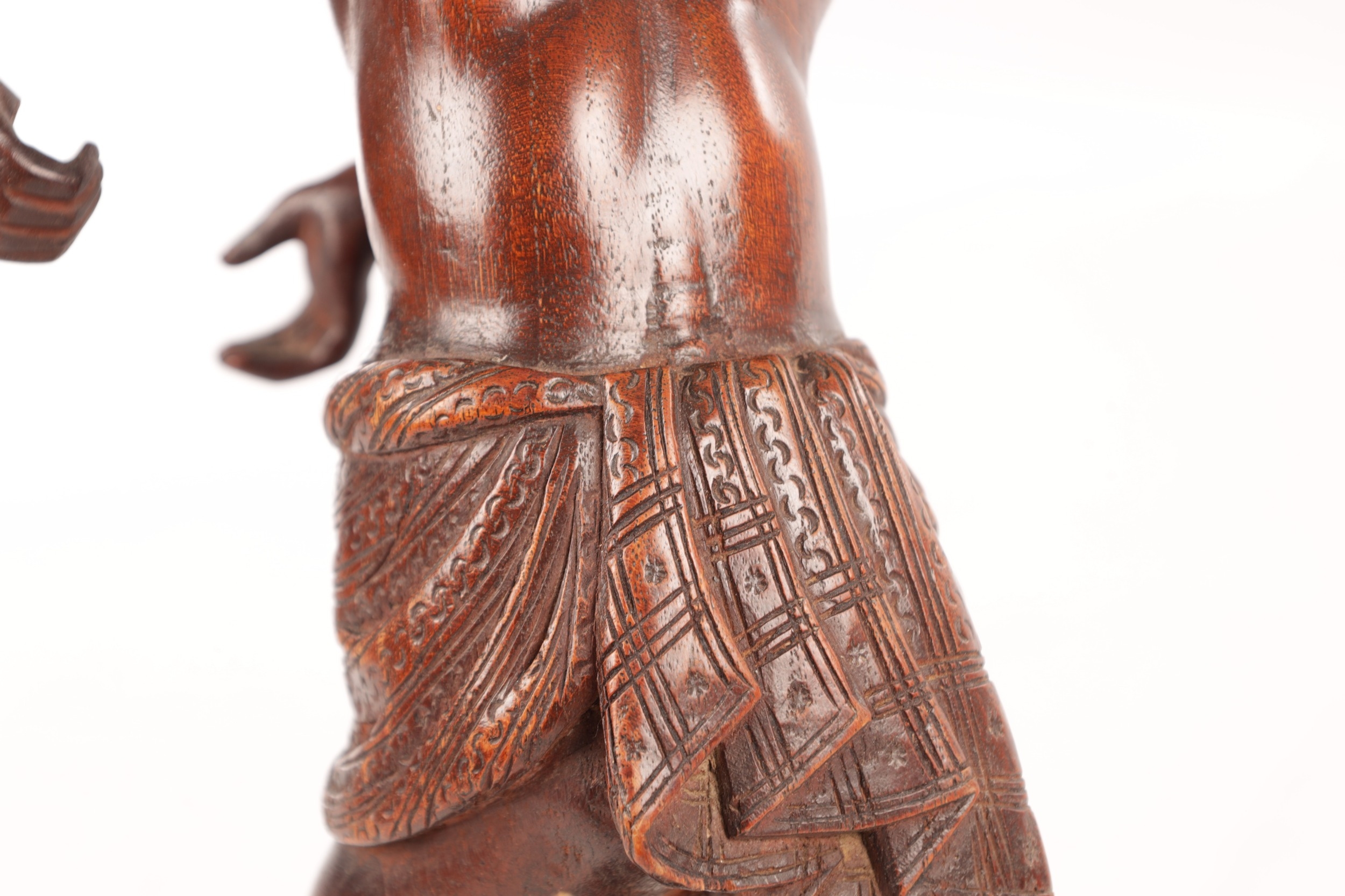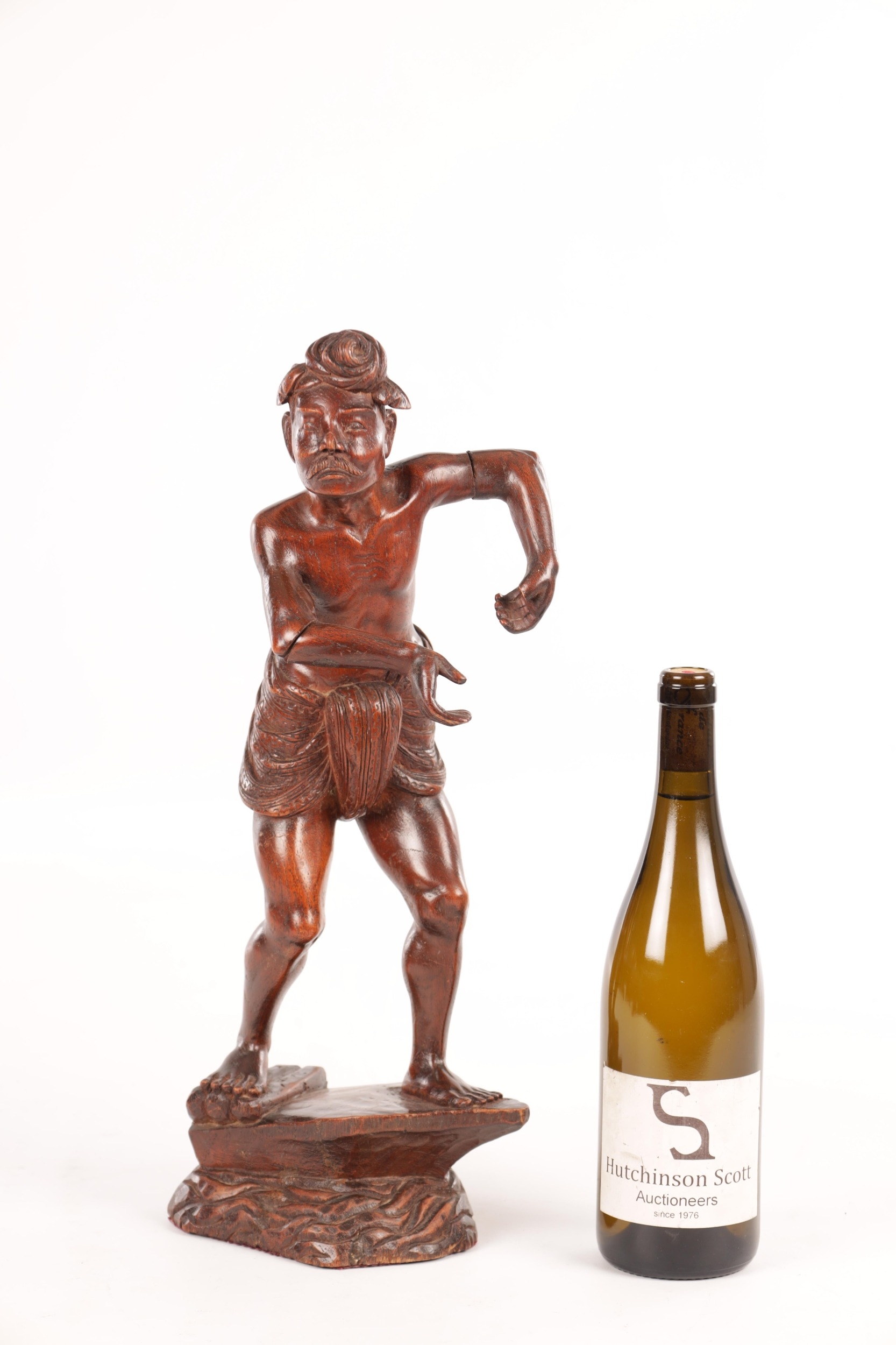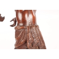 A 19TH CENTURY BURMESE CARVED HARDWOOD STATUE OF A FARMER mounted on a naturalistic carved base (46cm high )