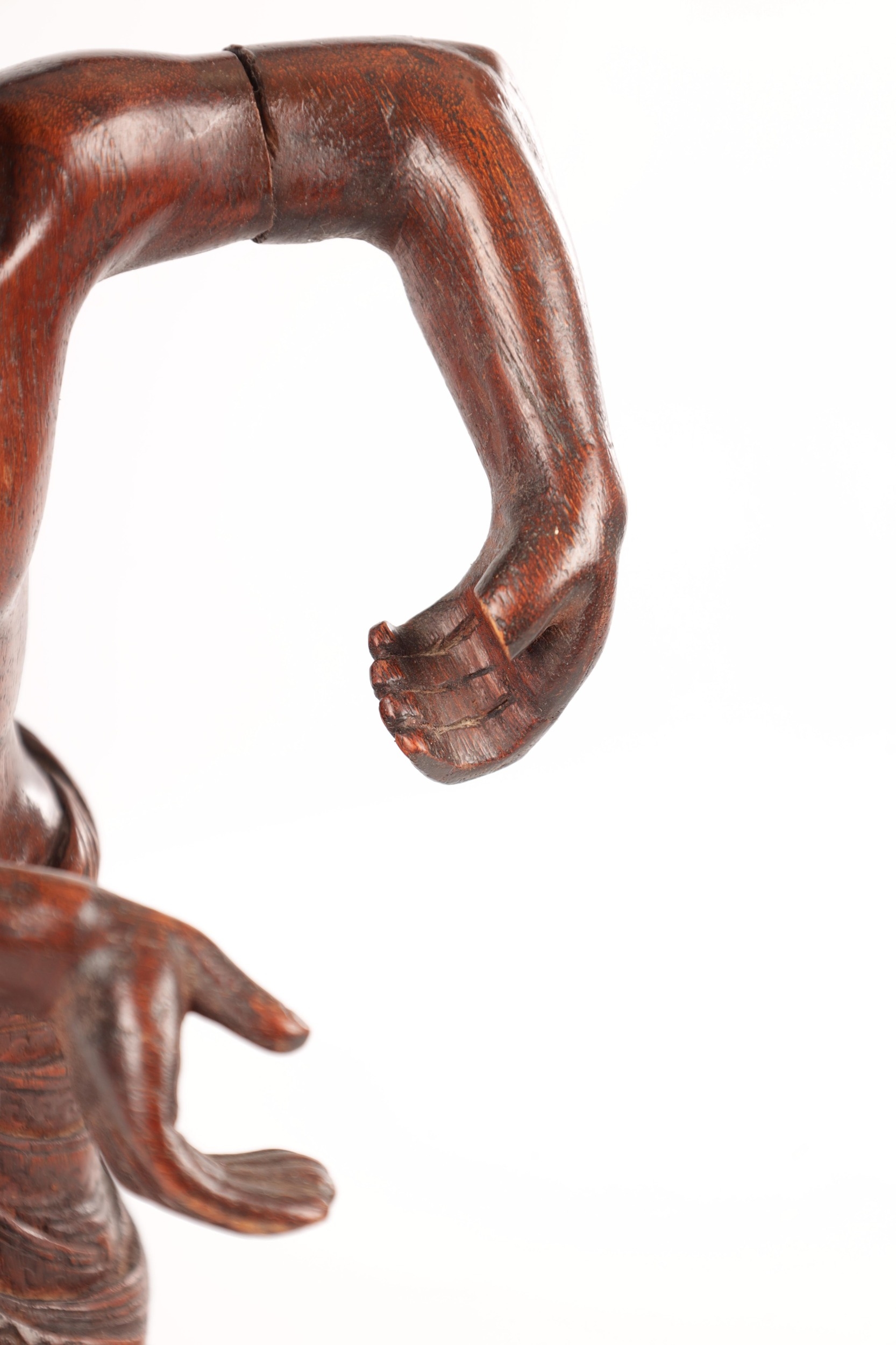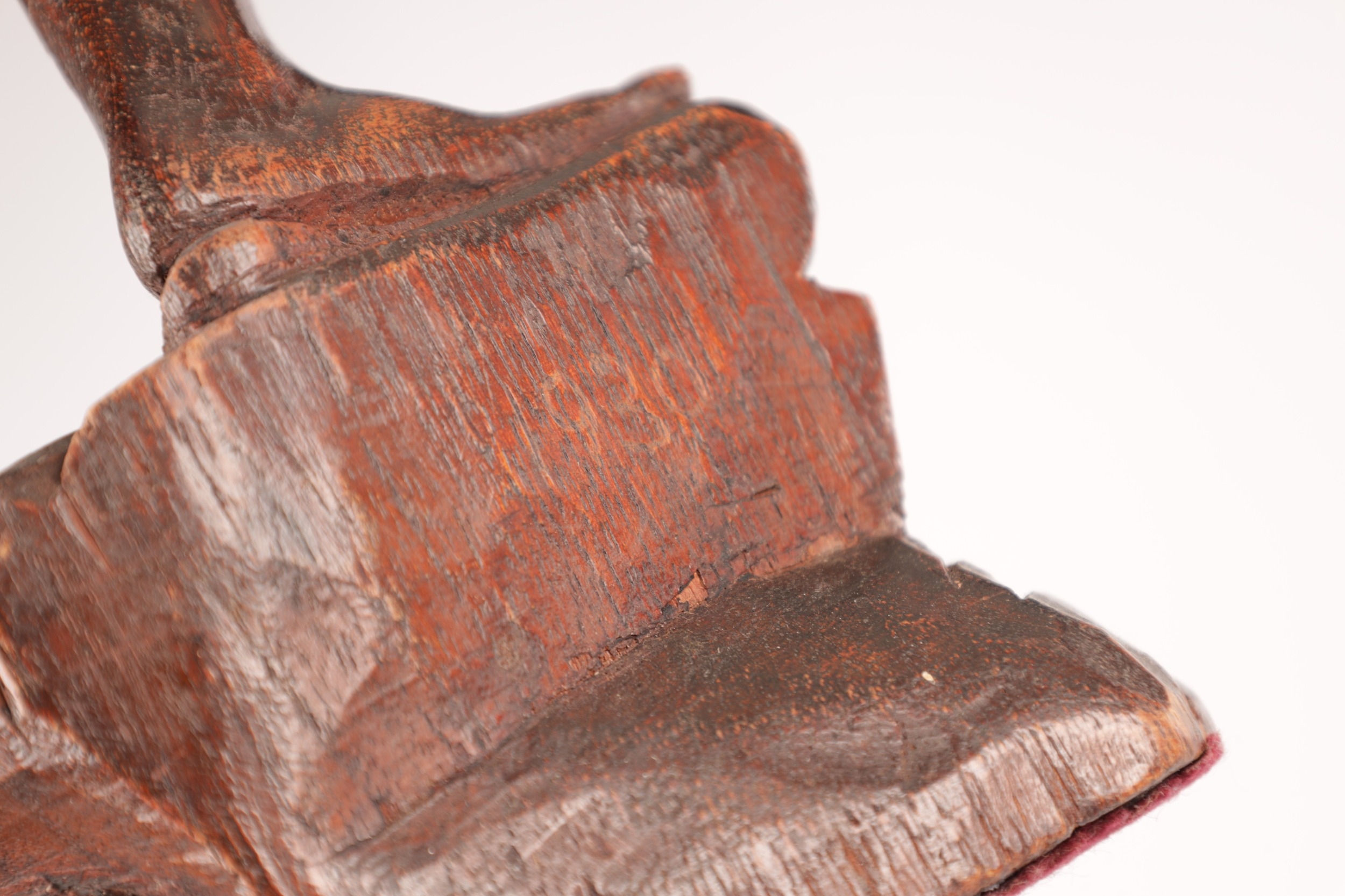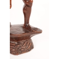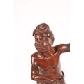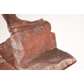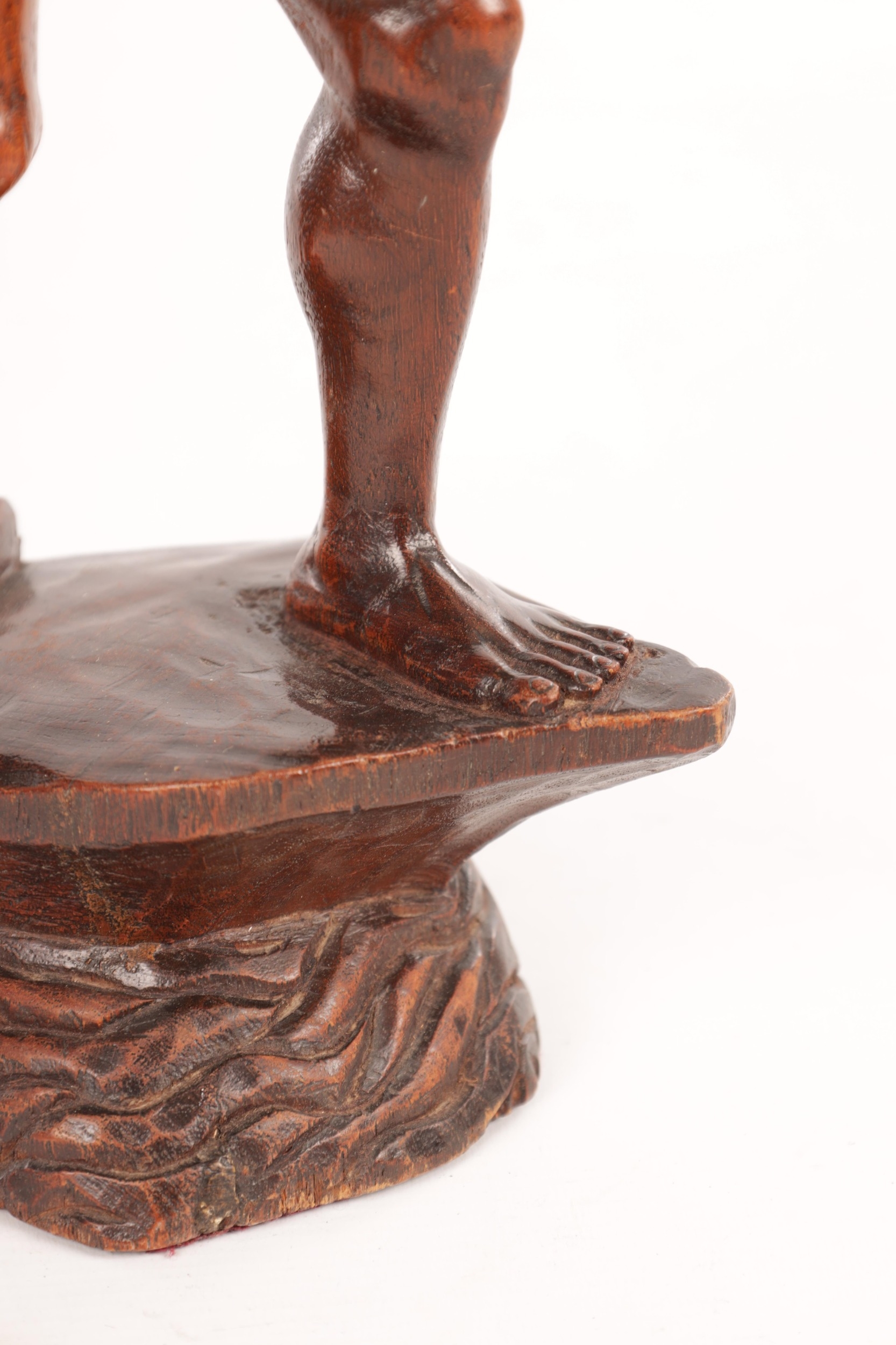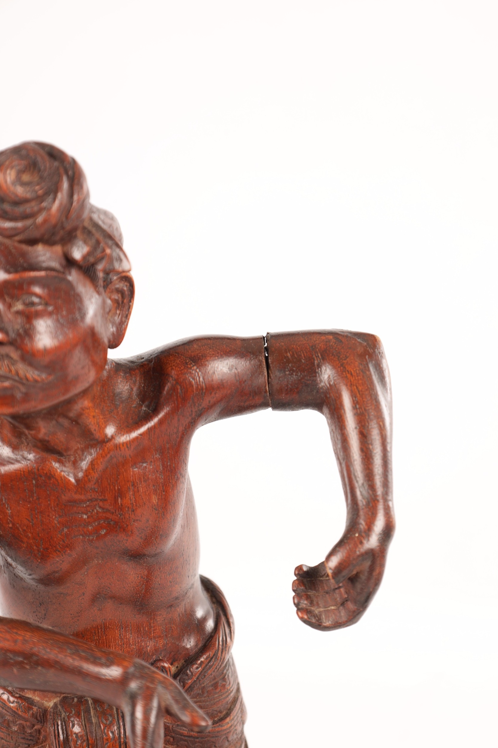 A 19TH CENTURY BURMESE CARVED HARDWOOD STATUE OF A FARMER mounted on a naturalistic carved base (46cm high )