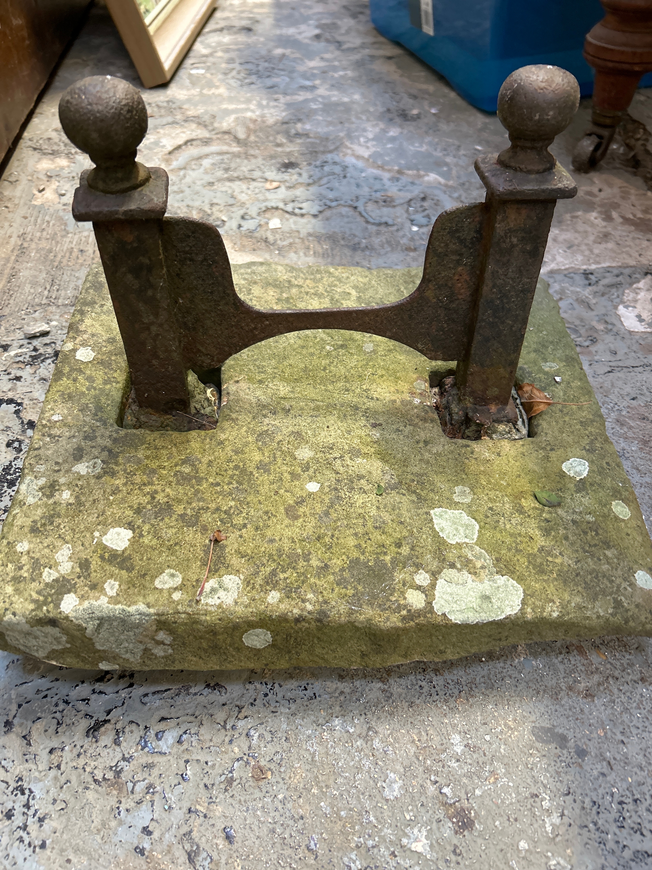 A mid Victorian cast iron boot scraper on a stone base. Matches those in the local village of Thorney when the village was rebuilt by the Duke of Bedford in the mid 19th Century.