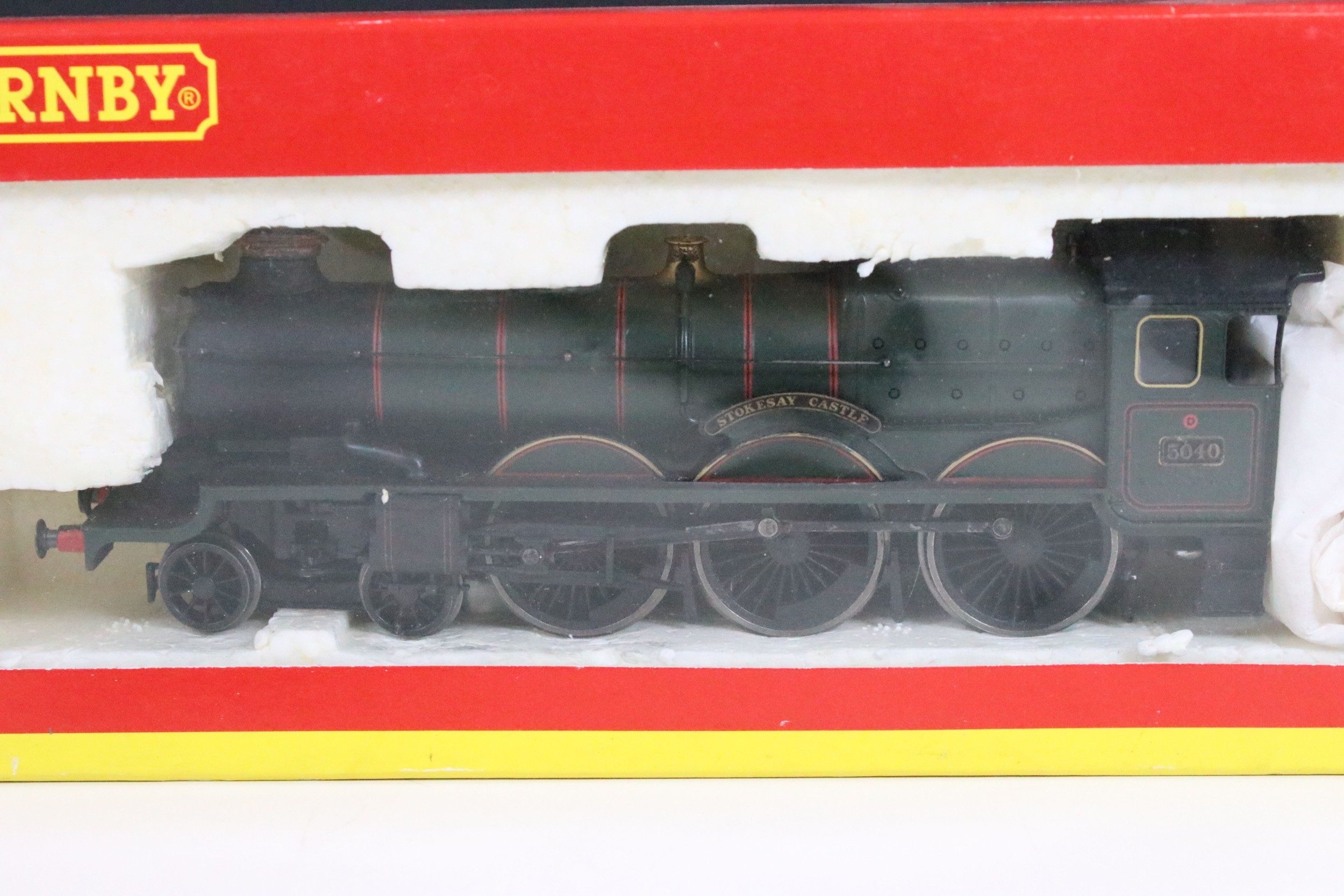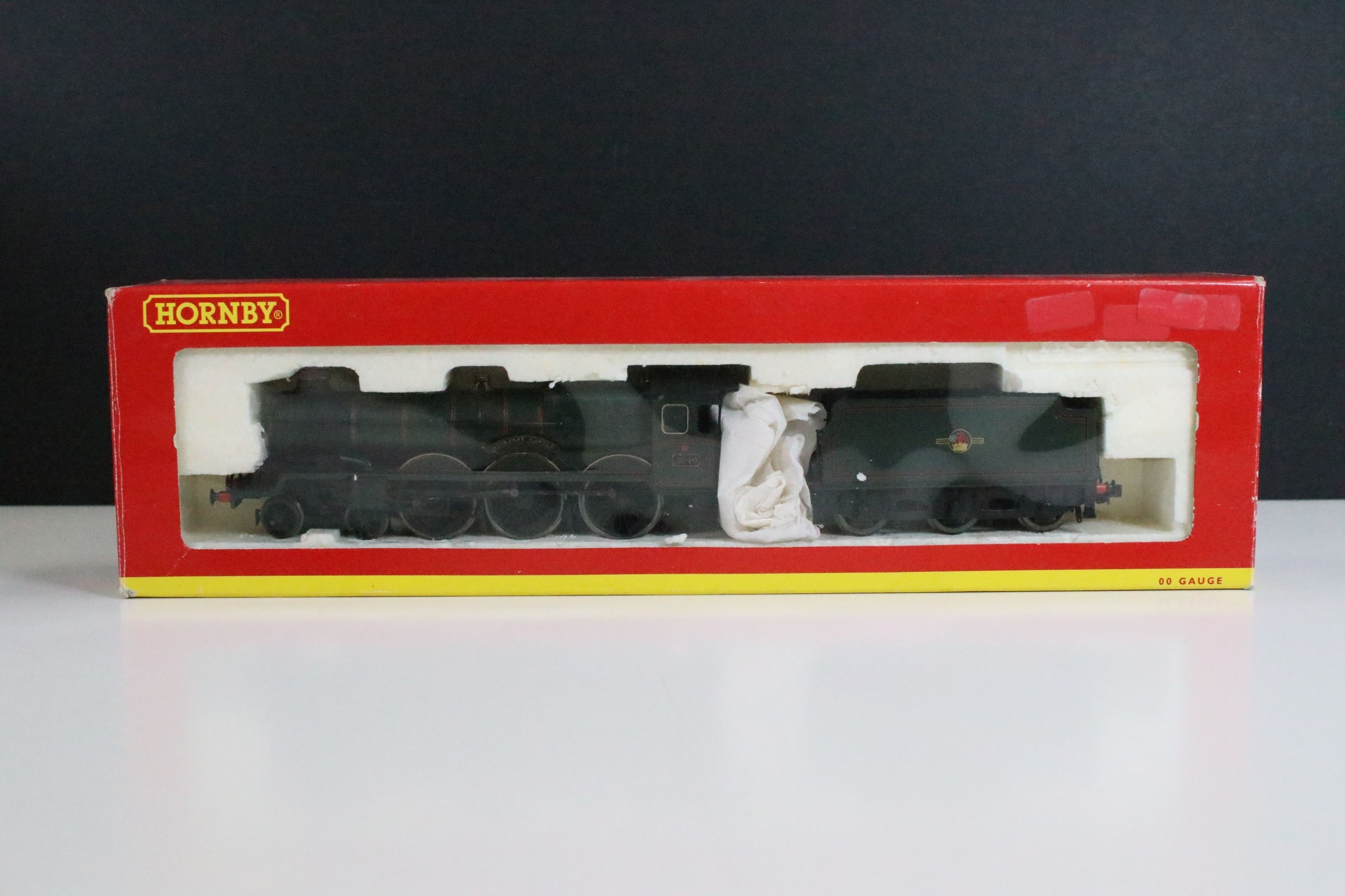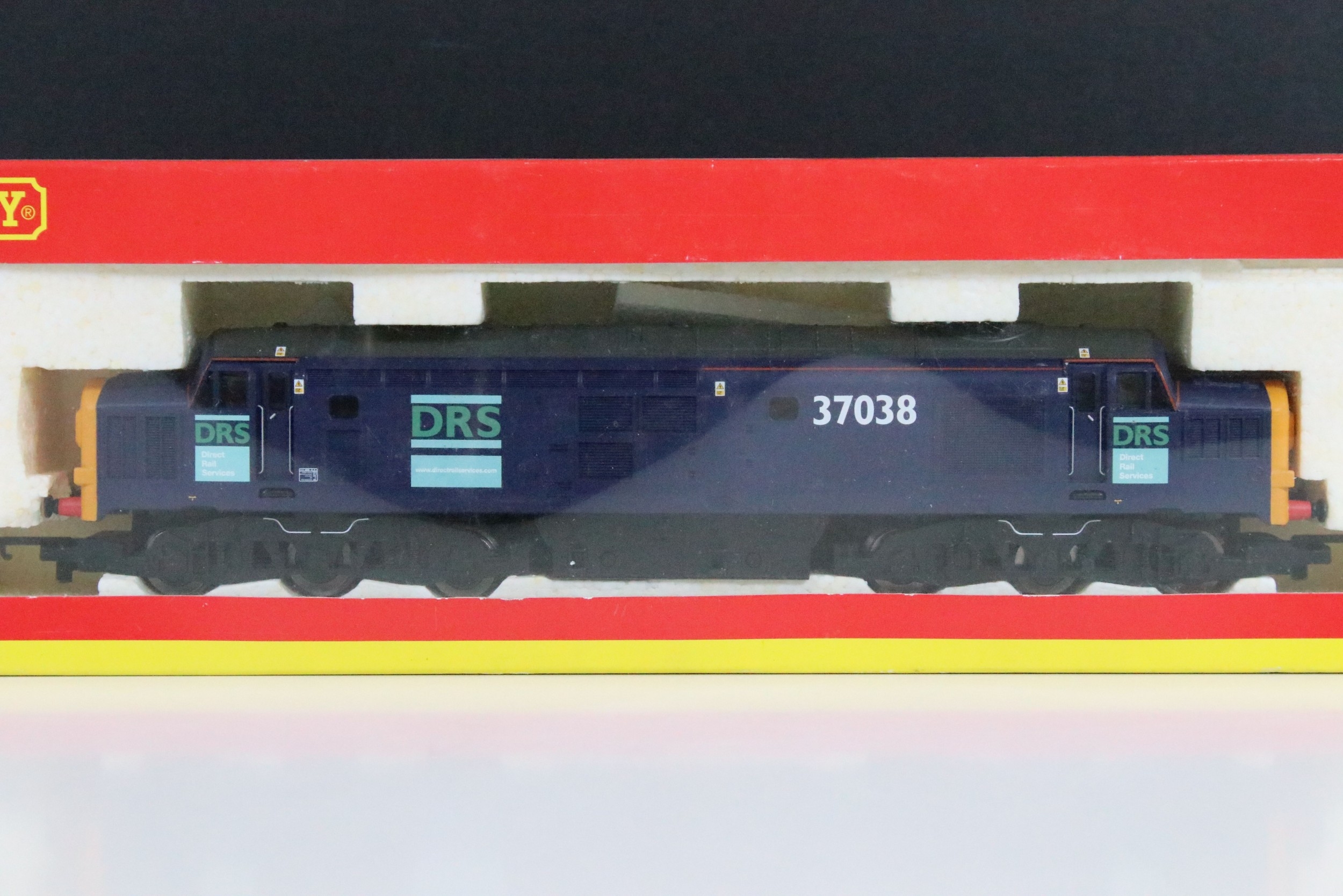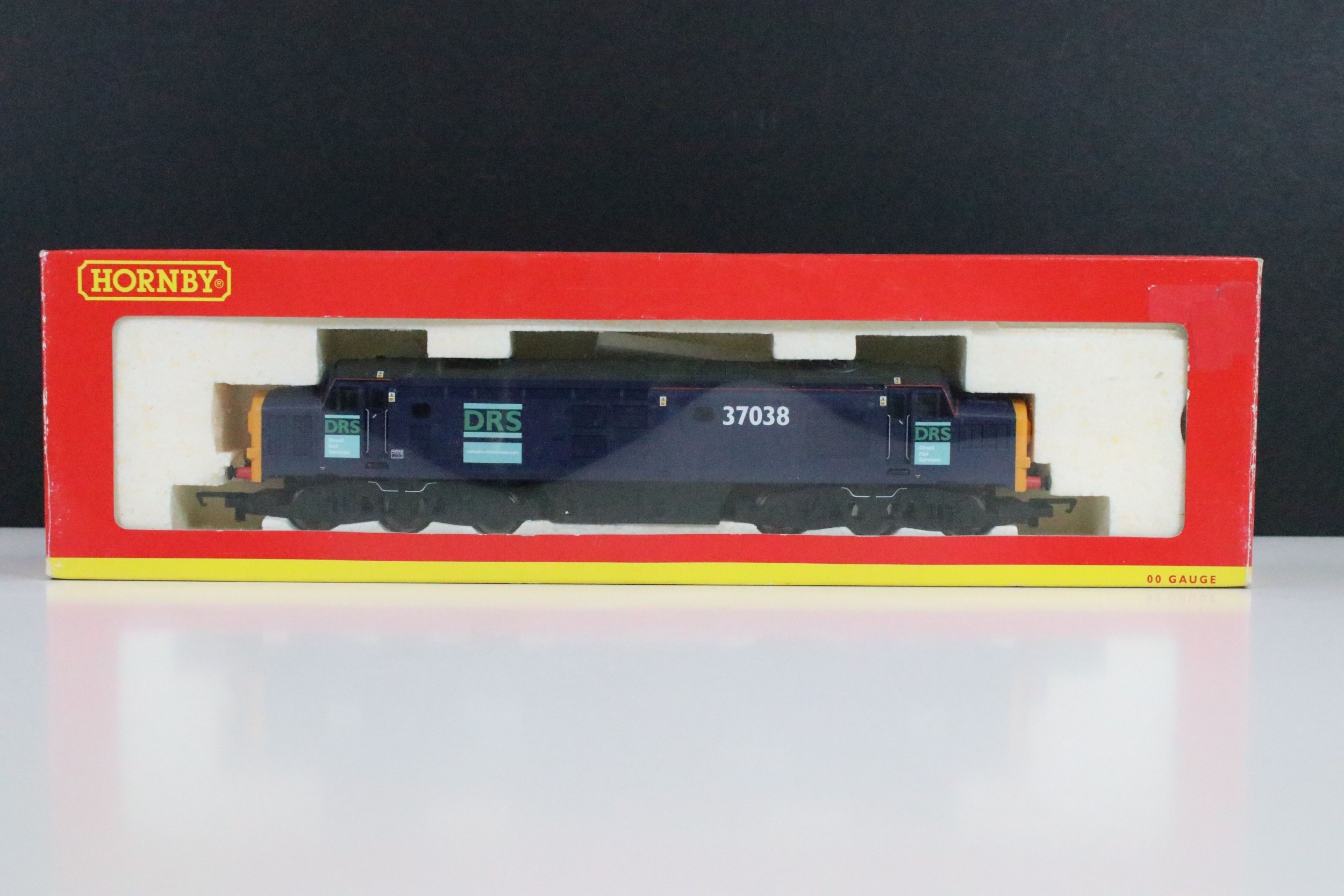 Four boxed Hornby OO gauge locomotives to include R2464 GWR 2-8-0 Class 2800 Locomotive 2847, R2280 BR 4-6-0 Castle Class Locomotive, R2148 S&DJR 0-6-0 Class 5P-4C Fowler Locomotive 60 and R2574 DRS Co-Co Diesel Electric Class 37 Locomotive 37038