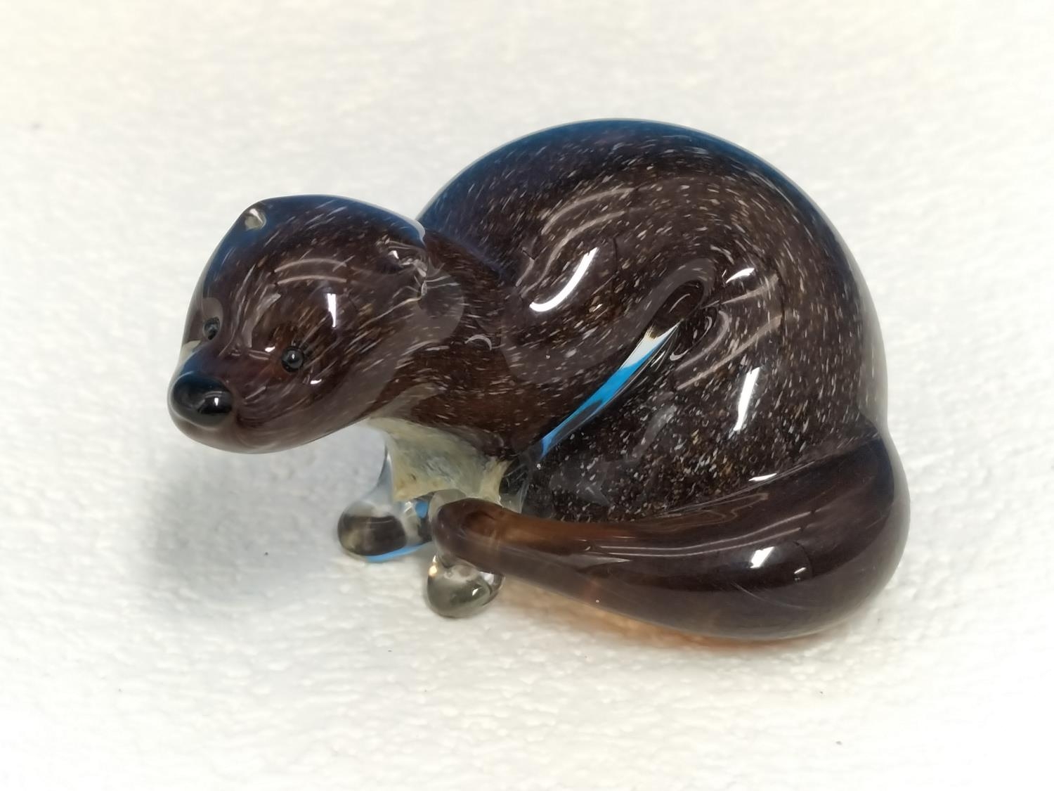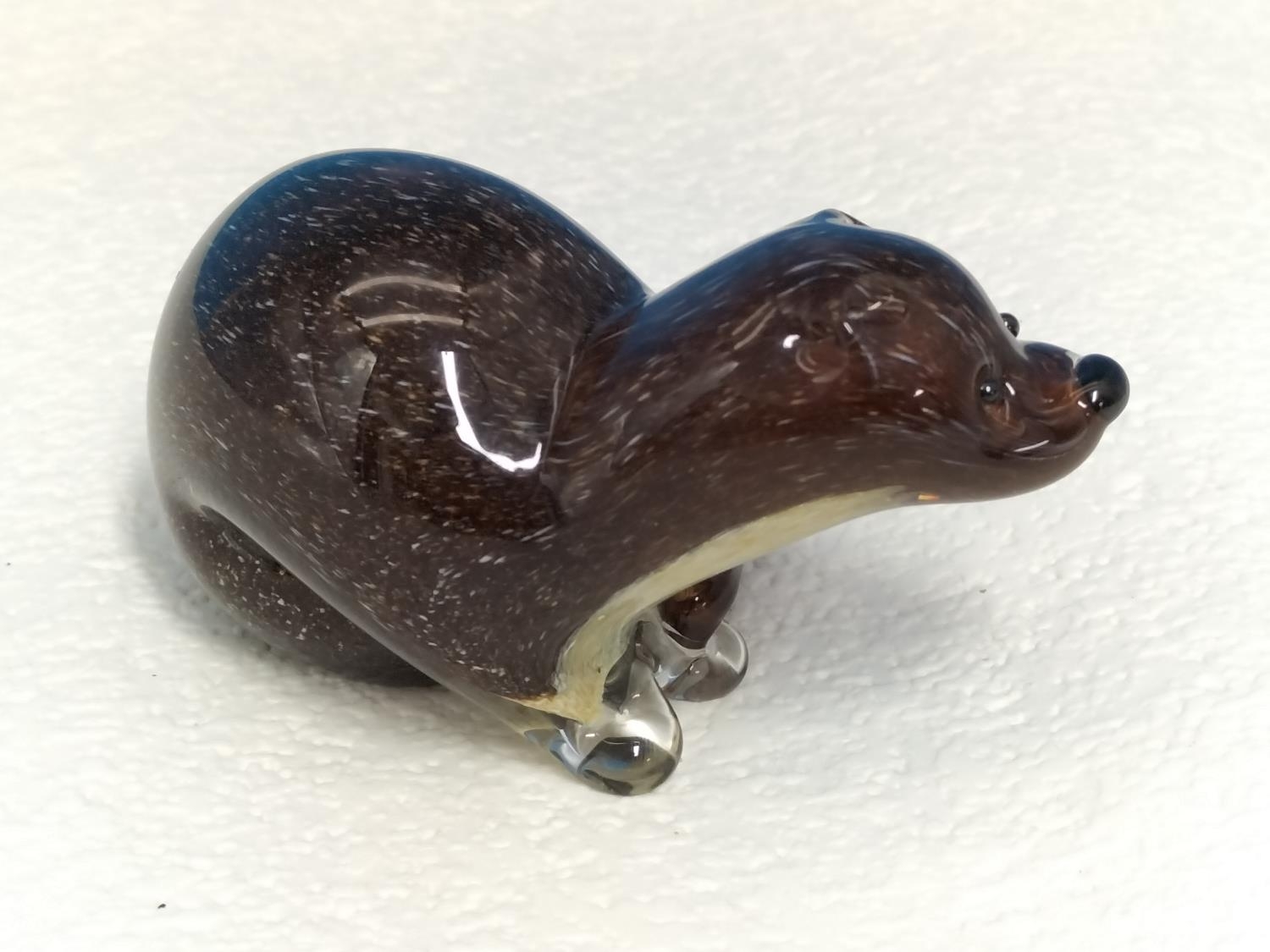 Langham Glass 'Otter' Paperweight. 4cm High, 7cm Long.