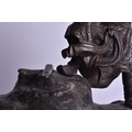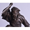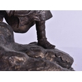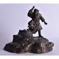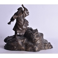 A 19TH CENTURY JAPANESE BRONZE OKIMONO OF A MALE modelled upon a rocky outcrop. 21 cm x 18 cm.