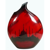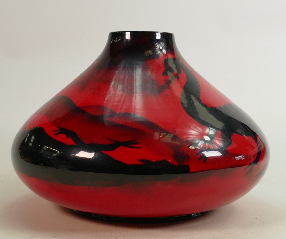 Large squat Peggy Davies Ruby Fusion limited edition Dragon vase: Height 19cm.