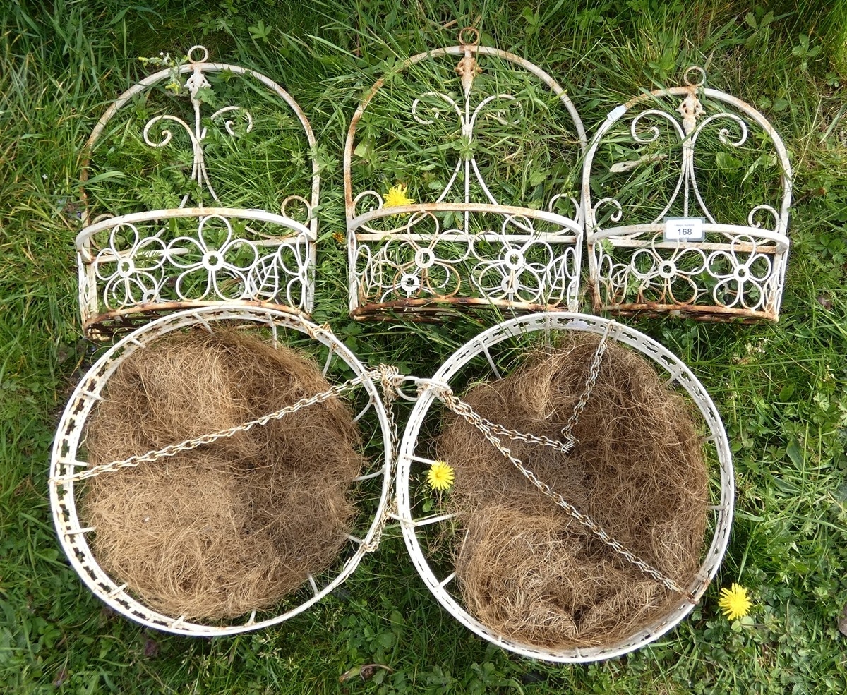 3 Graduated Metal Wall Pockets together with 2 Hanging Baskets