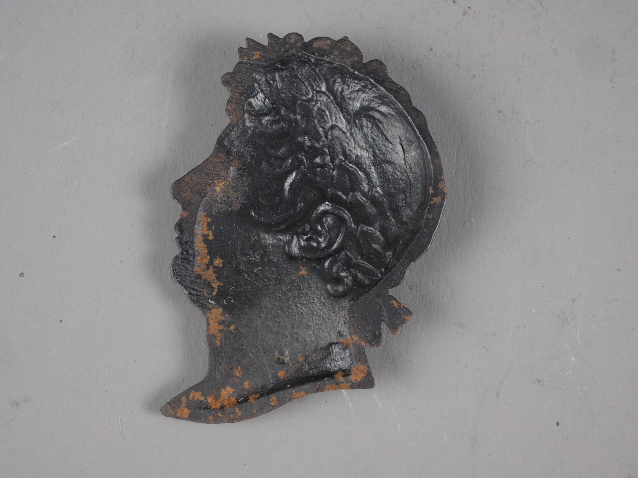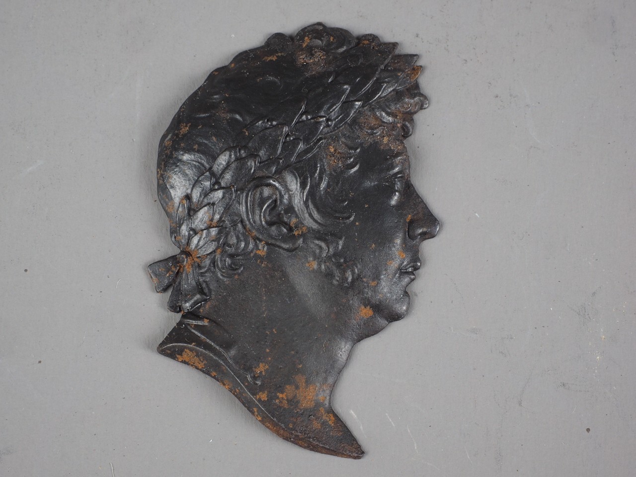 An early 19th century oil burnished cast iron cameo of George IV, 2" high