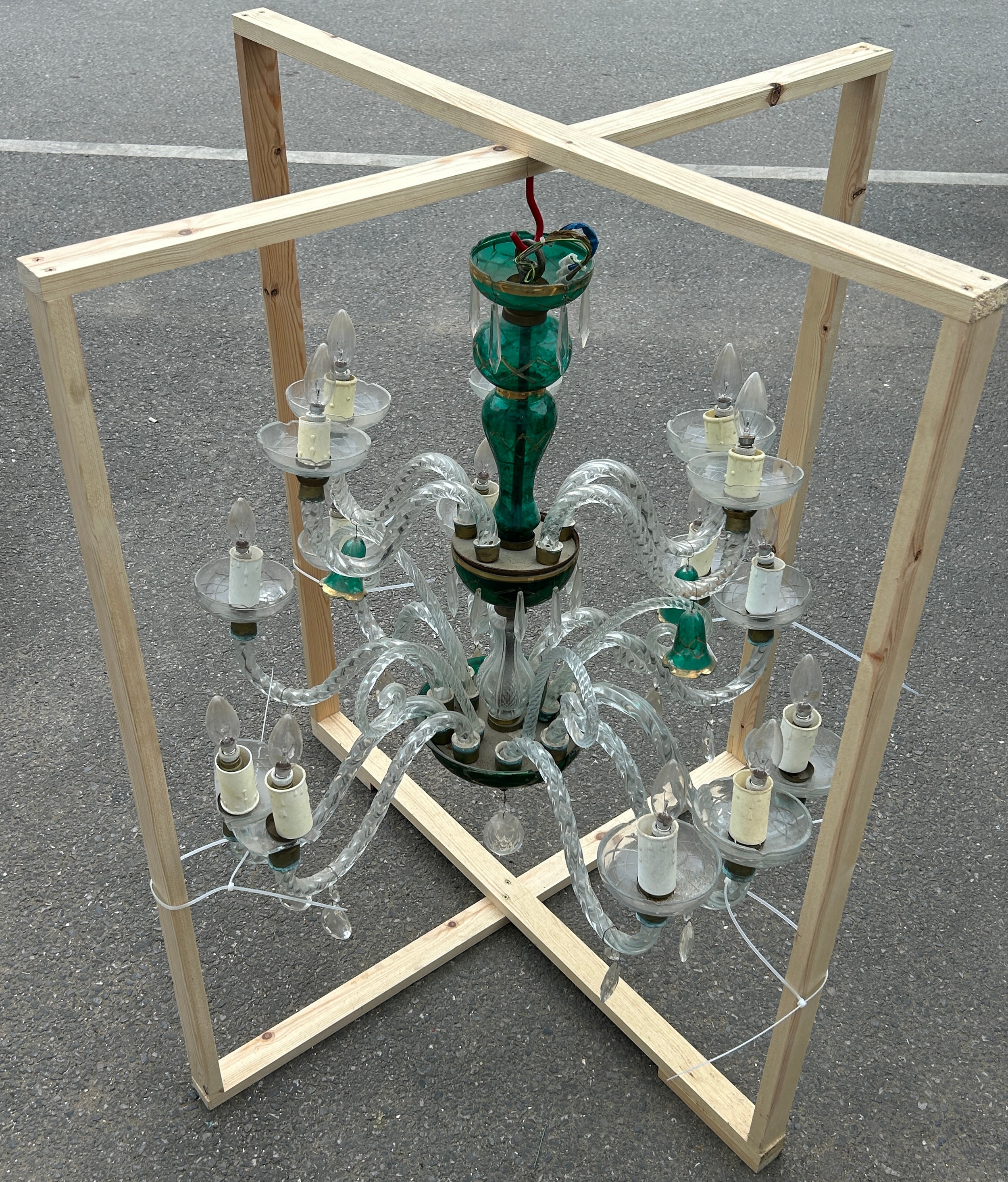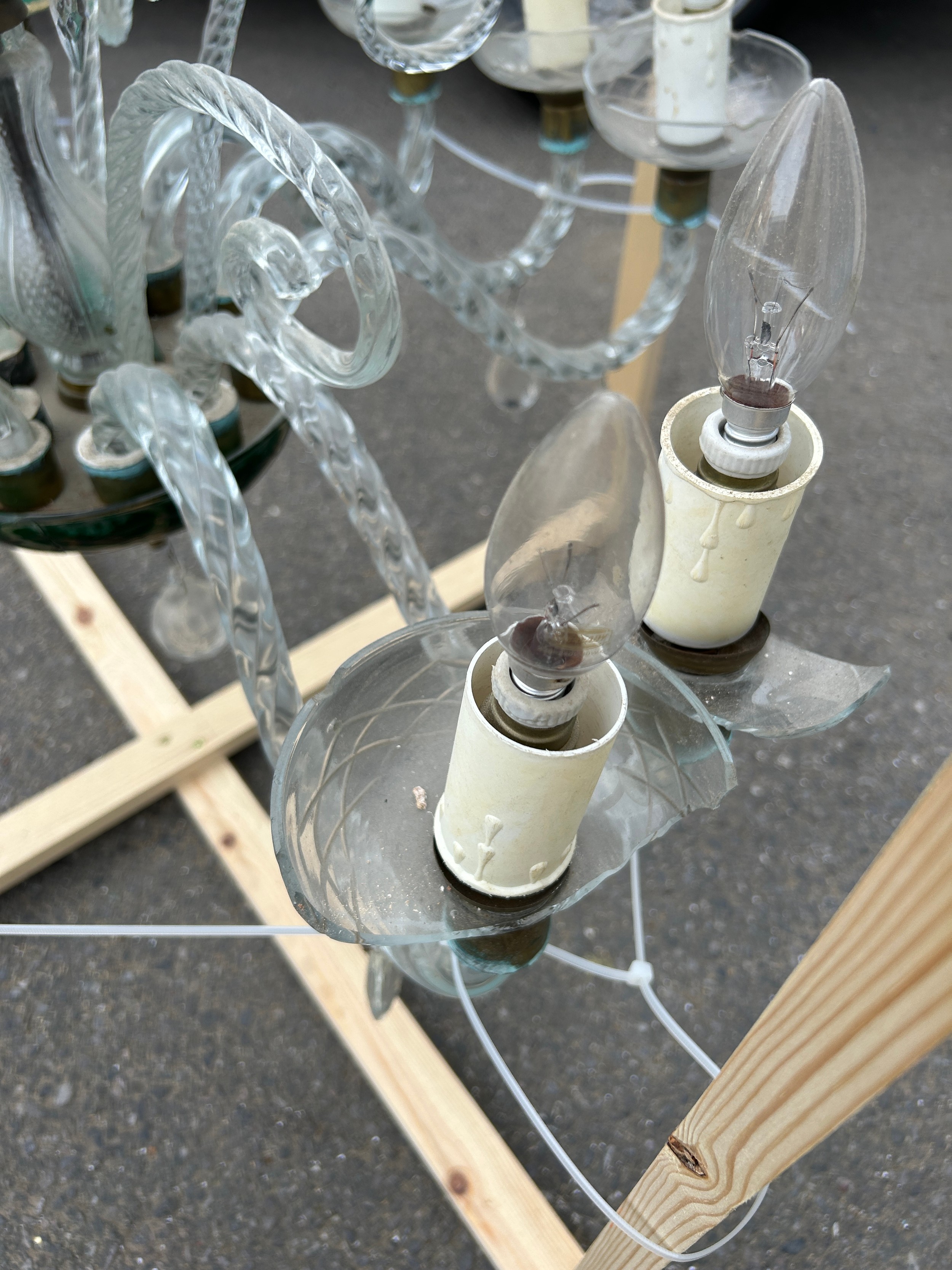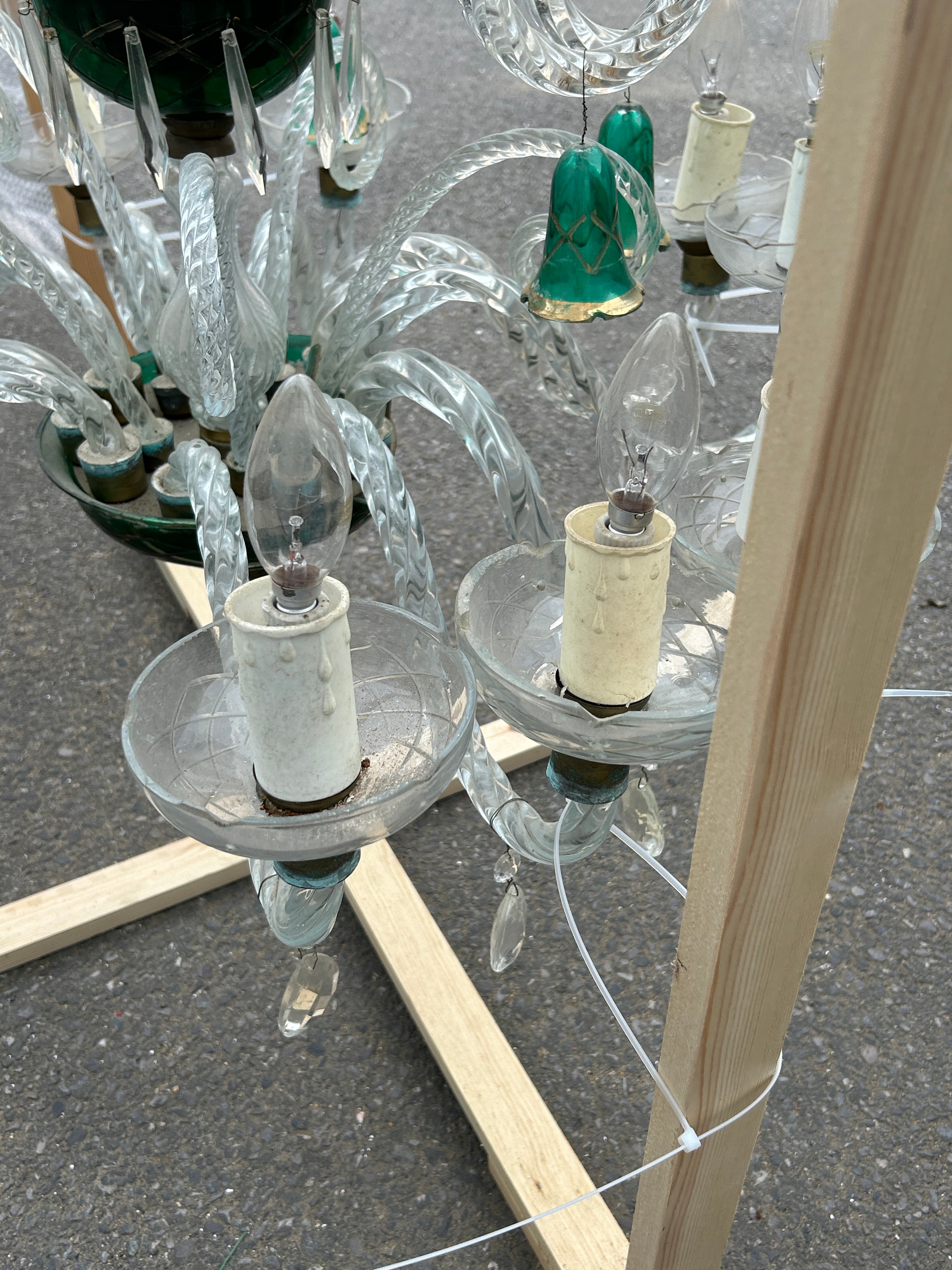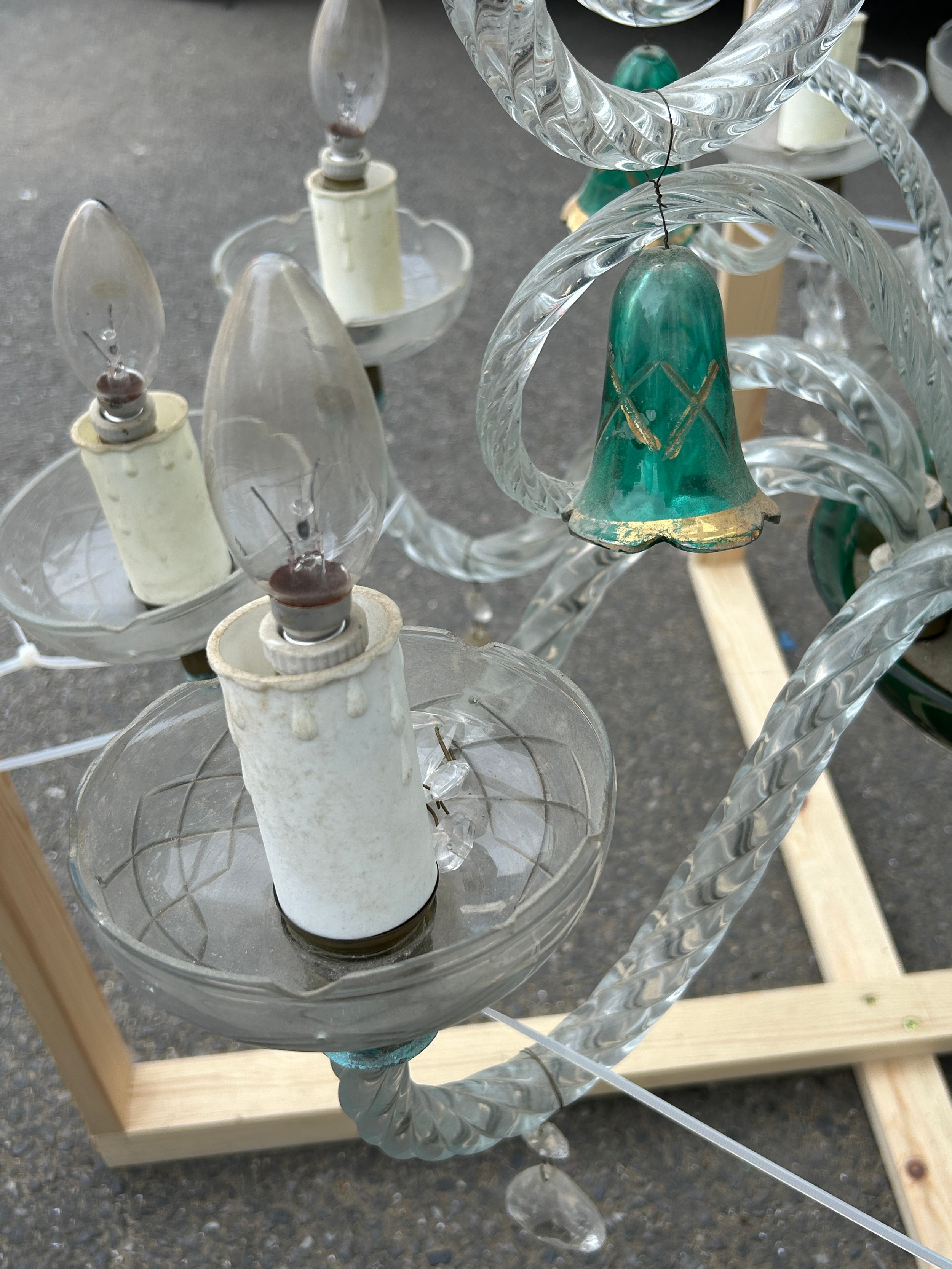 A BOHEMIAN GREEN CRYSTAL AND MURANO GLASS TWELVE ARM CHANDELIER,