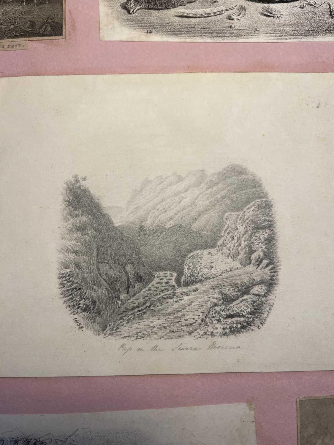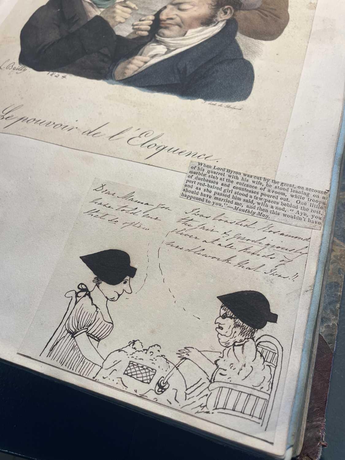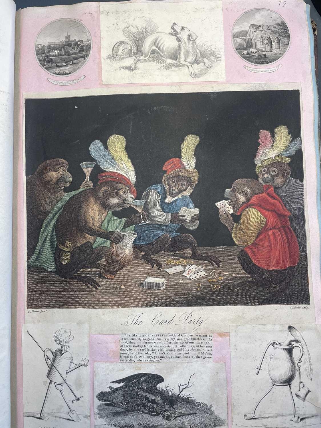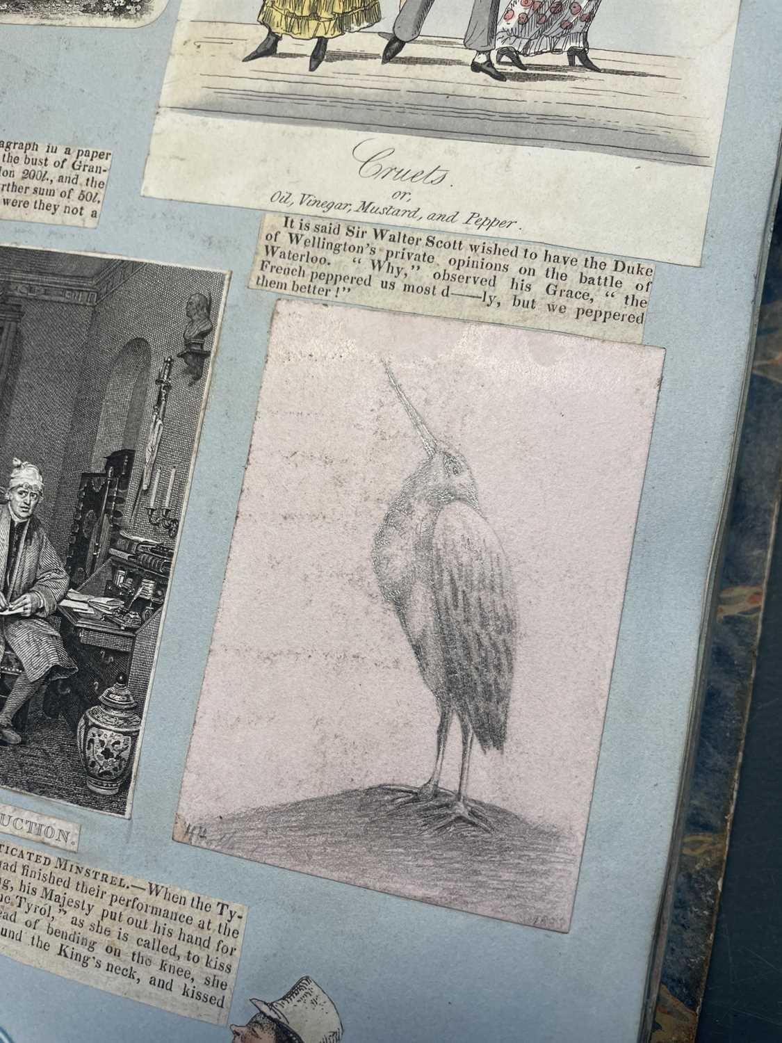 A Victorian Scrap Album Contemporary half maroon leather with marbled boards, over a hundred pages profuse in engravings, cuttings, chromo scraps, greetings cards, original artwork; showing portraits, cityscapes, boxing, cricket, domestic scenes, topography etc, ink owner signature to front pastedown, a great collection in a fine condition, [c.1896].