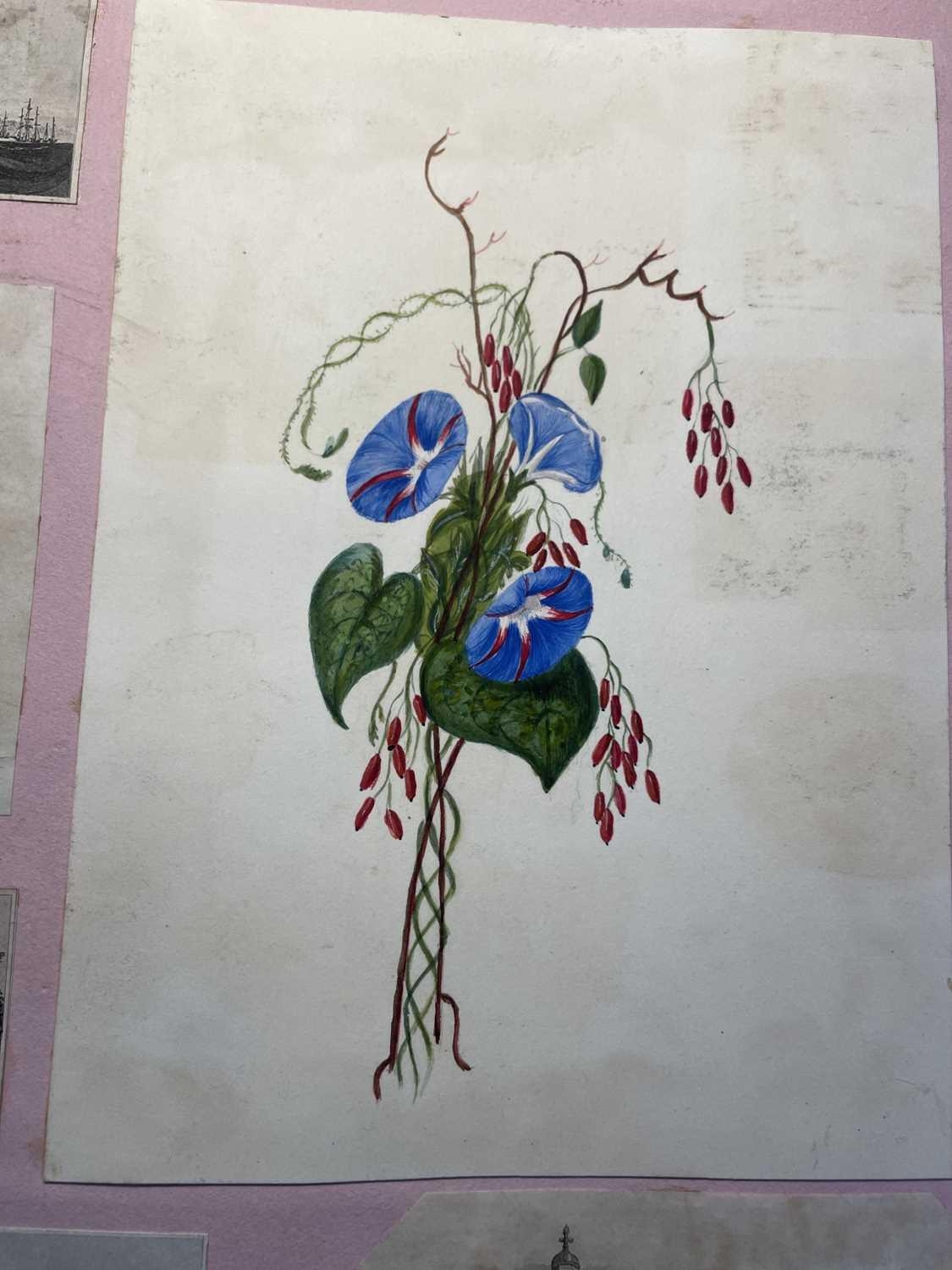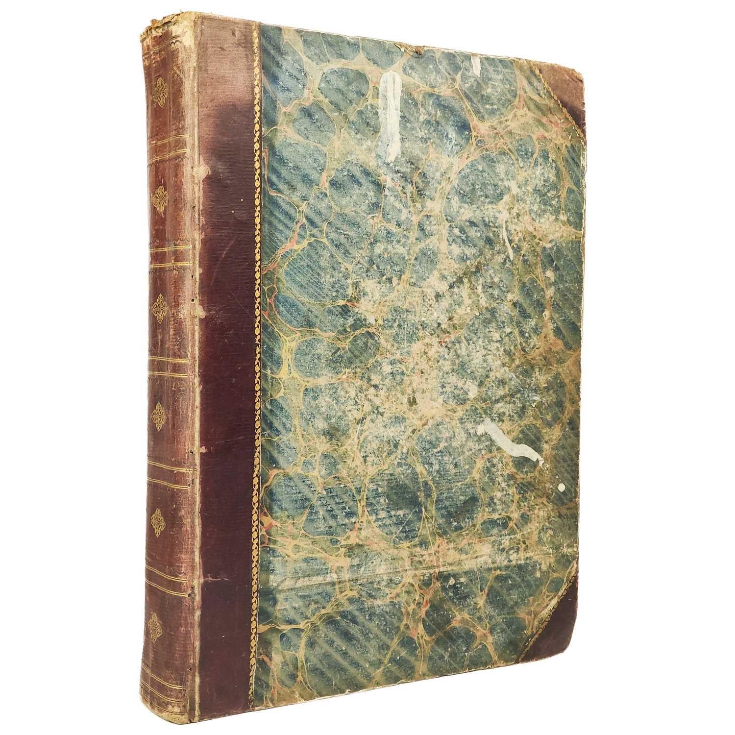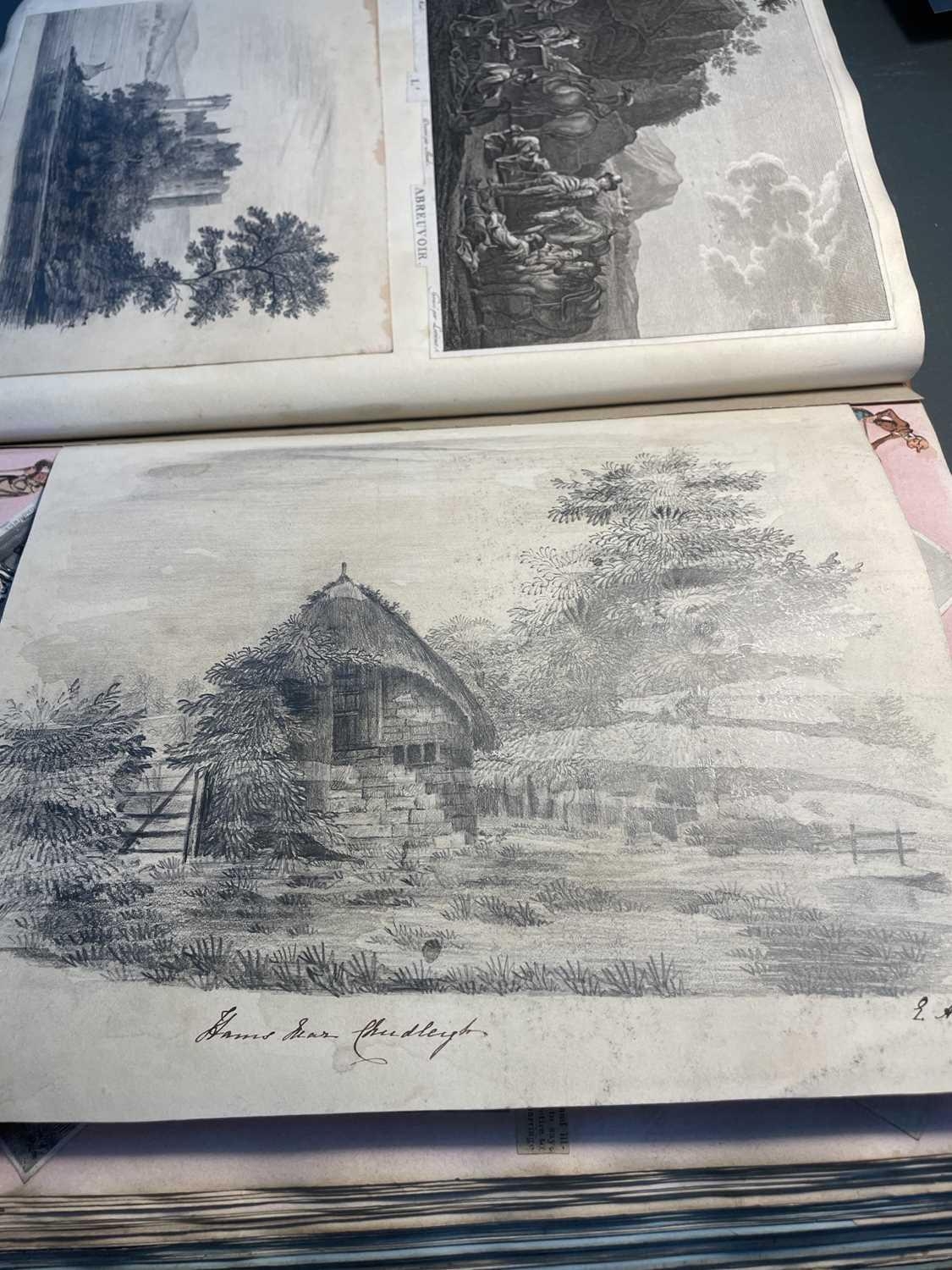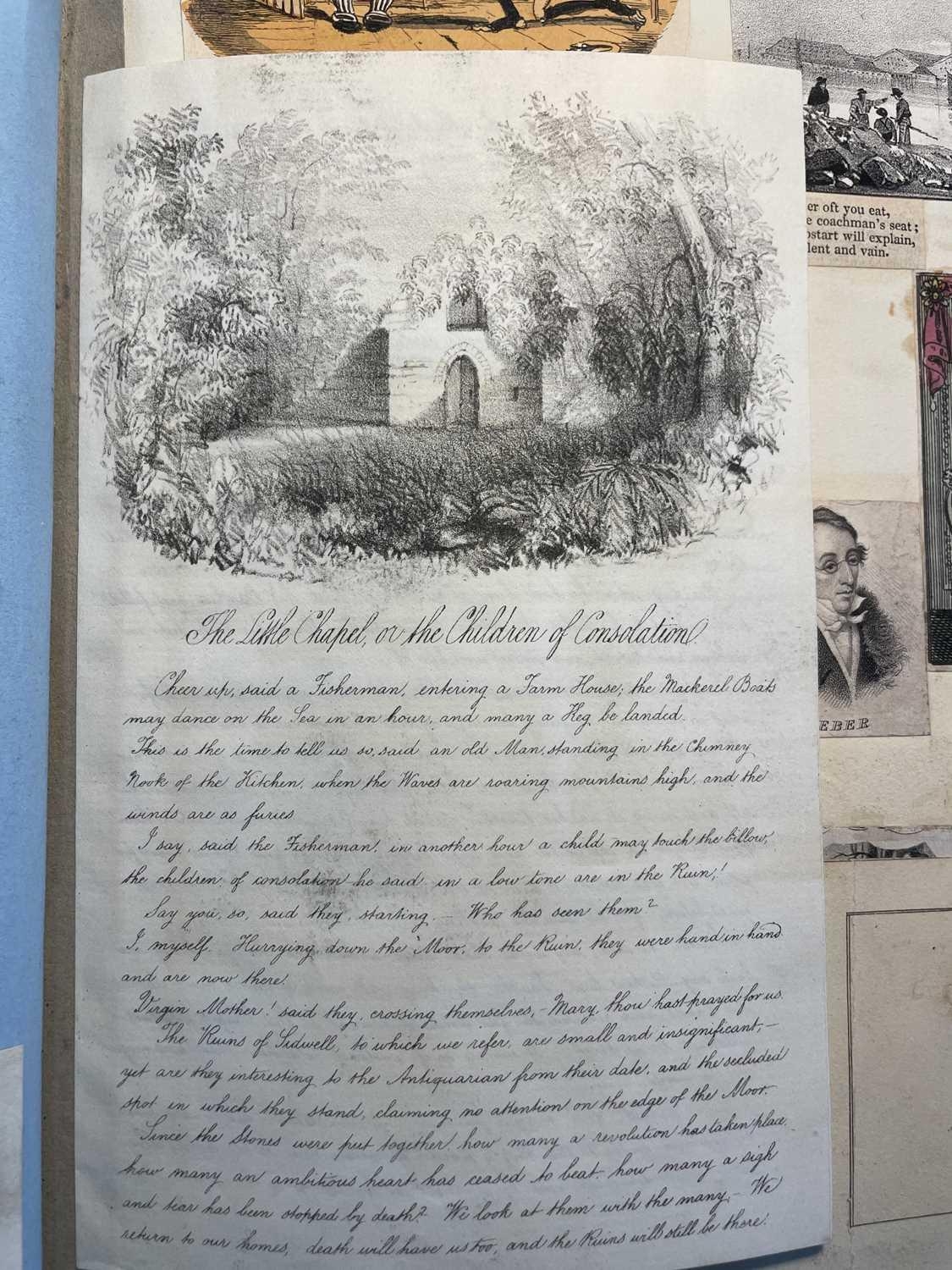 A Victorian Scrap Album Contemporary half maroon leather with marbled boards, over a hundred pages profuse in engravings, cuttings, chromo scraps, greetings cards, original artwork; showing portraits, cityscapes, boxing, cricket, domestic scenes, topography etc, ink owner signature to front pastedown, a great collection in a fine condition, [c.1896].