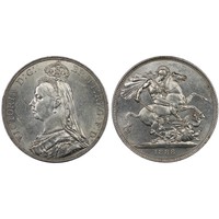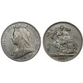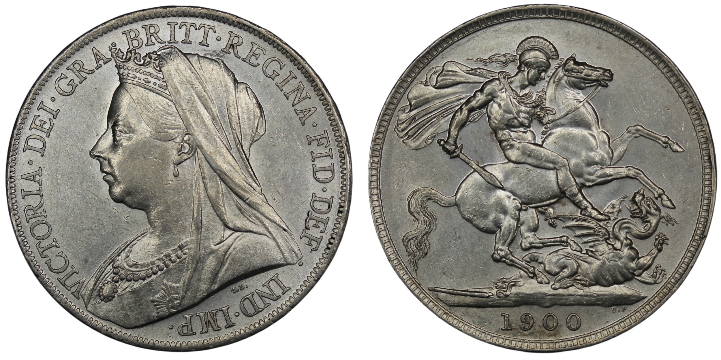 1900 Crown, Victoria, edge LXIII. Obv. Old veiled bust, Rev. St. George & Dragon. EF, cleaned. [ESC 318, Bull 2608, S.3937]