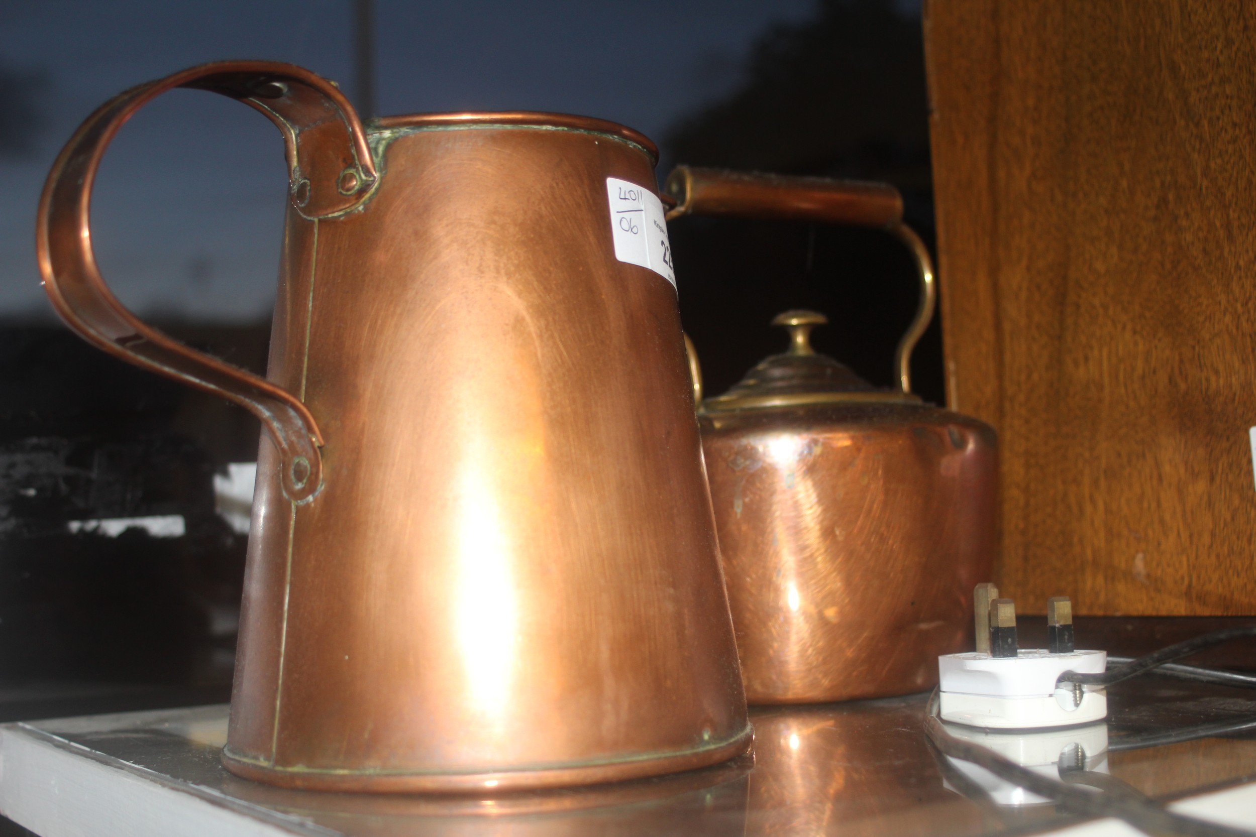 Two Items of Copperware: Kettle and Jug