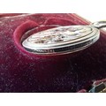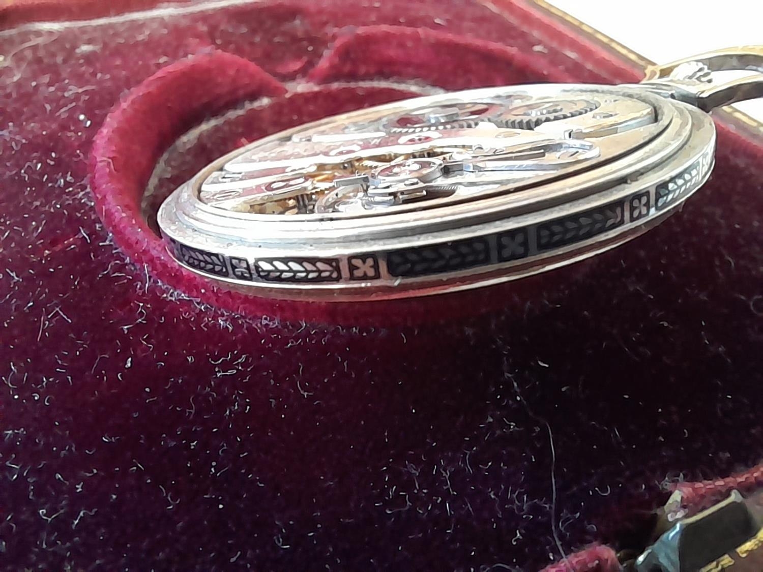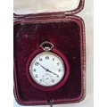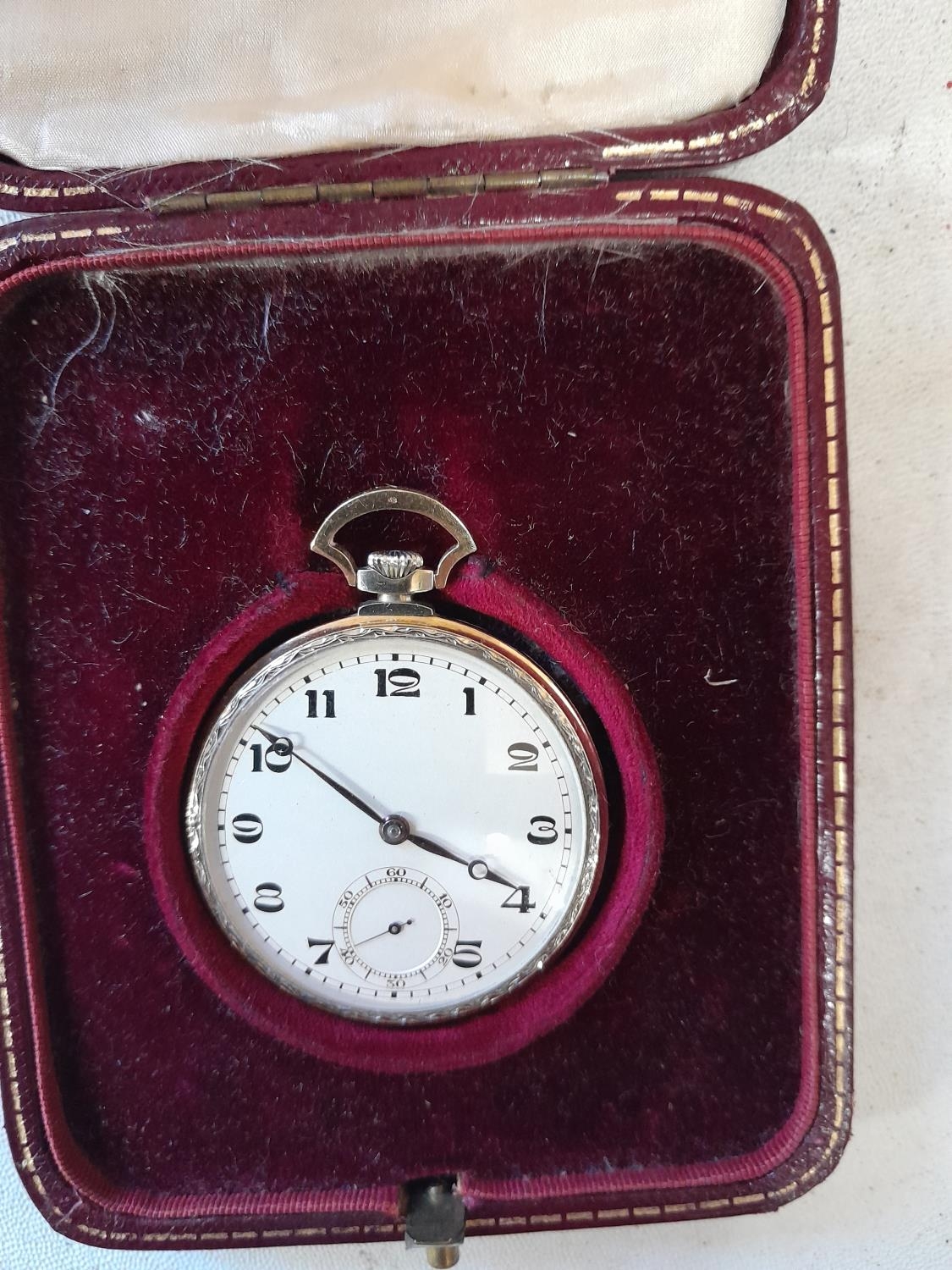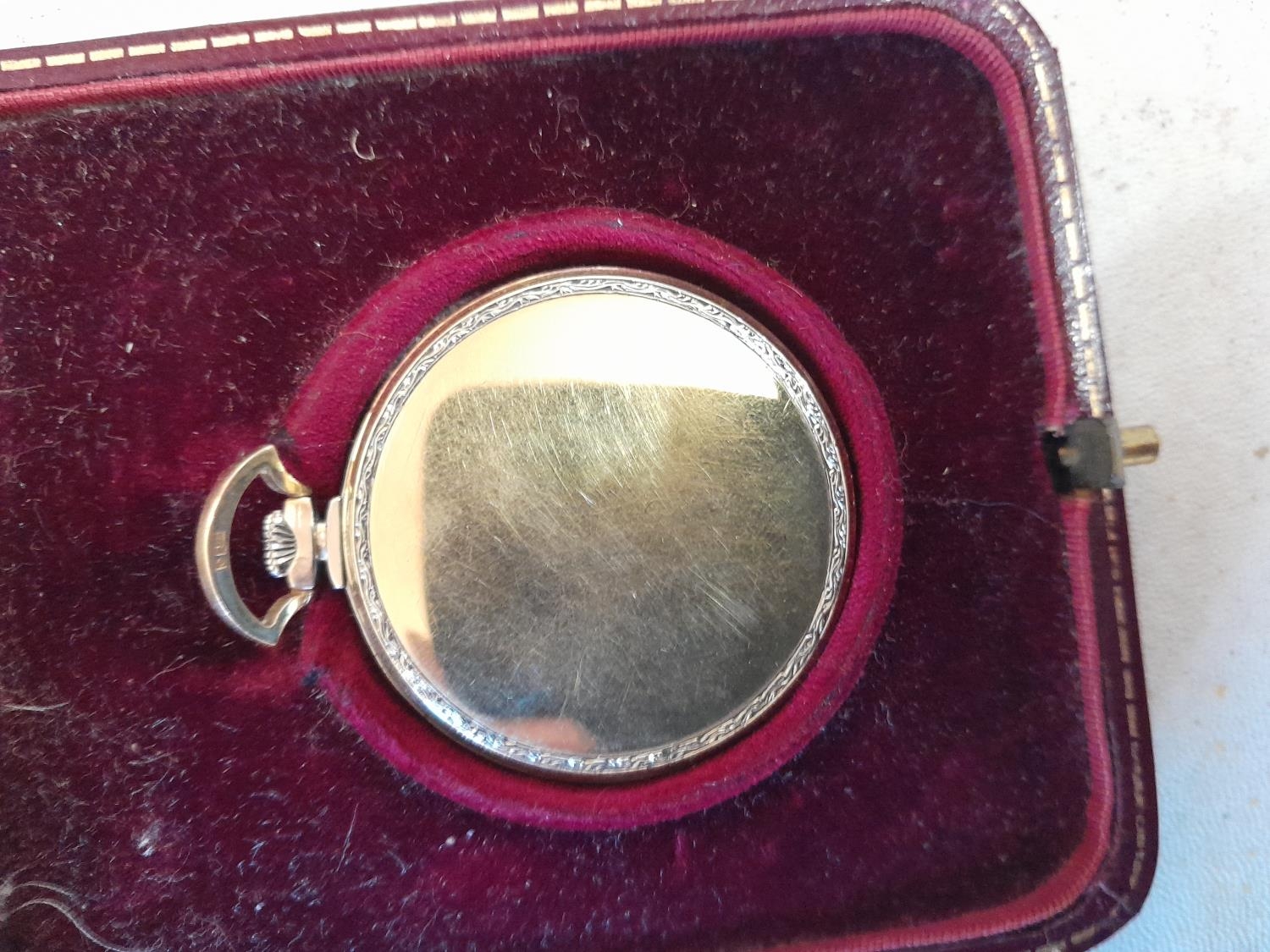 Vintage pocket watch in 18 ct gold case with light niello work down case sides in box of issue