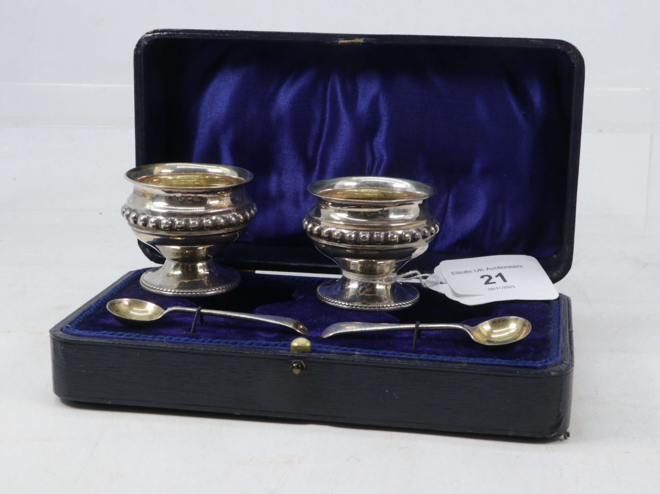A cased set of silver hallmarked salts and spoons (approx. 57g)