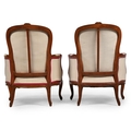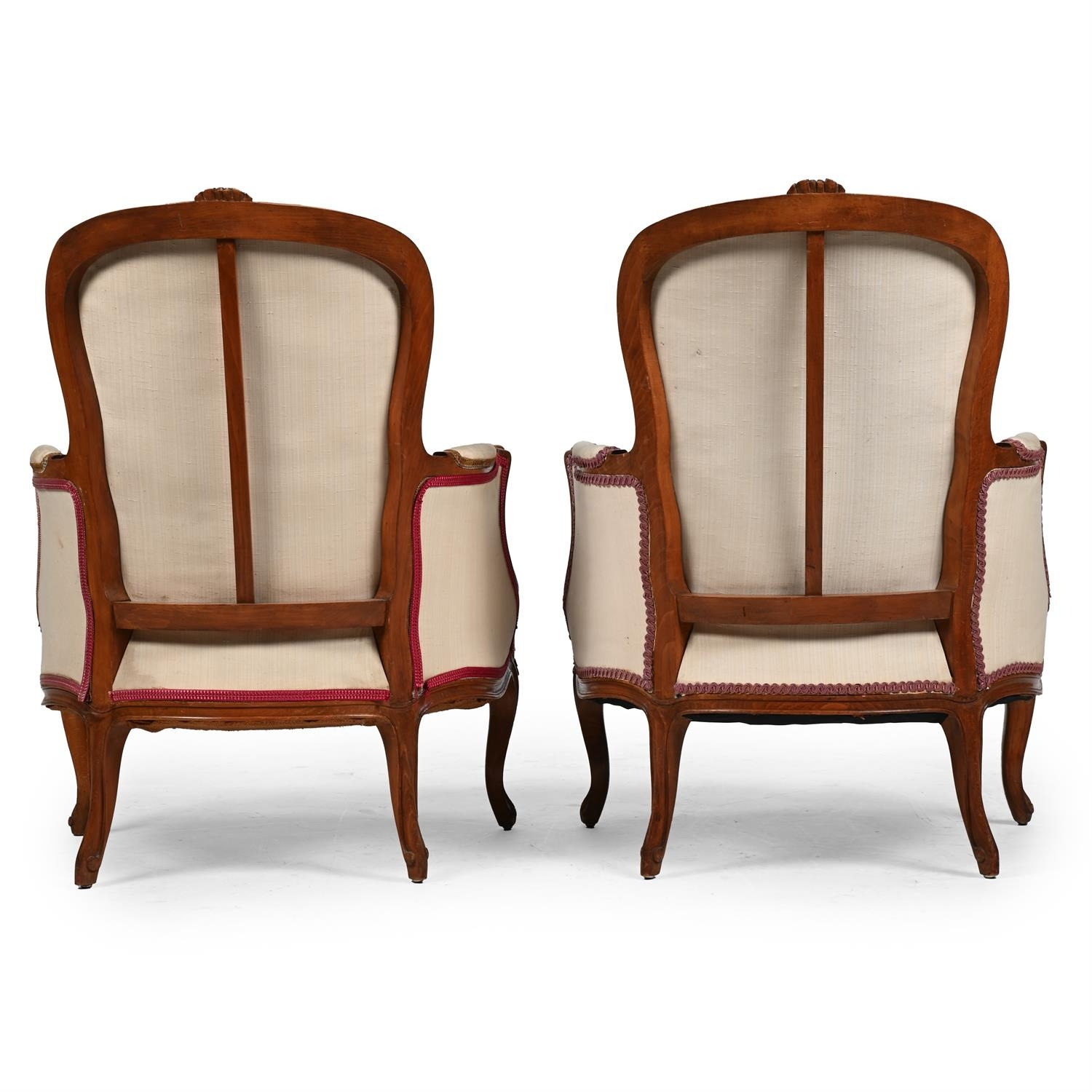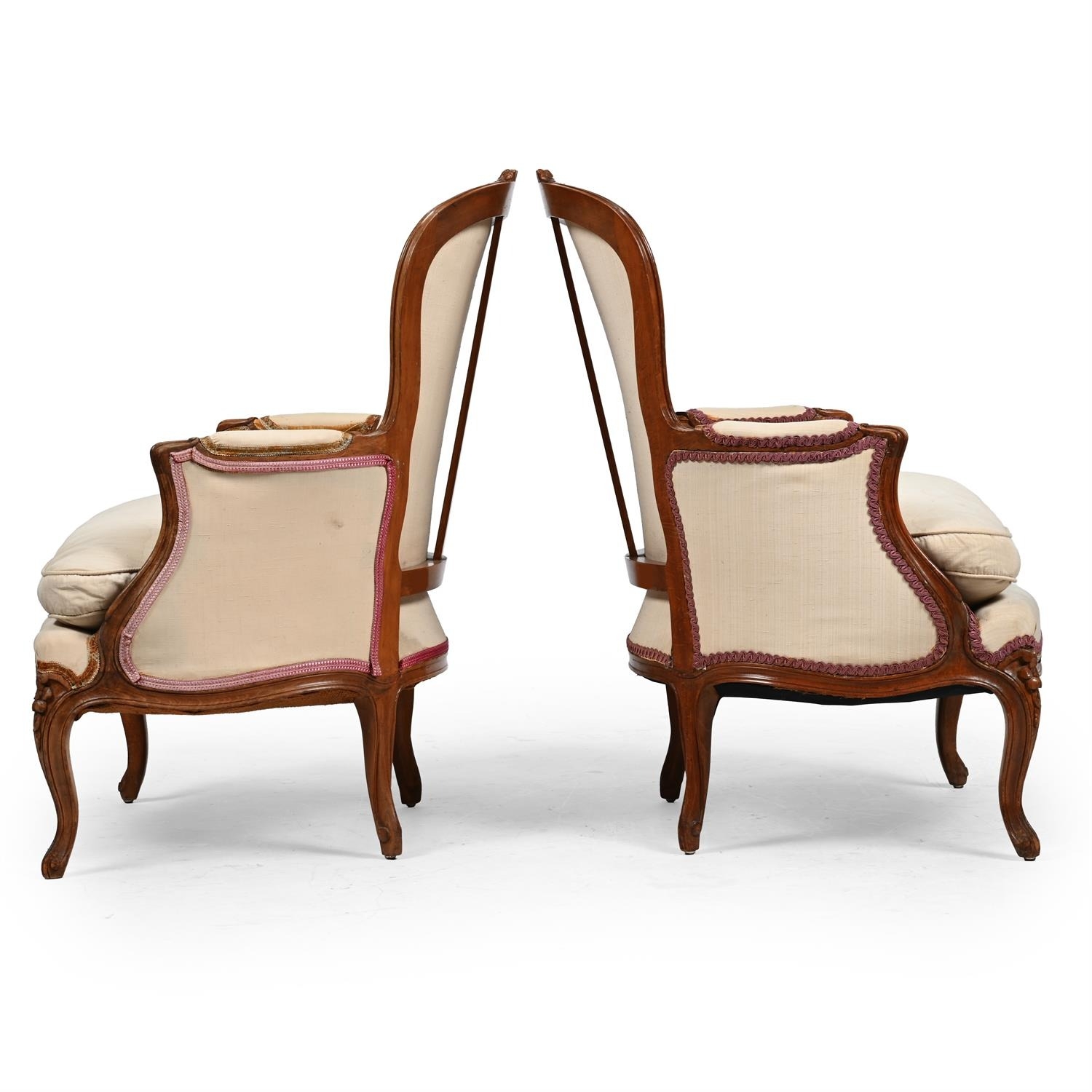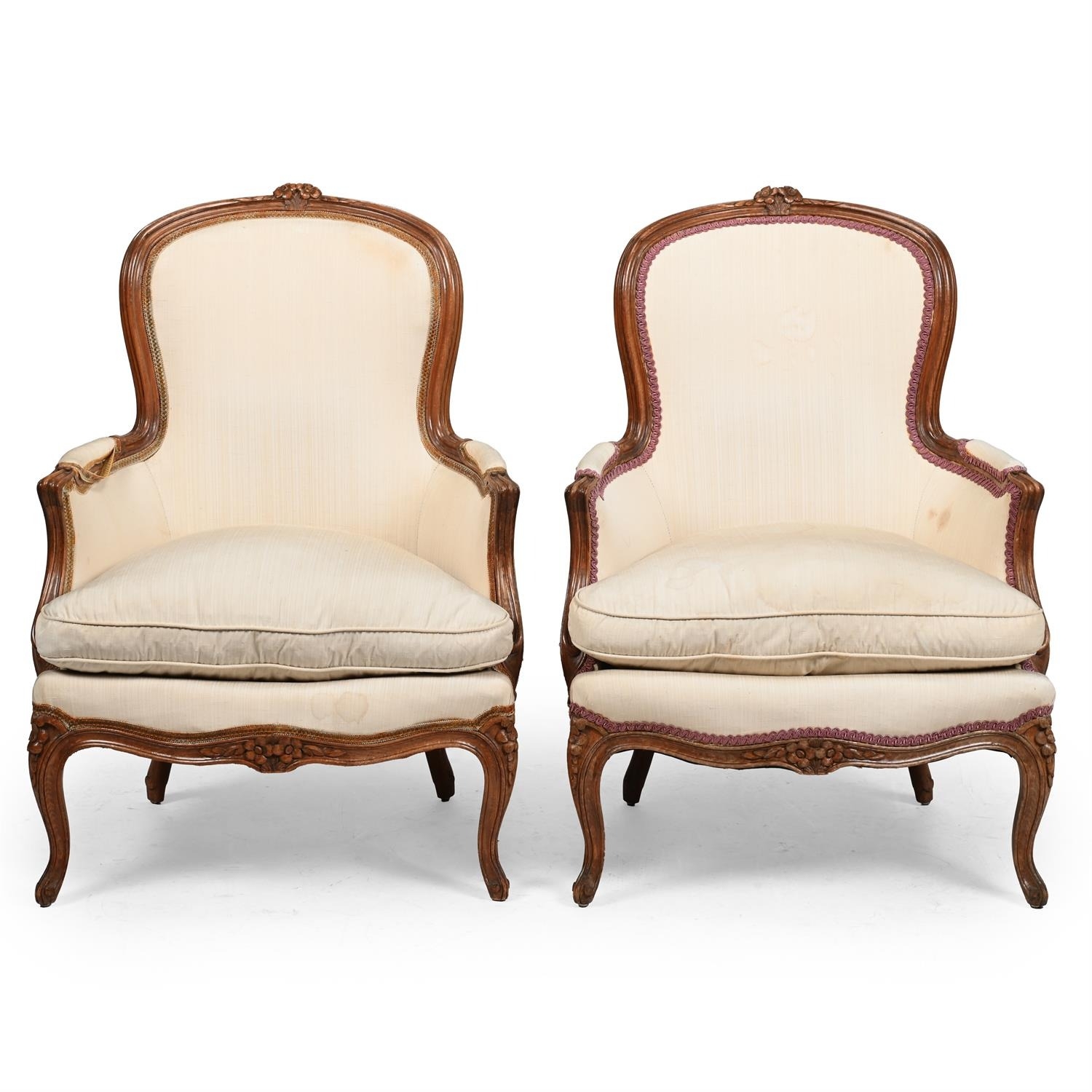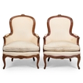 A PAIR OF FRENCH CARVED BEECH FAUTEUILS OR BERGERESIN LOUIS XV STYLE, LATE 19TH OR EARLY 20TH CENTURY approximately 97cm high, 70cm wide, 47cm deep (seat height 45cm high)